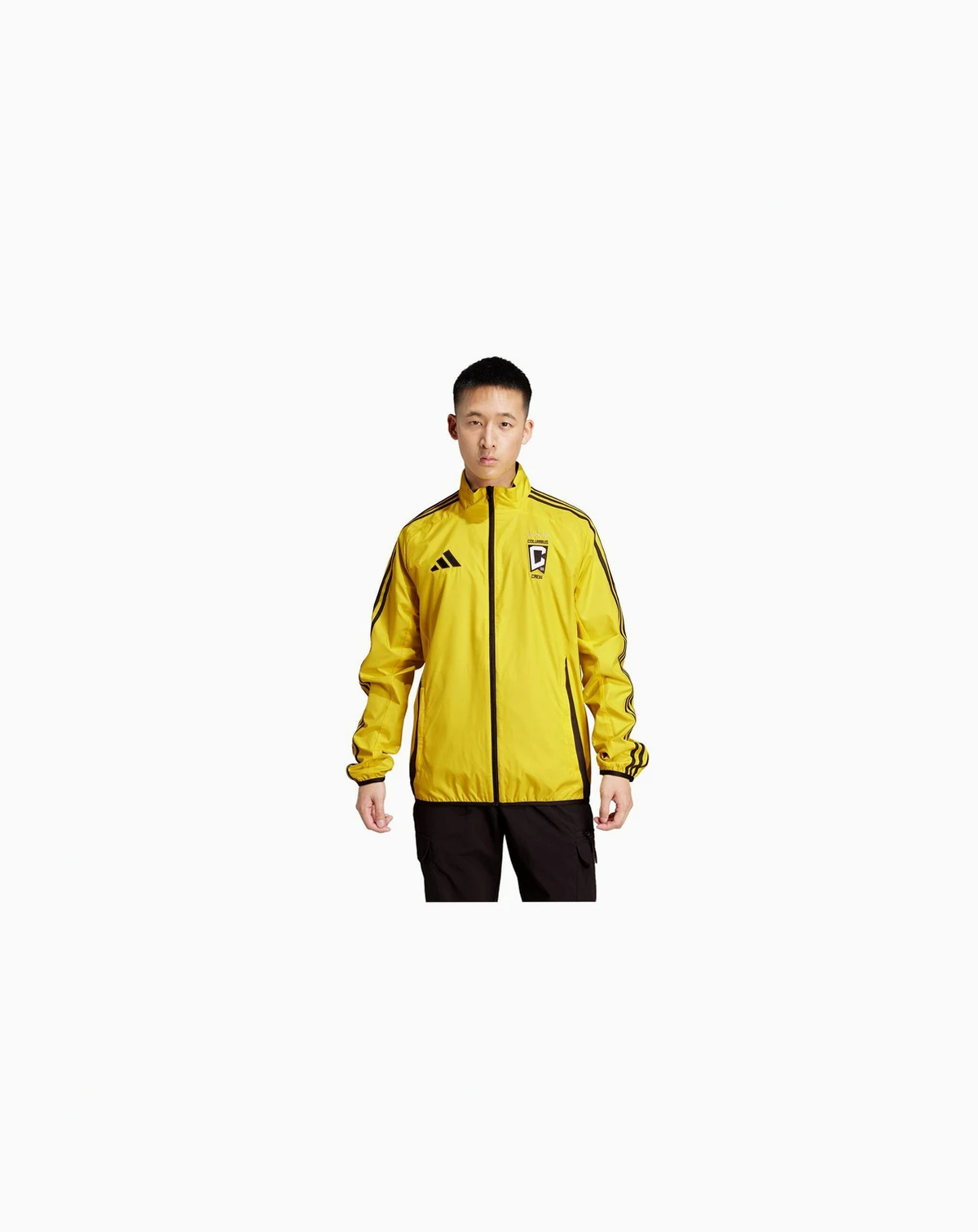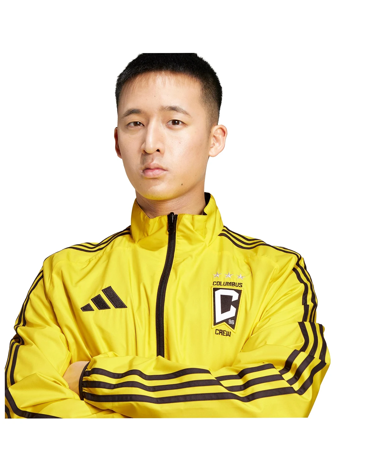 Embrace your Columbus Crew pride with this 2025 Anthem Reversible Full-Zip Jacket from Adidas. This reversible jacket offers two distinct looks in one, featuring screen print graphics on one side and a sublimated design on the other. Made from materials, it boasts a comfortable midweight construction ideal for moderate temperatures, while elastic cuffs and a bottom hem offer a secure and personalized fit.