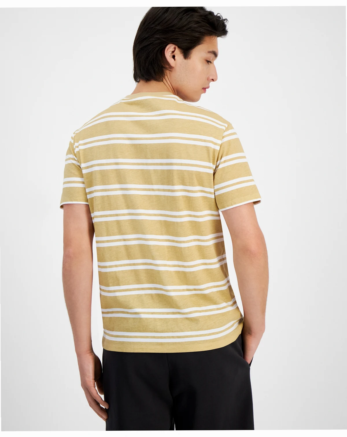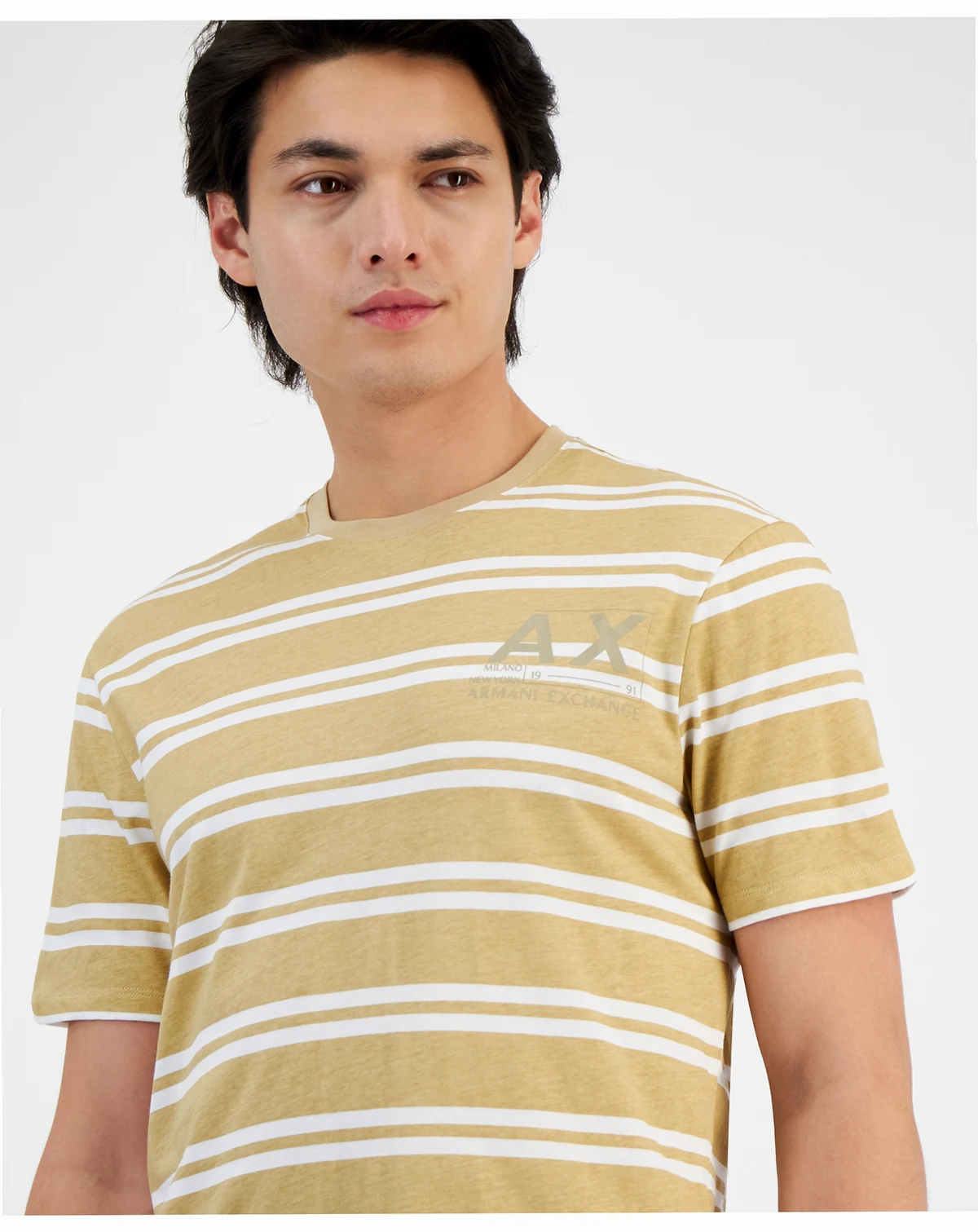 Take to the streets with a crisp, classic look when you leave the house in this striped all-cotton logo T-shirt from Armani Exchange.