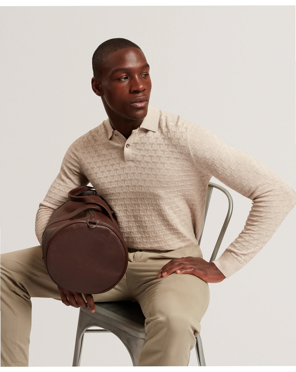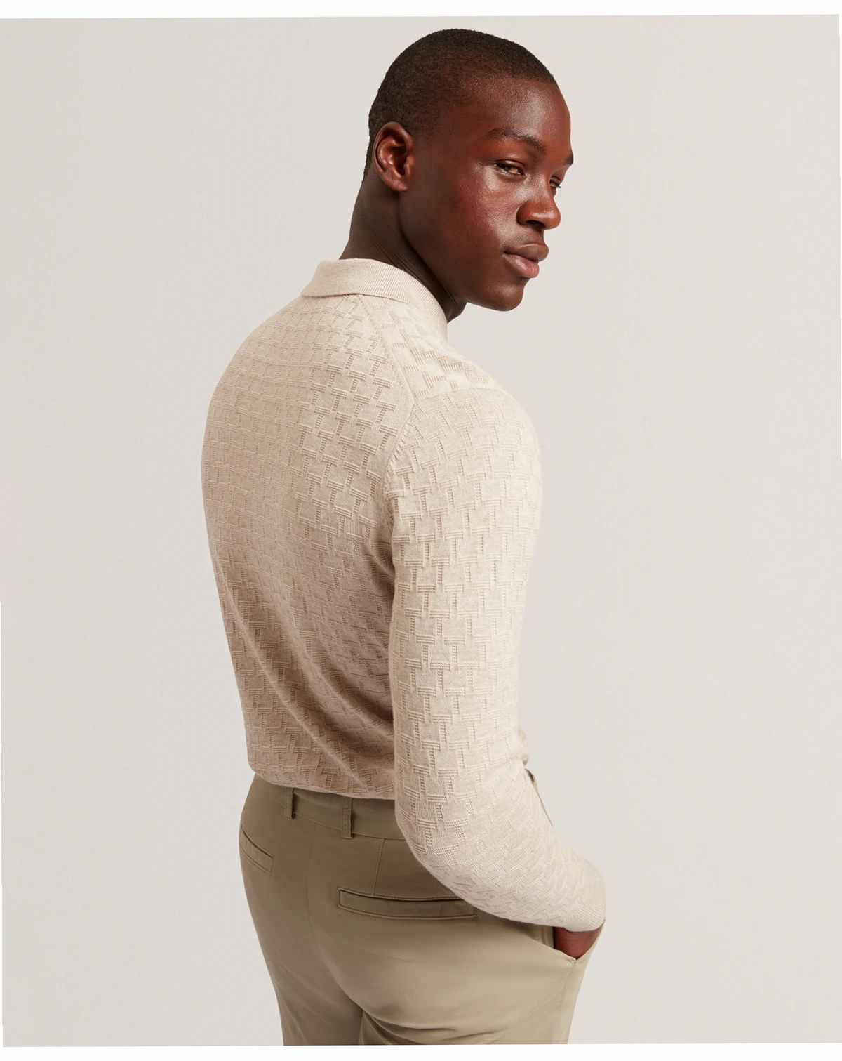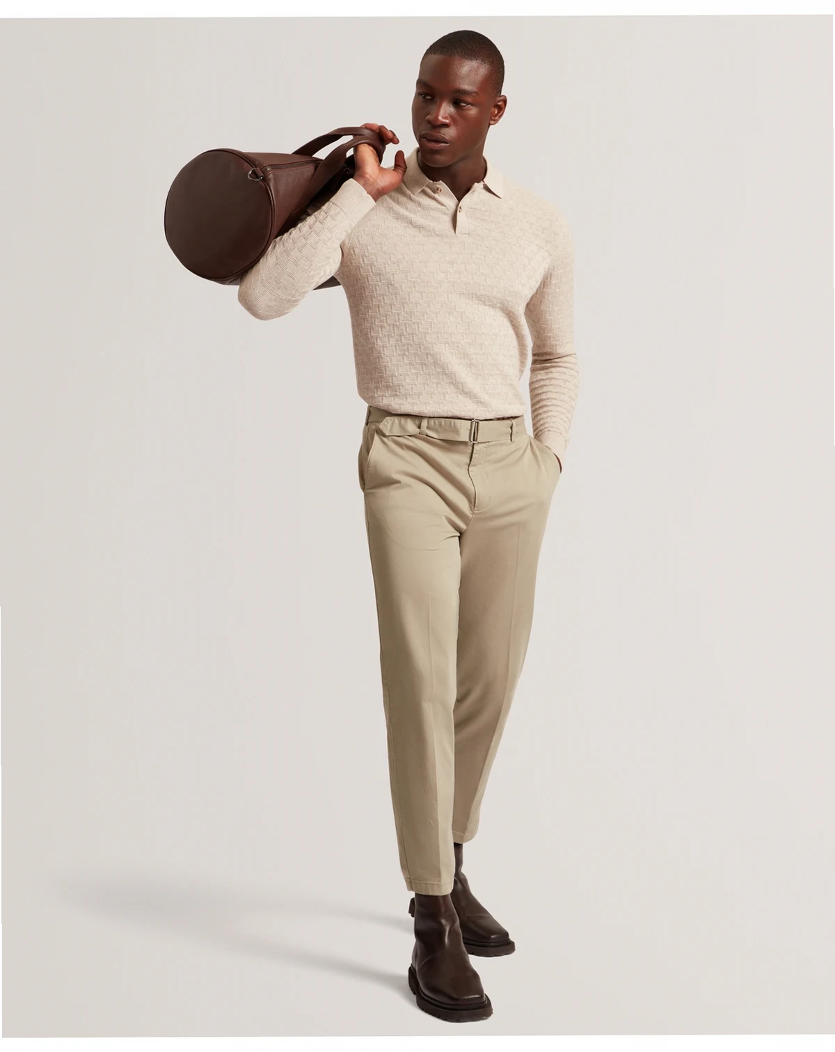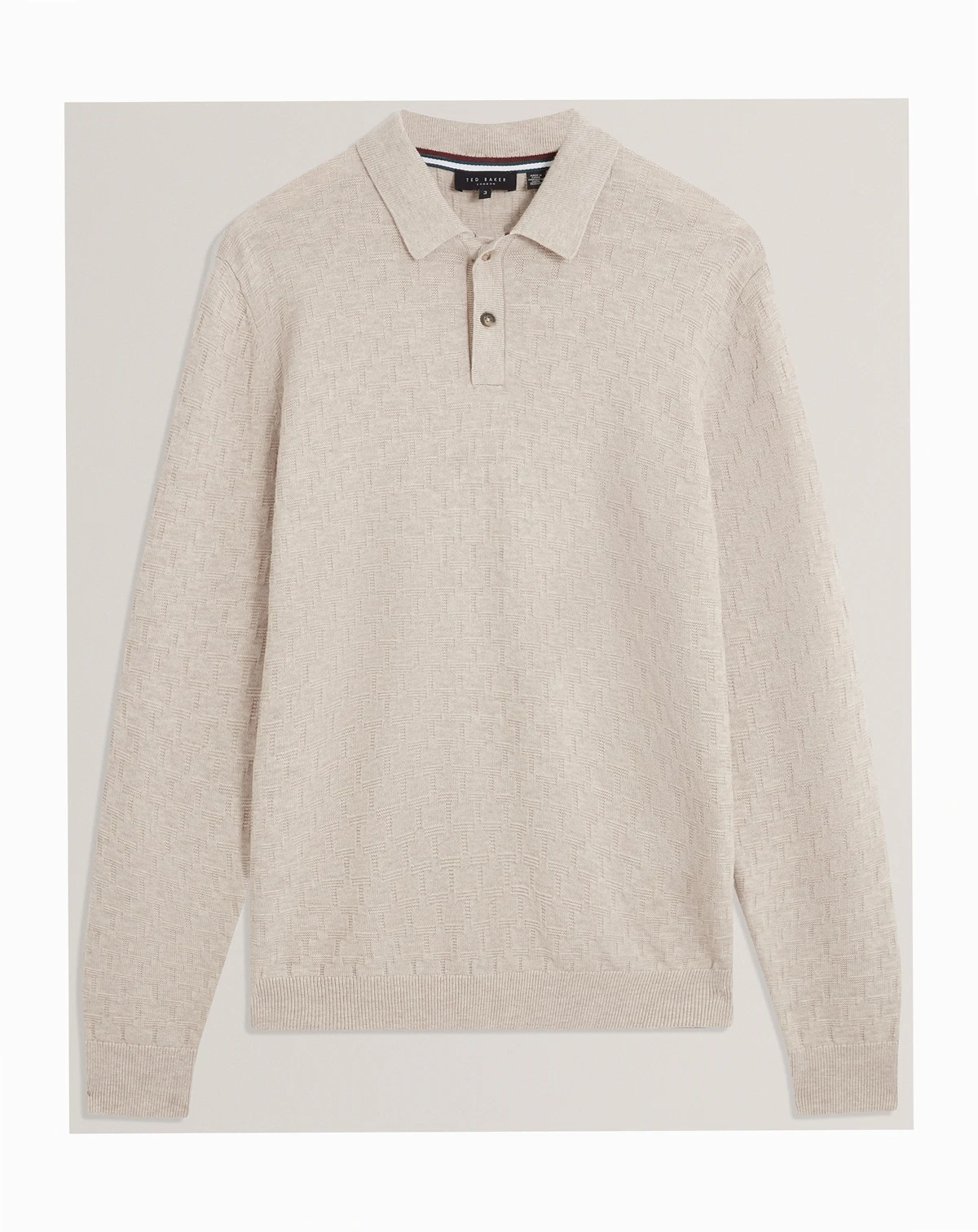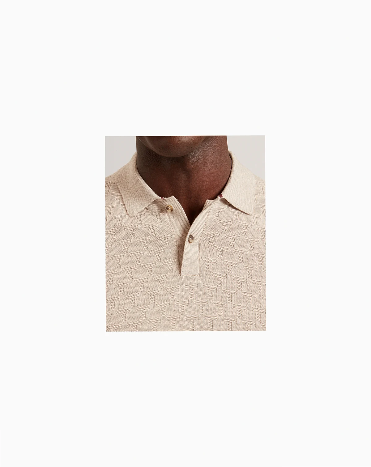 Elevate your casual wardrobe with this Ted Baker Gaten polo shirt crafted from a blend knit. The stylish staple features a subtle branded T texture, classic collar, buttoned neckline, and ribbed trims for a refined, comfortable fit.