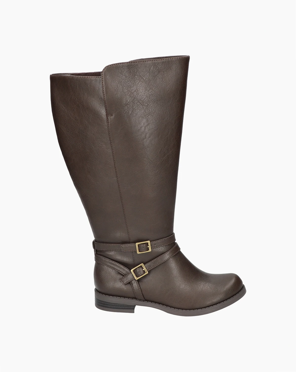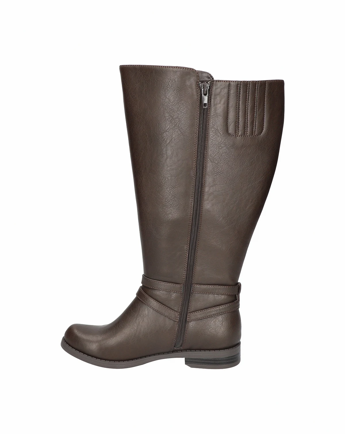 Dress it up or keep it casual with the Bay Plus Plus wide athletic shafted boot from Easy Street. The multiple buckled straps give this boot an accent of fashion. It features a low block heel, inside zipper, and stretch gore, giving you room for an athletic extra wide calf.