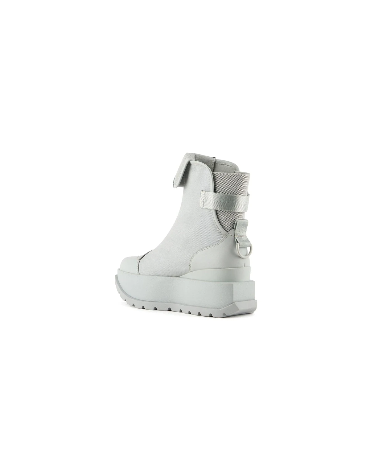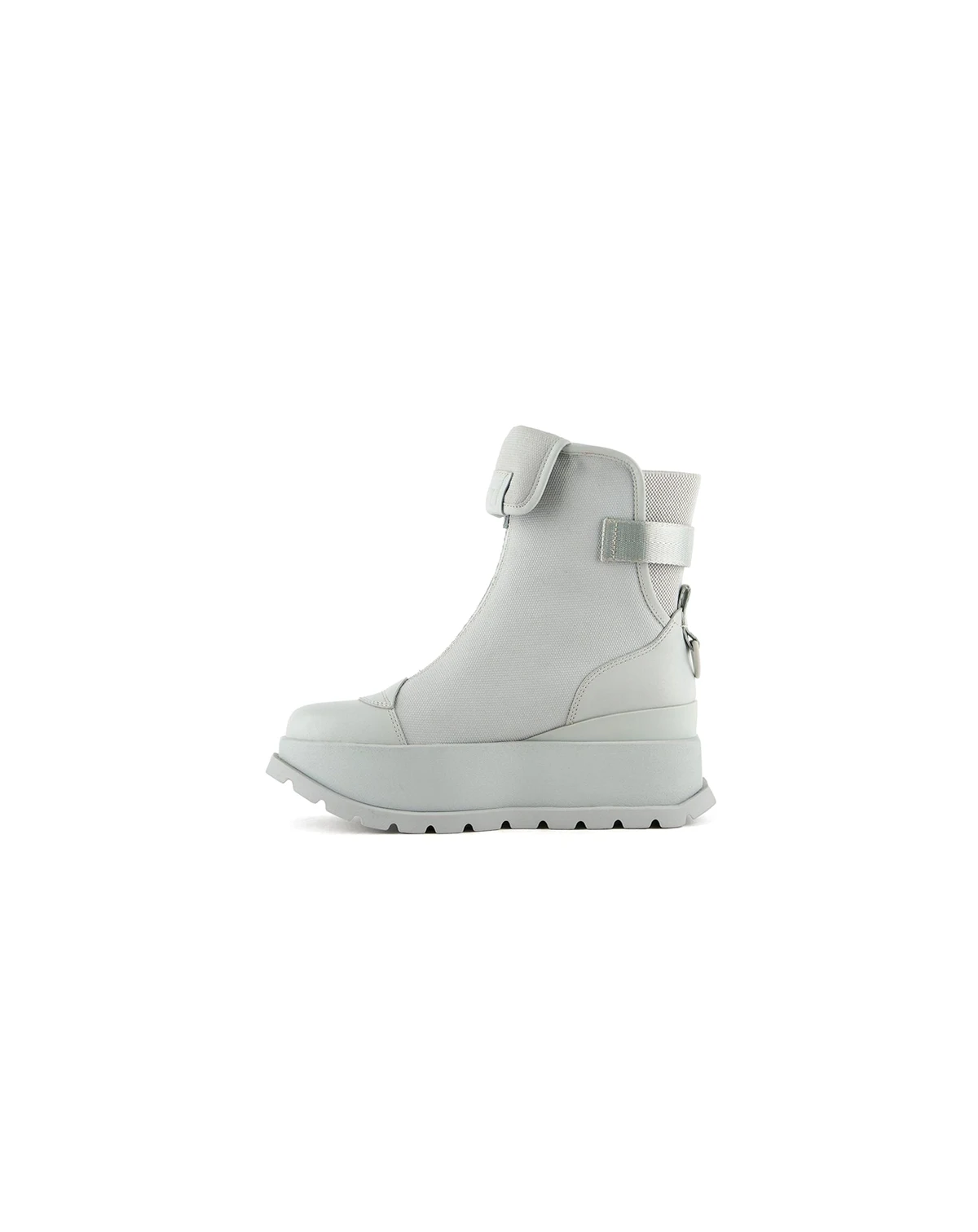 The Roko Ker is a wedge platform bootie featuring a canvas upper, an oversized tongue, leather accents, and United Nude's defining block logo. An elasticized heel offers slip-on wearability while the adjustable ankle strap provide a secure and adjustable fit. The Roko's chunky, geometric platform outsole offers significant height and stability.