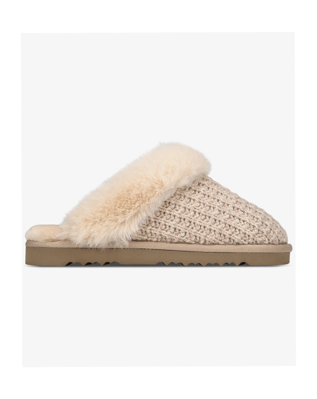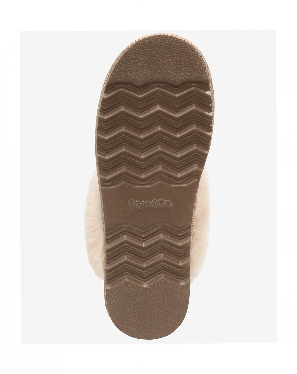 A waffle sweater knit meets plush faux fur making the easy slip-on design of the Rayaa slippers from Style & Co a cozy go-to.