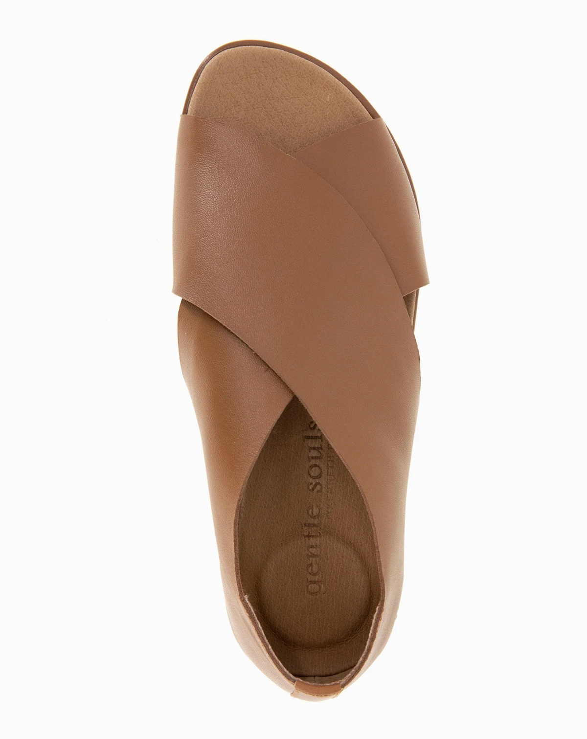 Slip on flat x band sandal with stretch . Multi-layered comfort system utilizing poron performance cushioning.