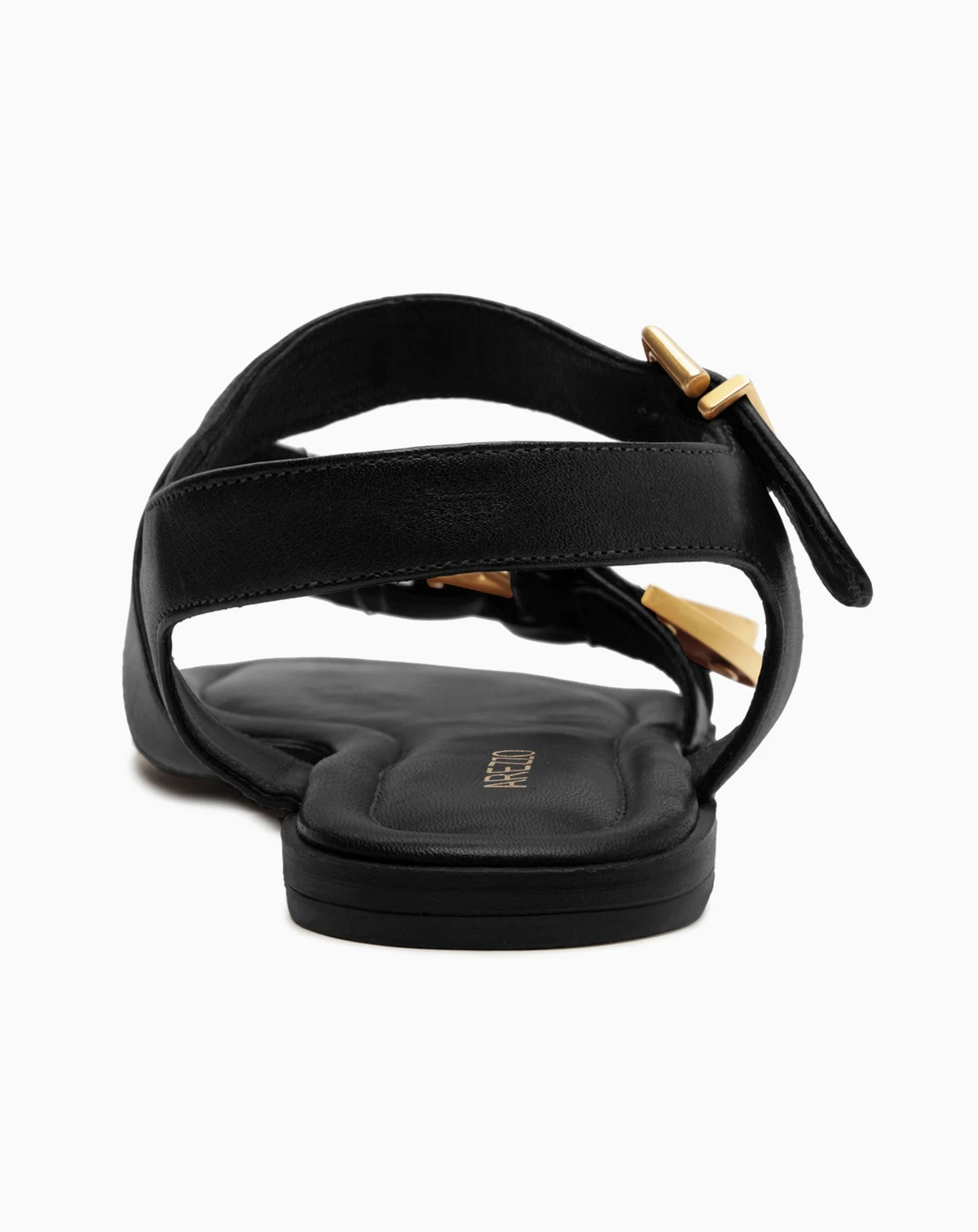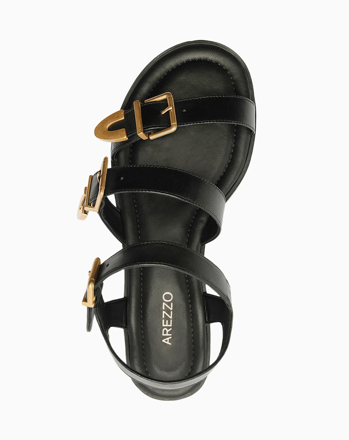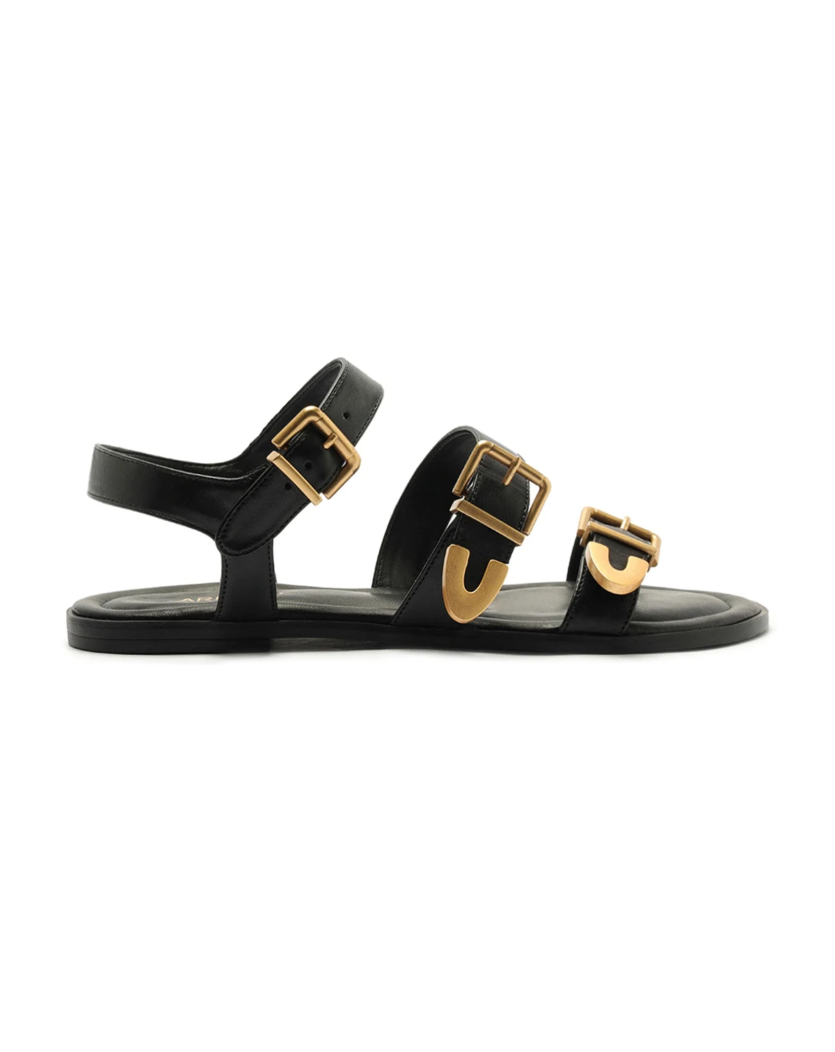 Whether you're running errands or exploring the city, the Paige Flat Sandal's comfortable flat sole and wide straps will keep you going in style. Plus, the gold buckles add a hint of glam, making every step feel stylish.