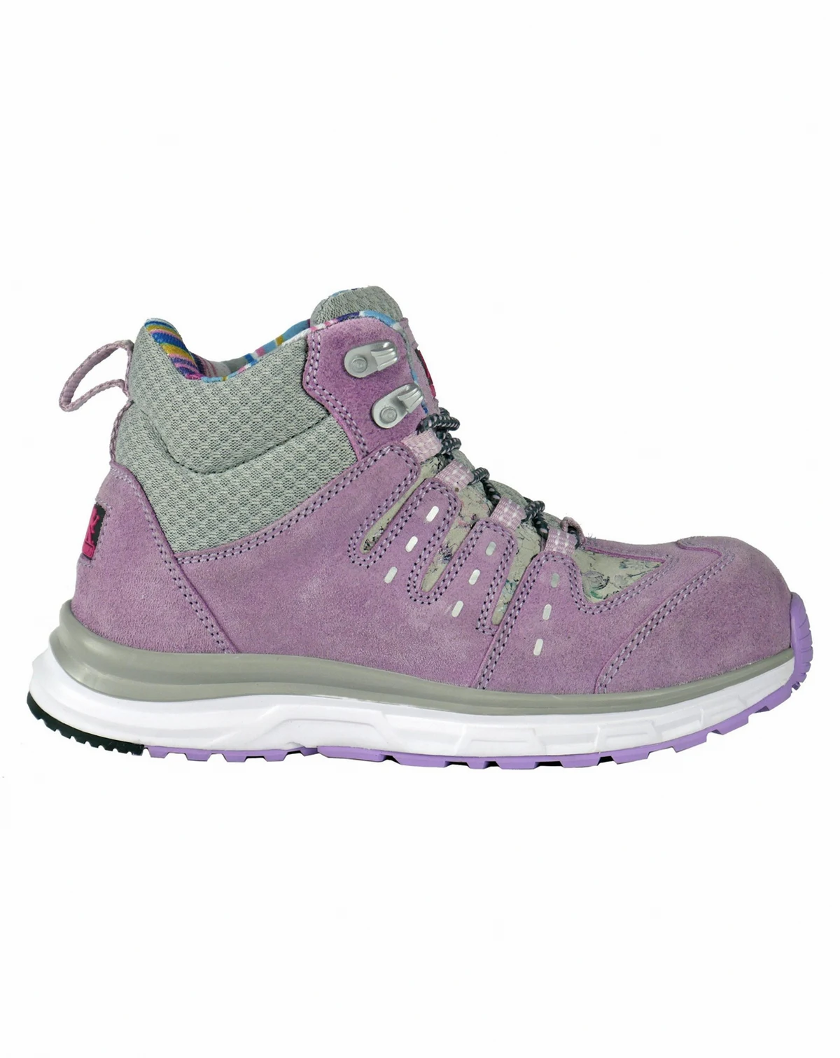 The Moxie Trisha Women s Composite Toe Work Shoe in Purple delivers certified protection, all-day comfort, and standout style built specifically for women on the job. Designed with a lightweight composite safety toe, it provides impact and compression protection without added bulk. The durable upper combines suede, printed leather, and fabric for breathable performance with a modern look. A padded collar helps reduce ankle pressure, while the fast rebound cushion insole works with an injected EVA dual-density midsole to deliver responsive cushioning, stability, and long-lasting support. The slip-resistant rubber outsole meets ASTM F3445-21 standards to provide confident traction on a variety of work surfaces. ASTM F2413-18 F/I/C EH certified, the Trisha offers reliable electrical hazard protection, making it ideal for industrial, warehouse, and light construction environments. Available in women s sizes 6–10, with size 11 B(M) also available.