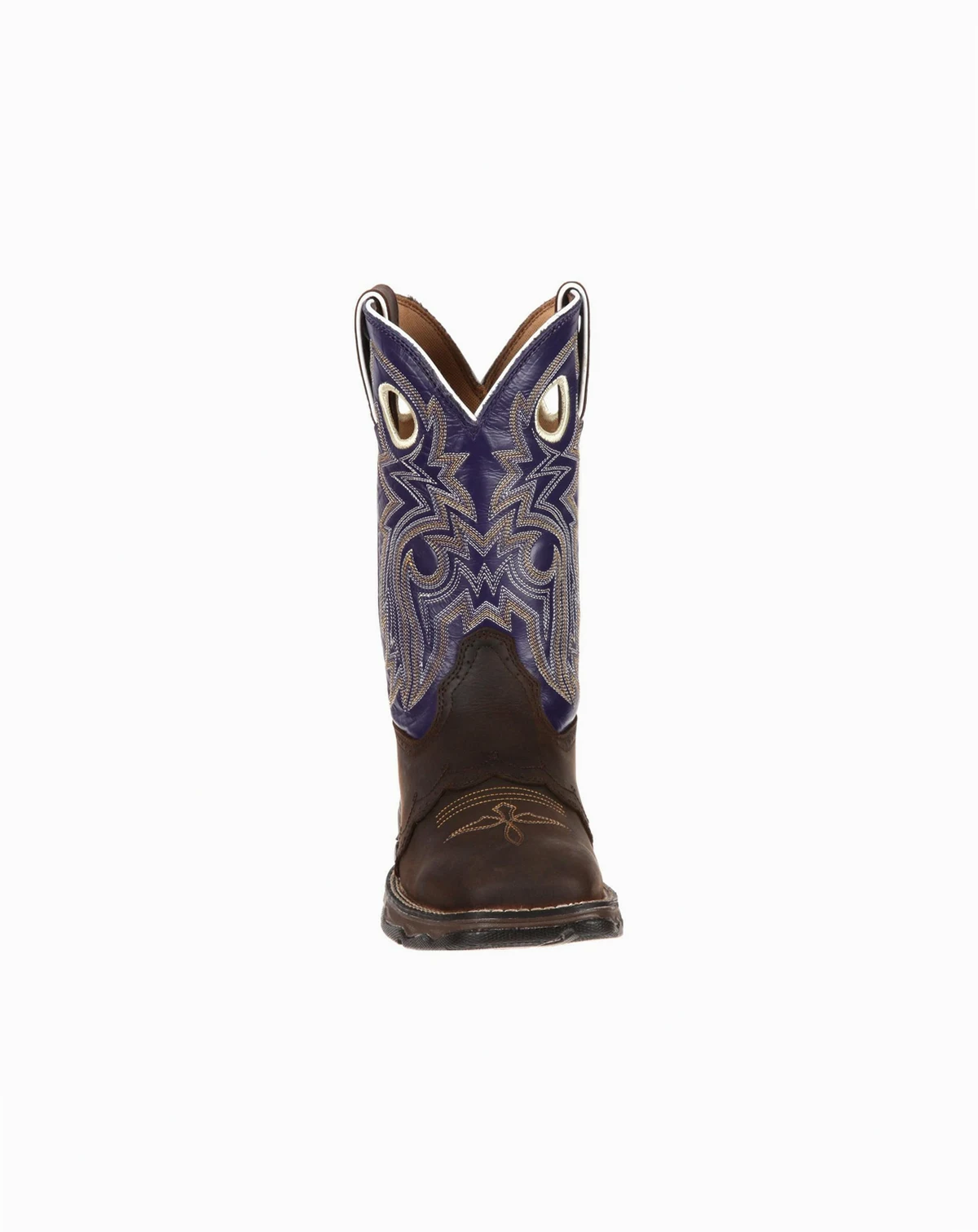 With a bit of feminine flare, this Lady Rebel by Durango Saddle lace western combines functionality and style. The tempered steel shank provides stability for long work days while the ultra-lightweight dual density EVA outsole keeps this boot easy to wear. The contoured, ventilated, removable cushion footbed lets your foot breathe while being supported. The cushion flex insole provides all day comfort and relief. This shoe boasts full-grain leather upper and a double row welt stitch. Lady Rebel stands 10" in height with a rocker heel. The rolled shank and square toe combine classic western style with a bit of modern design. These boots offer a 10" saddle lace. For functionality and classic style, you can't go wrong with the Lady Rebel..