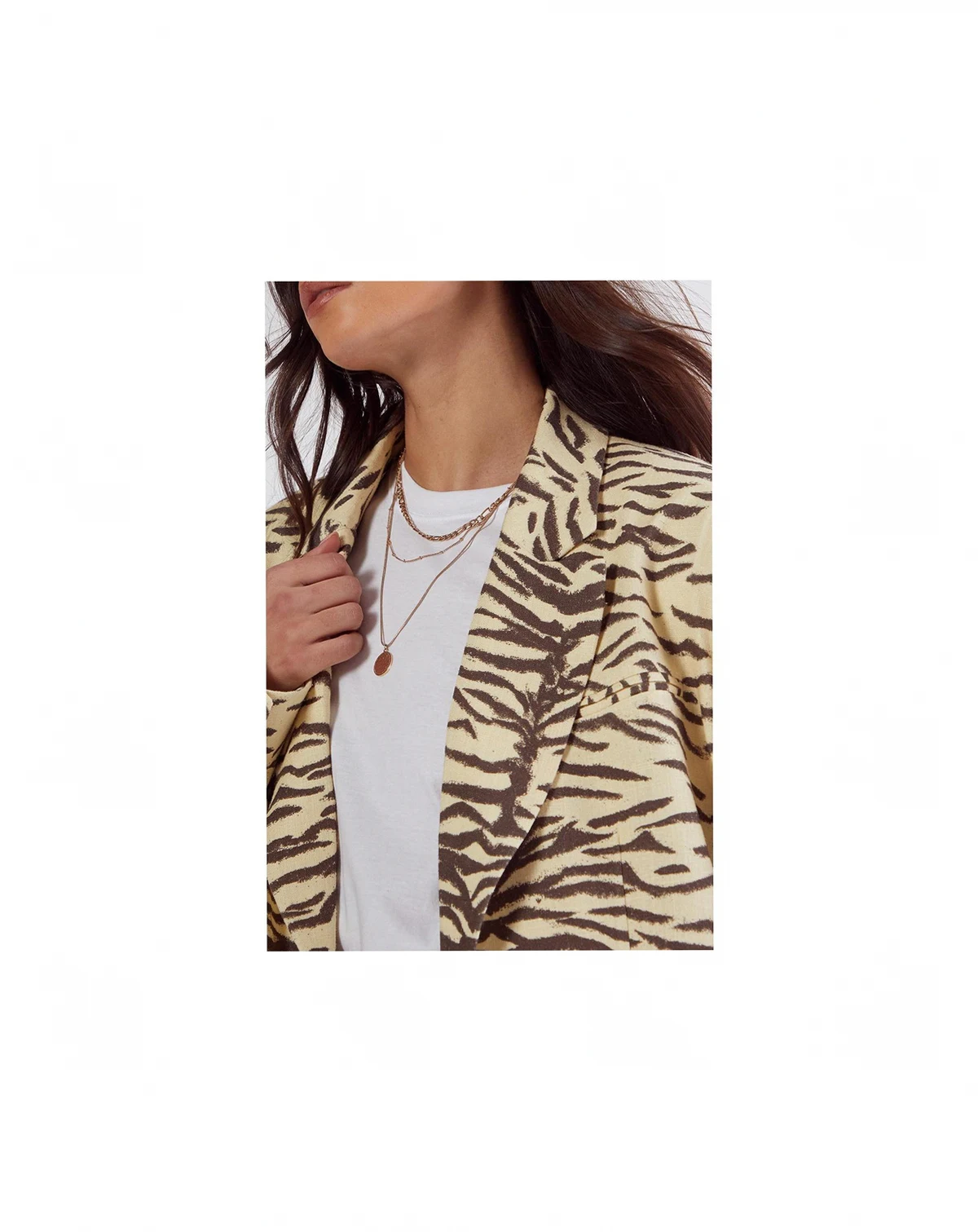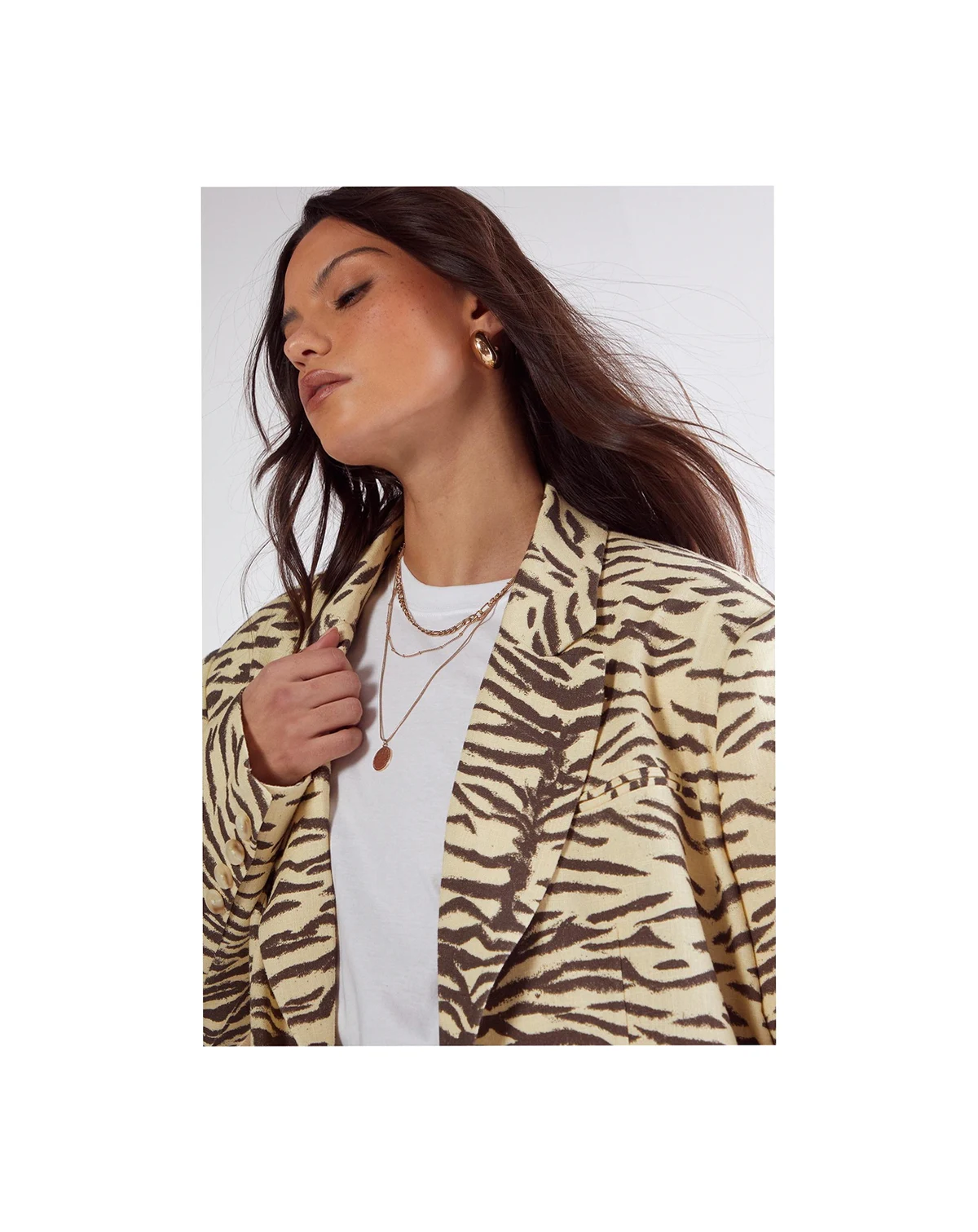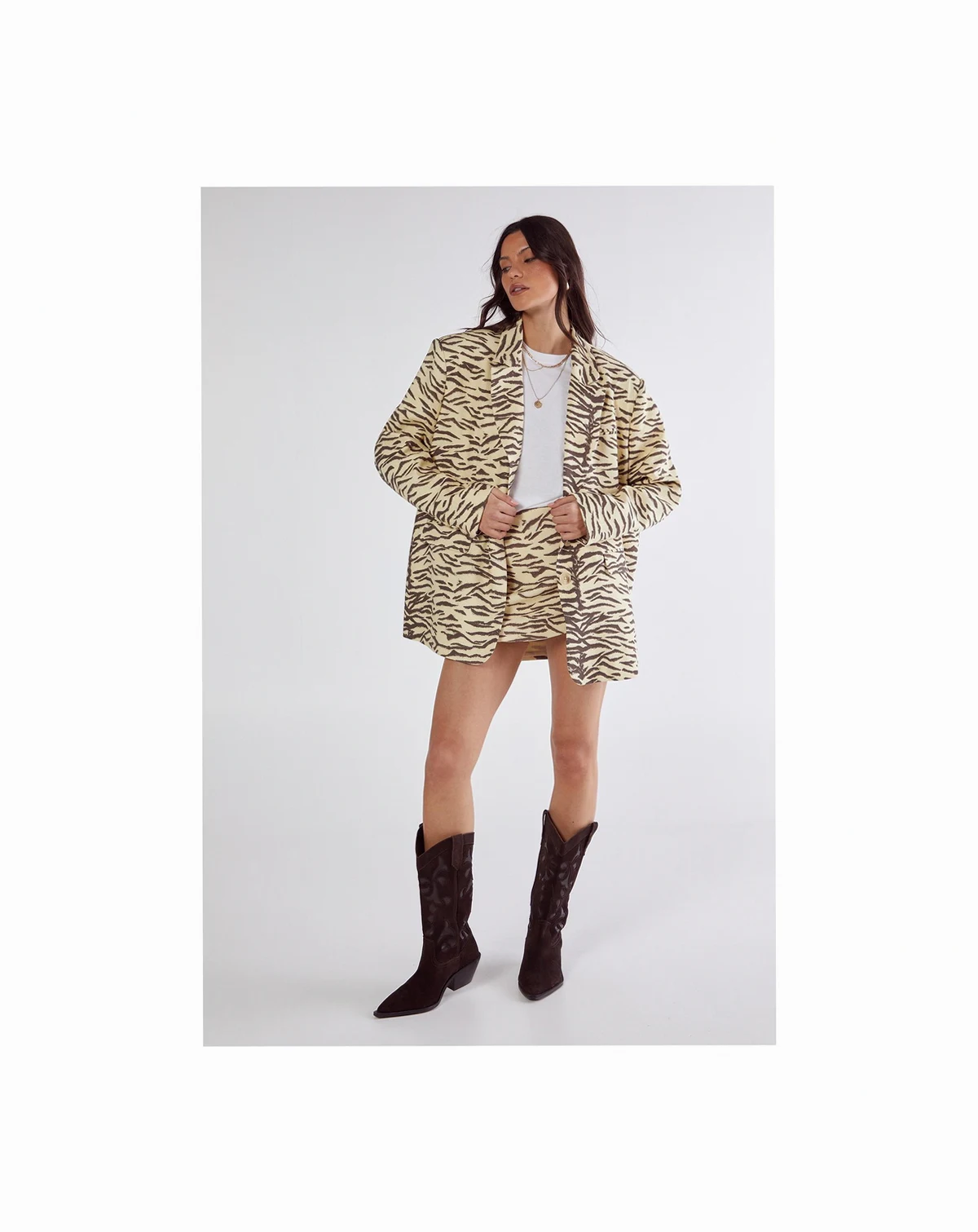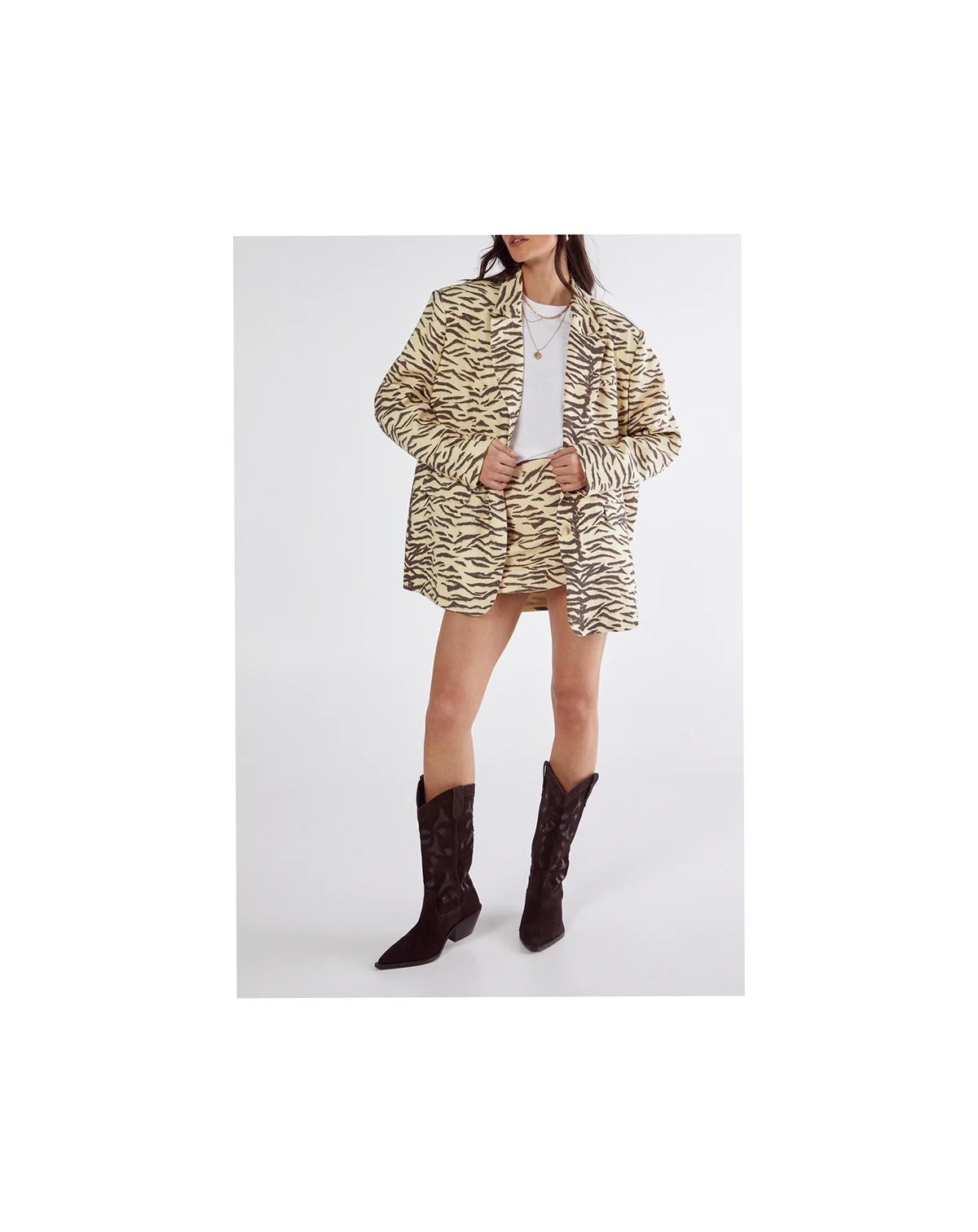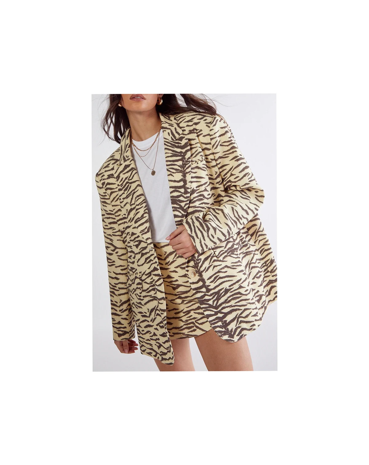 Make a bold impression with this distinctive zebra print oversized blazer from Nasty Gal. The relaxed, roomy fit creates a fashion-forward silhouette whilst maintaining a sophisticated edge perfect for smart occasions. Layer over a simple white tee and finish with western-inspired boots for a contemporary twist on smart casual dressing. This versatile piece transitions effortlessly from office meetings to evening drinks, making it an essential addition to your wardrobe.