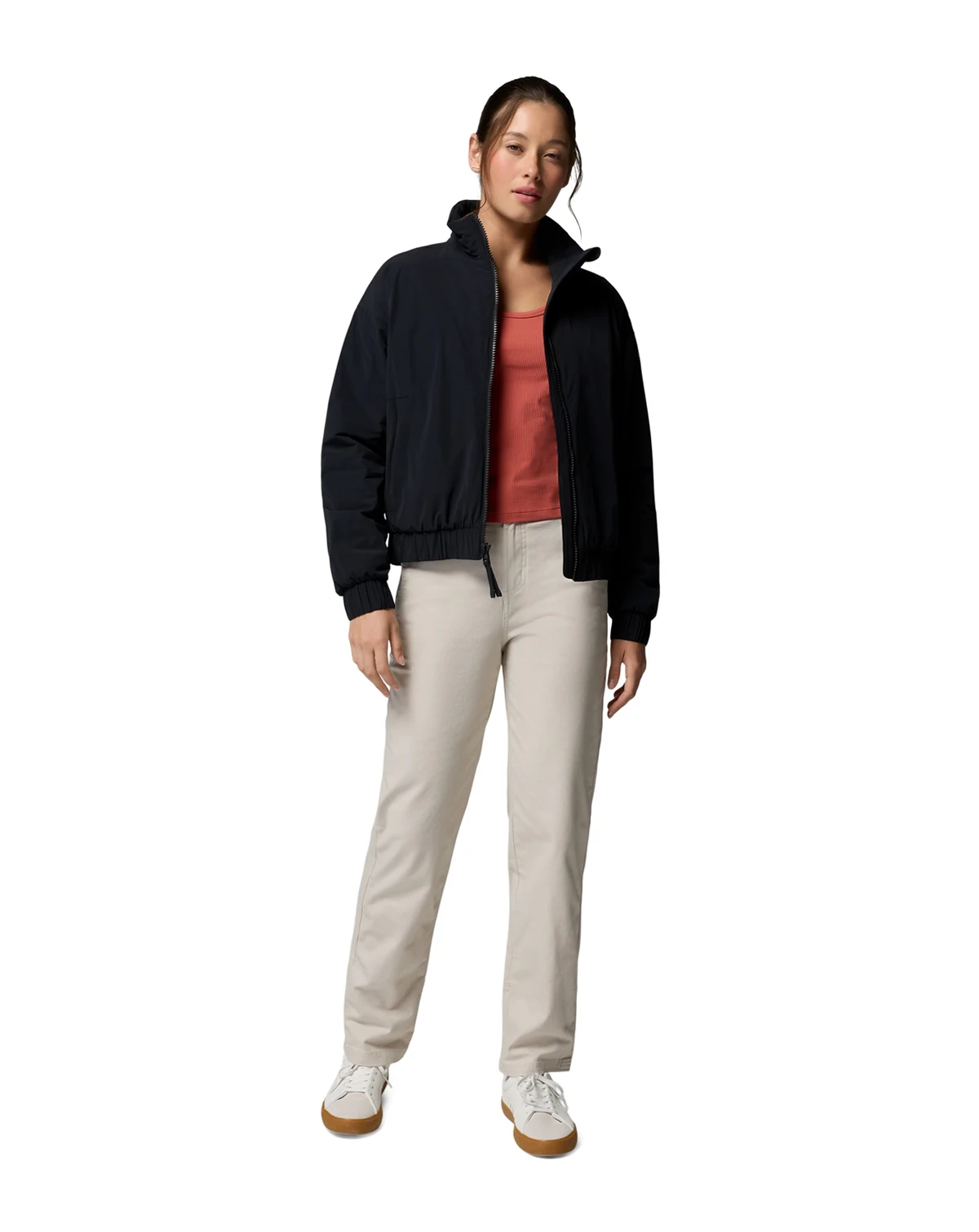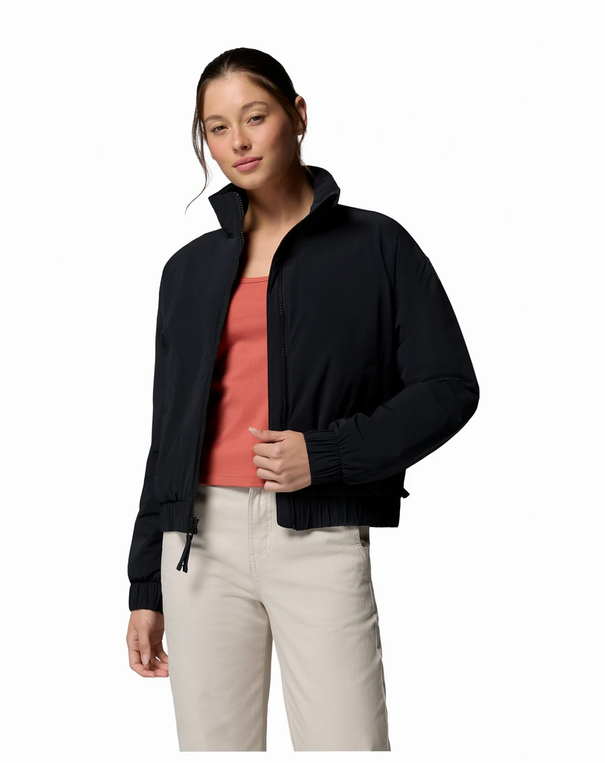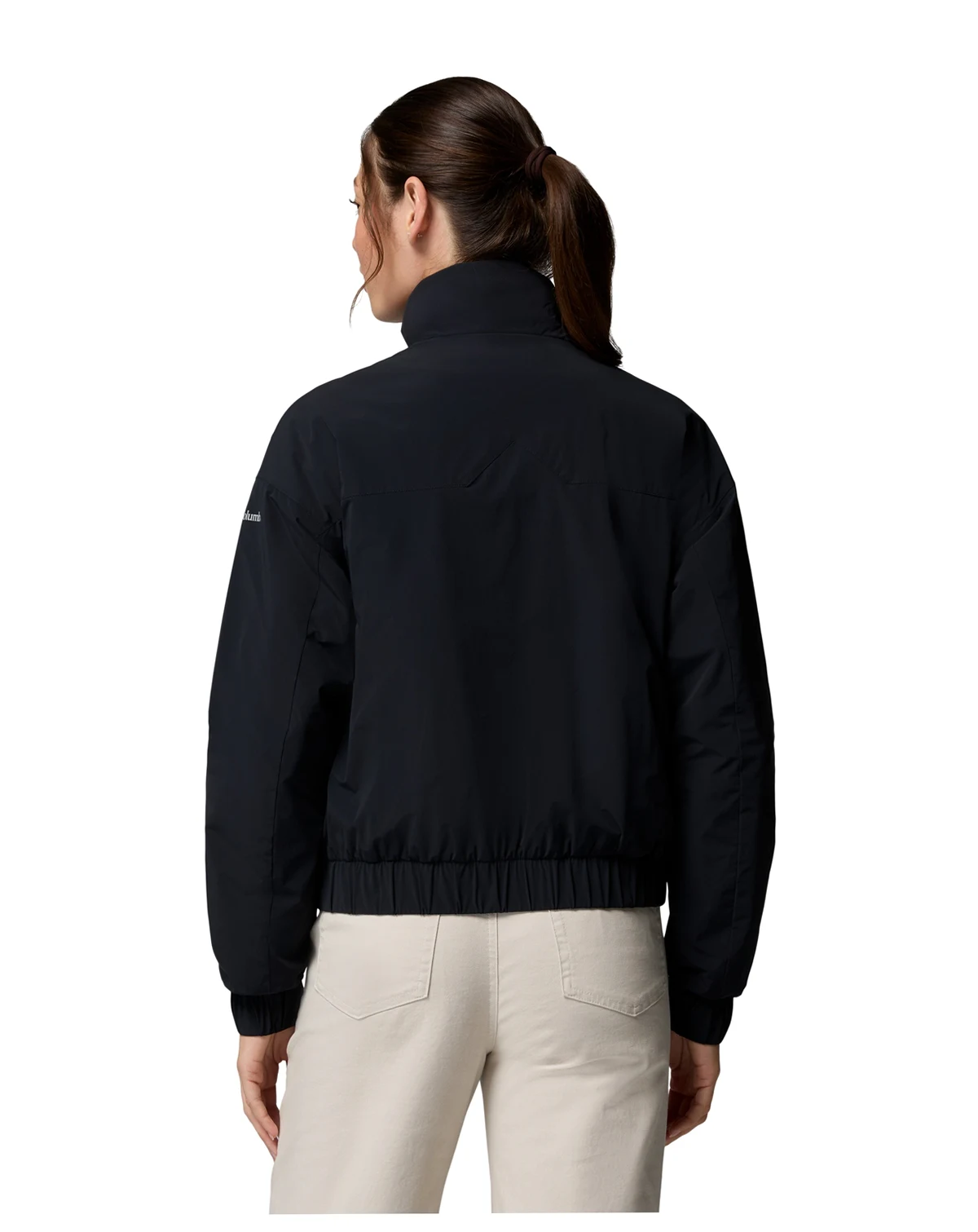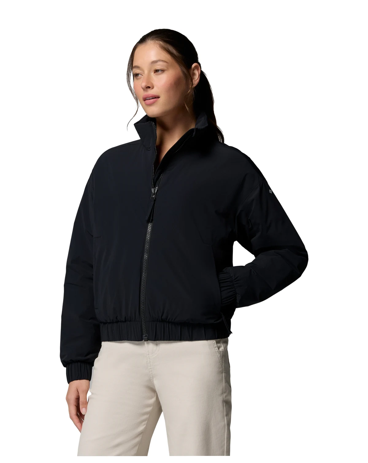 Seasonal adaptability shapes this Columbia bomber jacket, featuring lightweight insulation and stretchy, water-resistant fabric. Zippered hand pockets, elastic cuffs, and an interior security pocket enhance functionality and comfort.
