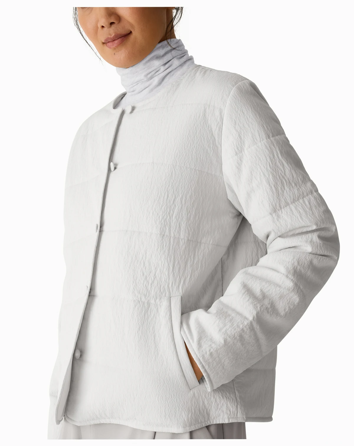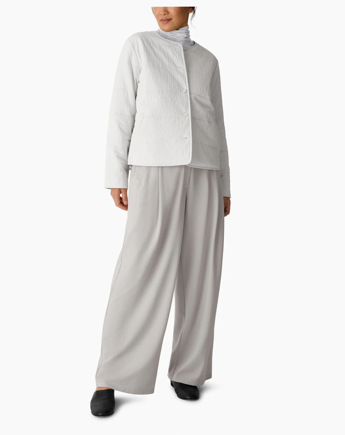 Experience a subtly rippled weave that feels smooth to the touch with this quilted jacket from Eileen Fisher. A round neck and long sleeves provide a simple and elegant silhouette.