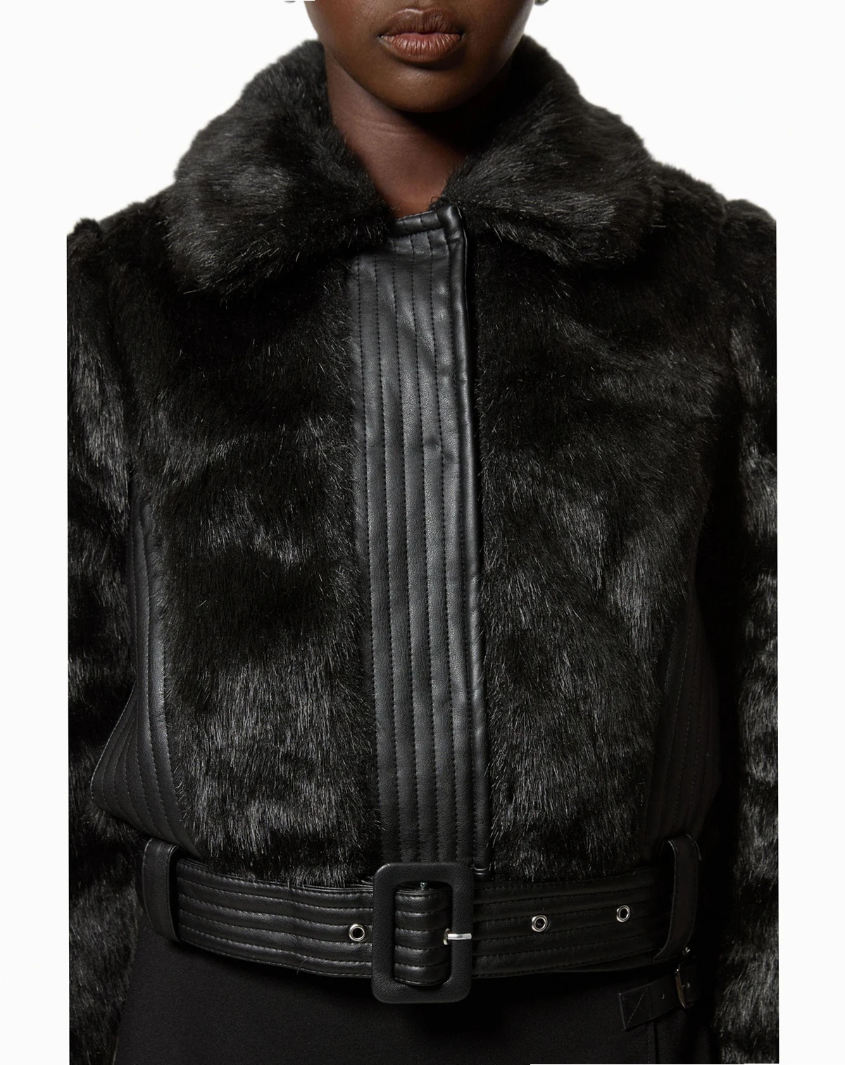 Faux Fur Main: 68% Modacrylic. 32% Polyester. Lining: 100% Polyester. Trim: Polyurethane. Backing: 73% Polyester. 27% Viscose/rayon.