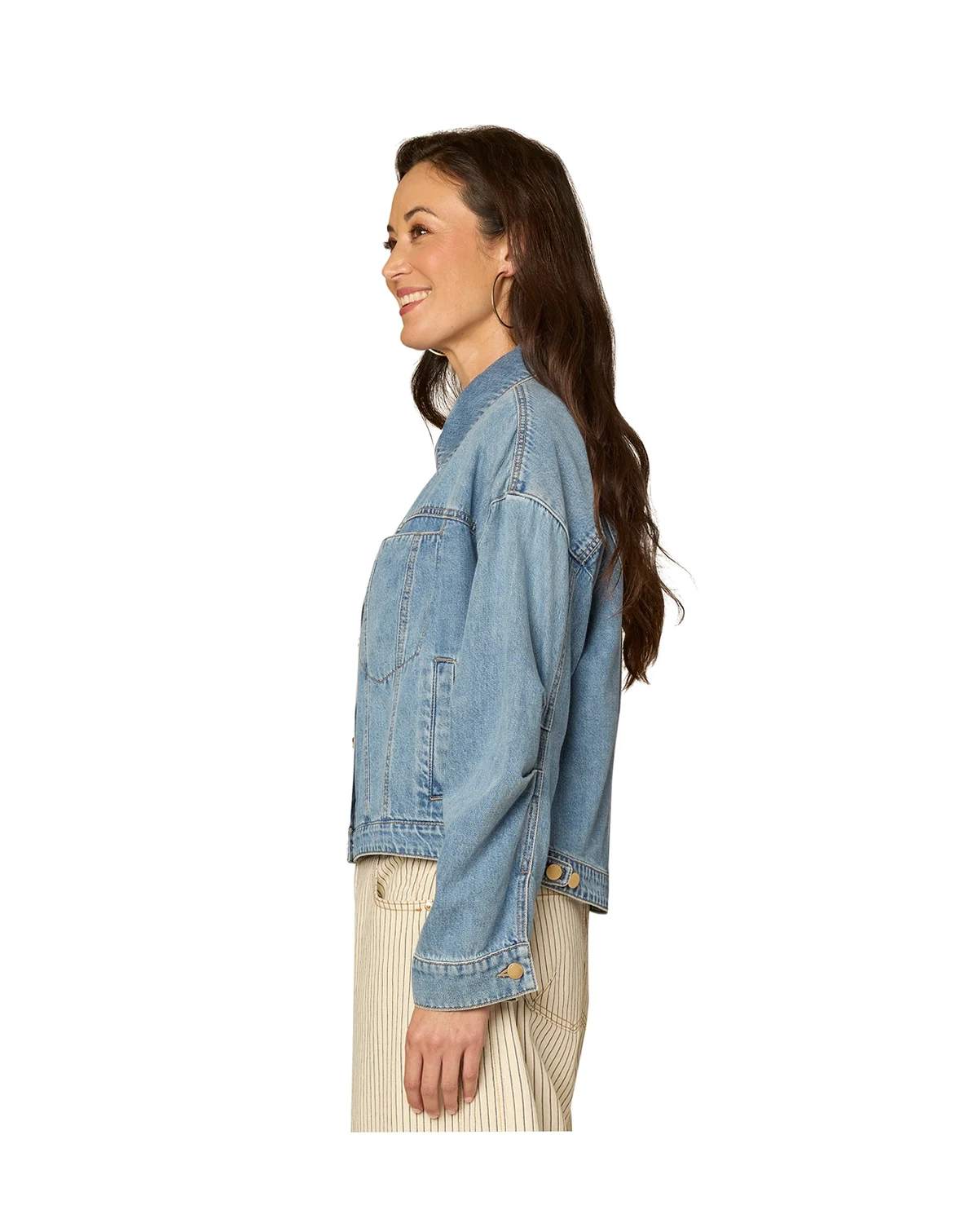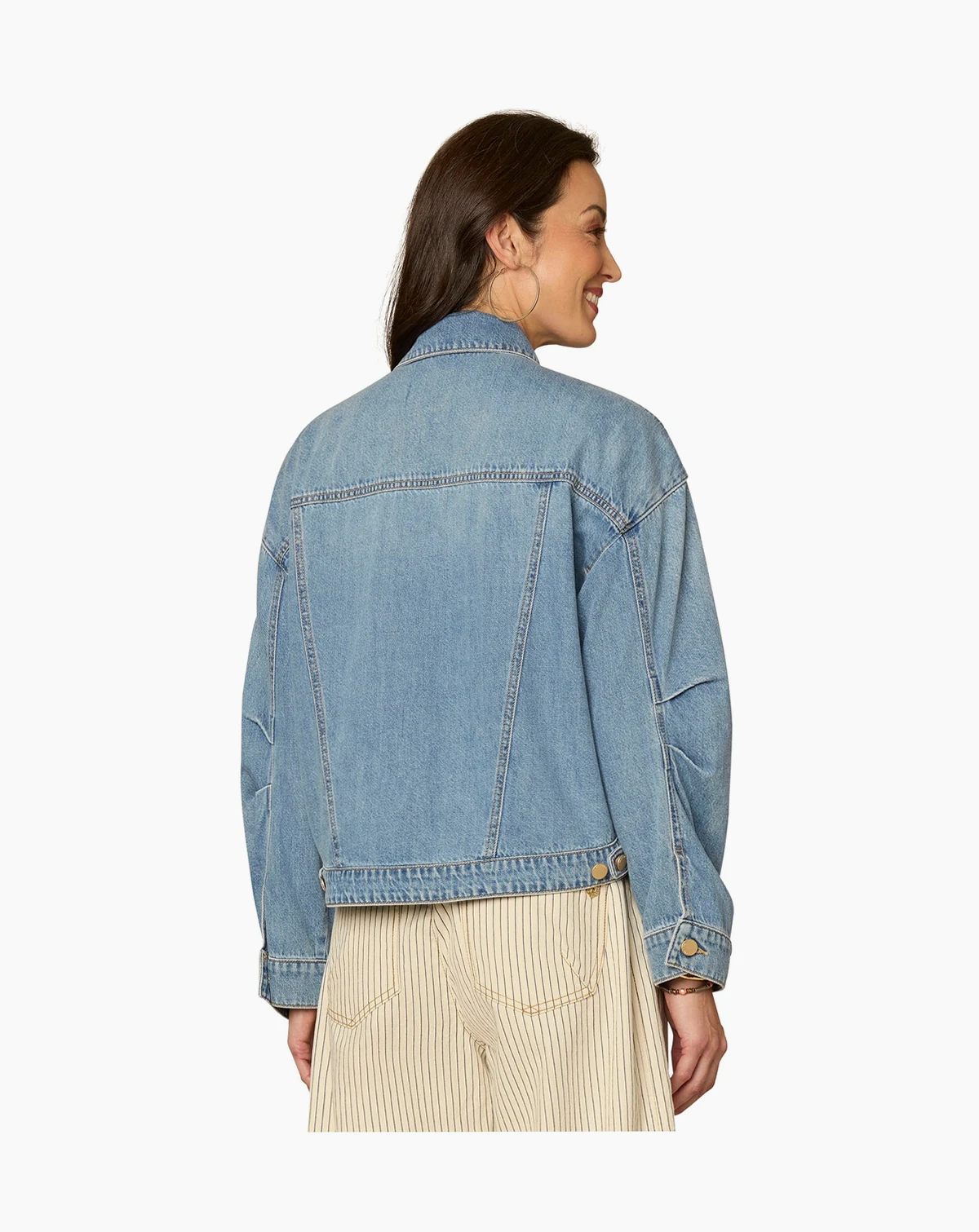 Relaxed proportions and modern utility define this Democracy jacket, styled with an oversized fit and sculptural barrel sleeves. Welt pockets and a hi-lo hem add polish and movement to the clean silhouette.