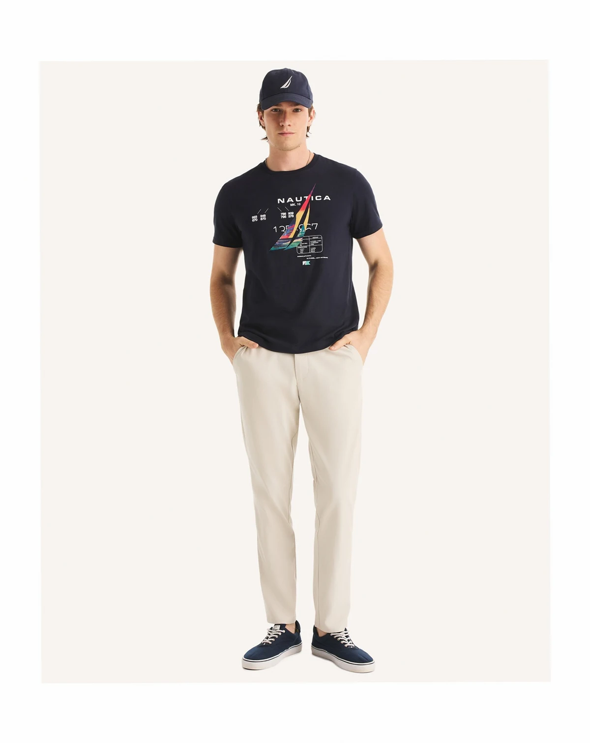 Off-duty moments feel effortlessly aligned with this Nautica short-sleeve T-shirt, offering a relaxed everyday versatility. A classic crewneck pairs with a ribbed collar for a comfortable, secure fit during everyday wear. A classic-fit works with a pull-on design to encourage easy dressing, complemented by a colorful front logo accent.