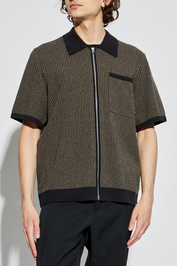 Introducing the Striped Pattern Shirt by Rag & Bone, an exemplary fusion of modern design and classic elegance. Crafted with meticulous attention to detail, this short-sleeved shirt boasts a chic black color adorned with vertical stripes, enhancing its sophisticated allure.