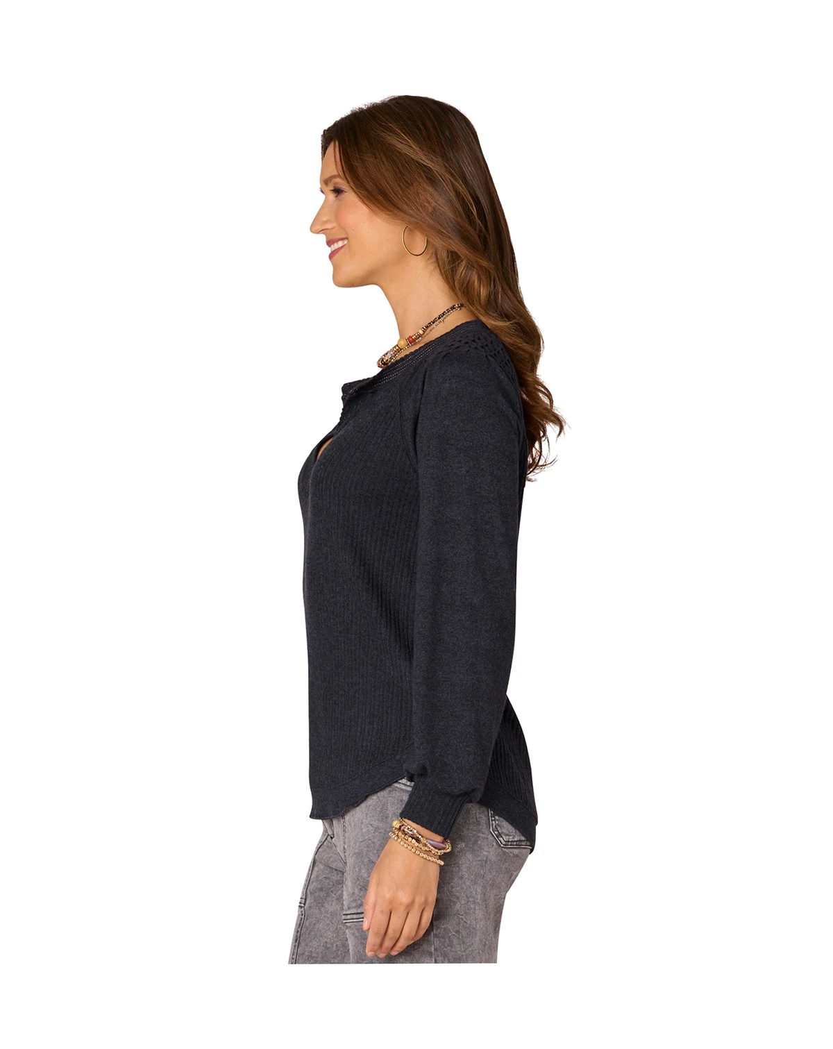 Combine style and comfort with this Democracy top, featuring long blouson sleeves with smocked detailing. A mandarin collar and half-placket add a subtle, polished touch for a refined, everyday look.