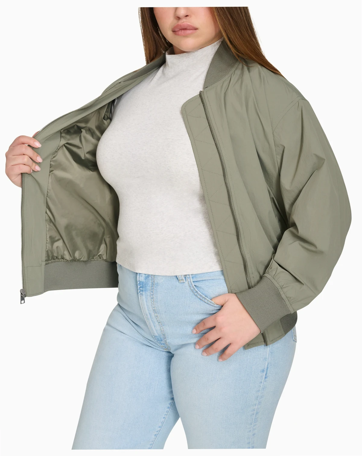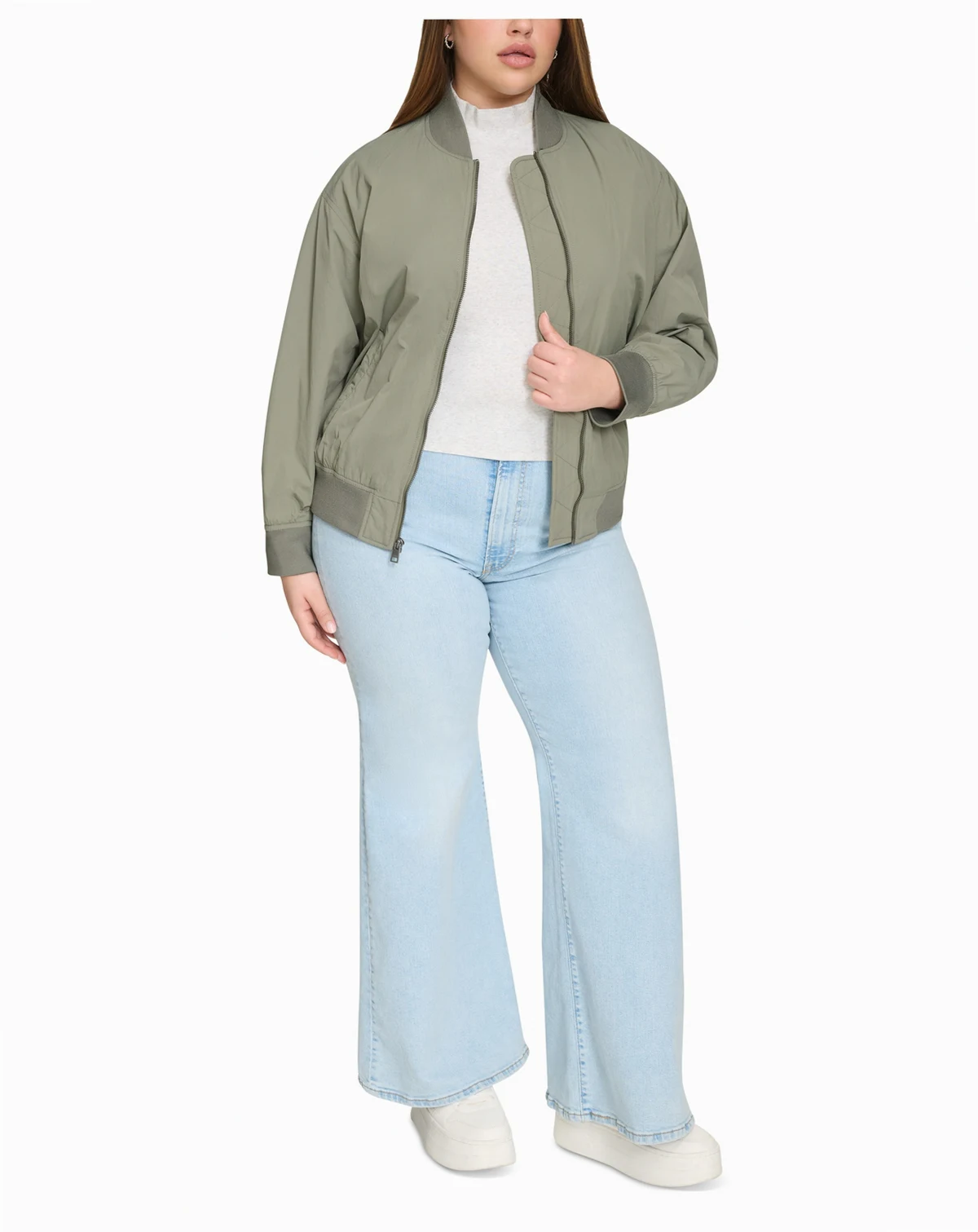 Trendy Plus Size Lightweight Zip-Front Bomber Jacket