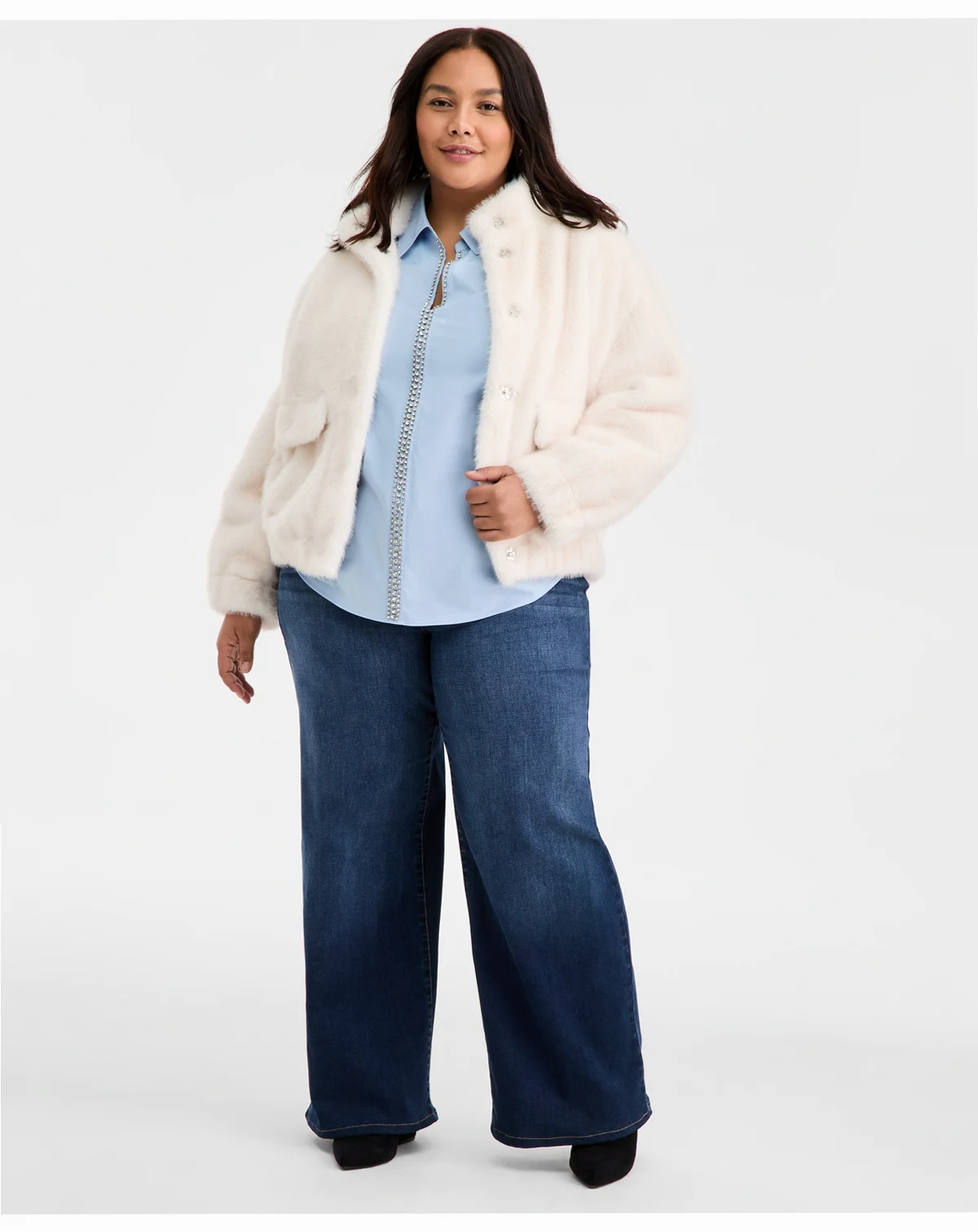 Stay warm and chic this cool weather season thanks to this snug, faux-fur jacket by On 34th, a Trendy Plus style that makes an elevated statement. ABOUT THE BRAND: On 34th was designed for and with women like you. Made for your body, your style, and your truth. As your wardrobe's BFF, these mix-and-match pieces work with everything in your closet.