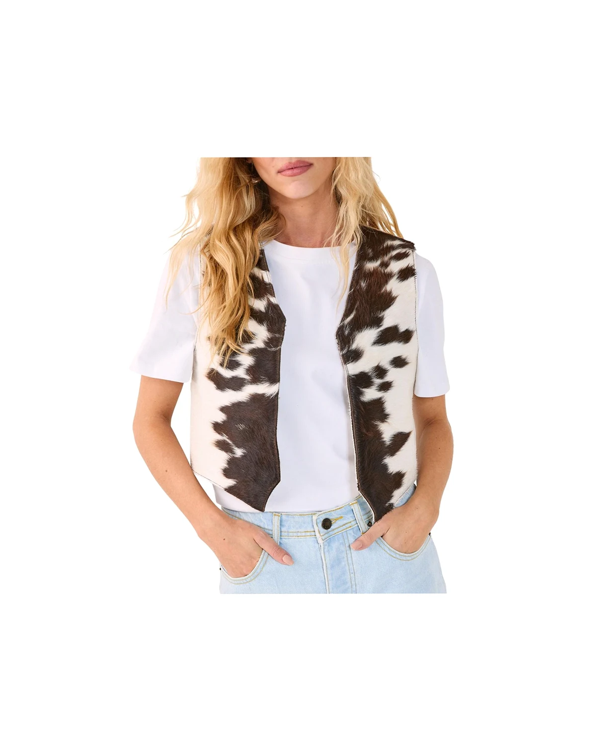 Authentic cow hide leather waistcoat featuring a distinctive pattern that makes each piece uniquely yours. Sleeveless design with a classic v-neckline for effortless layering over your favourite tops. Front zip fastening for a secure and adjustable fit. Cropped silhouette that sits perfectly at the waist for a flattering shape. Part of the exclusive nastygal icons collection, celebrating statement pieces that stand the test of time.