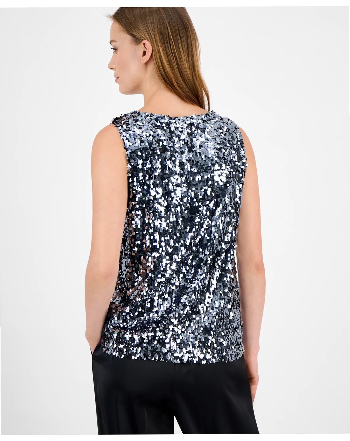 Striking and shimmering sequins add a special-occasion feel to this sleeveless blouse Anne Klein, a statement topper to endless ensembles.