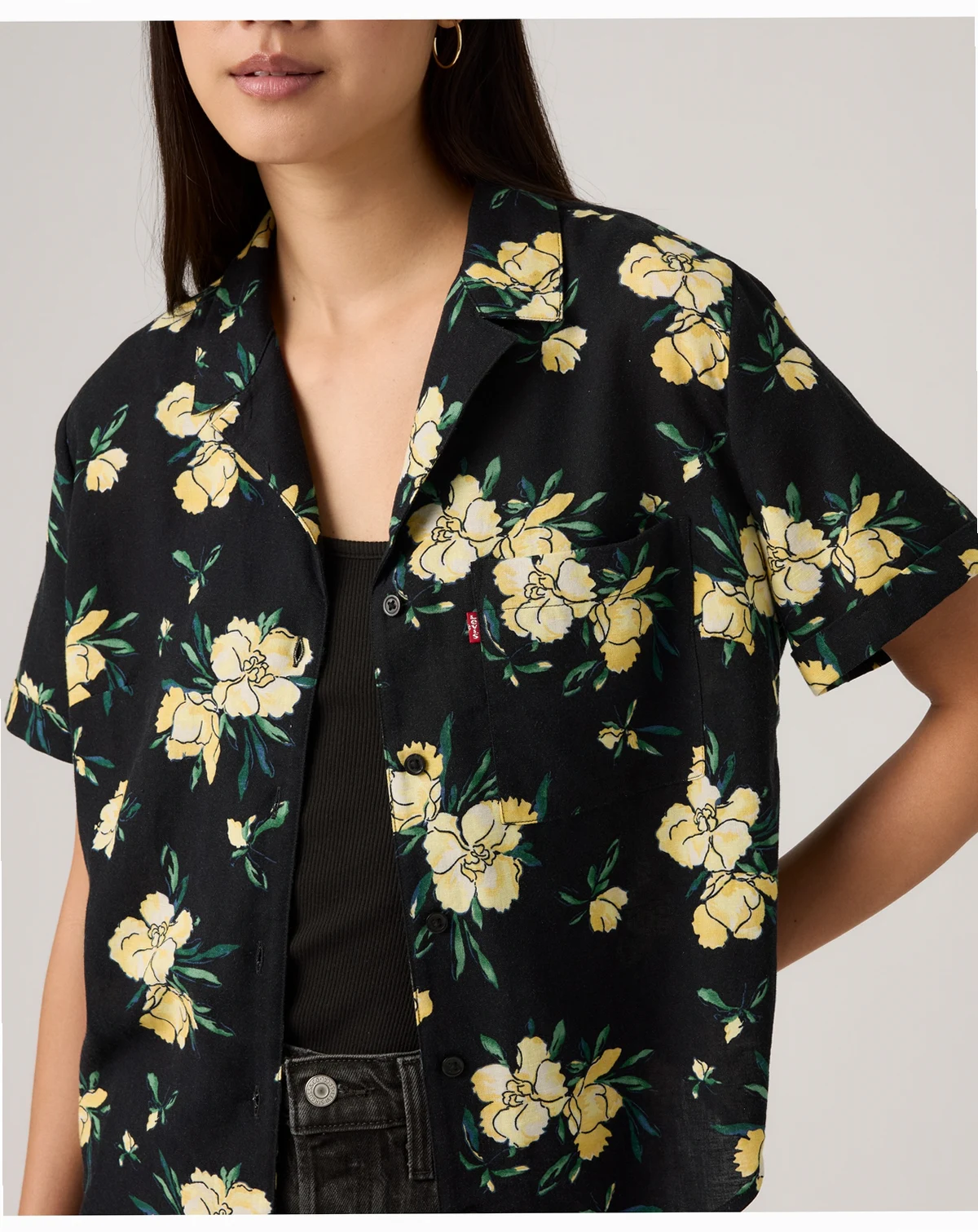 Relaxed warm-weather style defines this Levi's Bennie short-sleeve camp shirt styled with a button-up front. A laid-back fit and pointed collar enhance comfort, while an airy silhouette suits casual days.