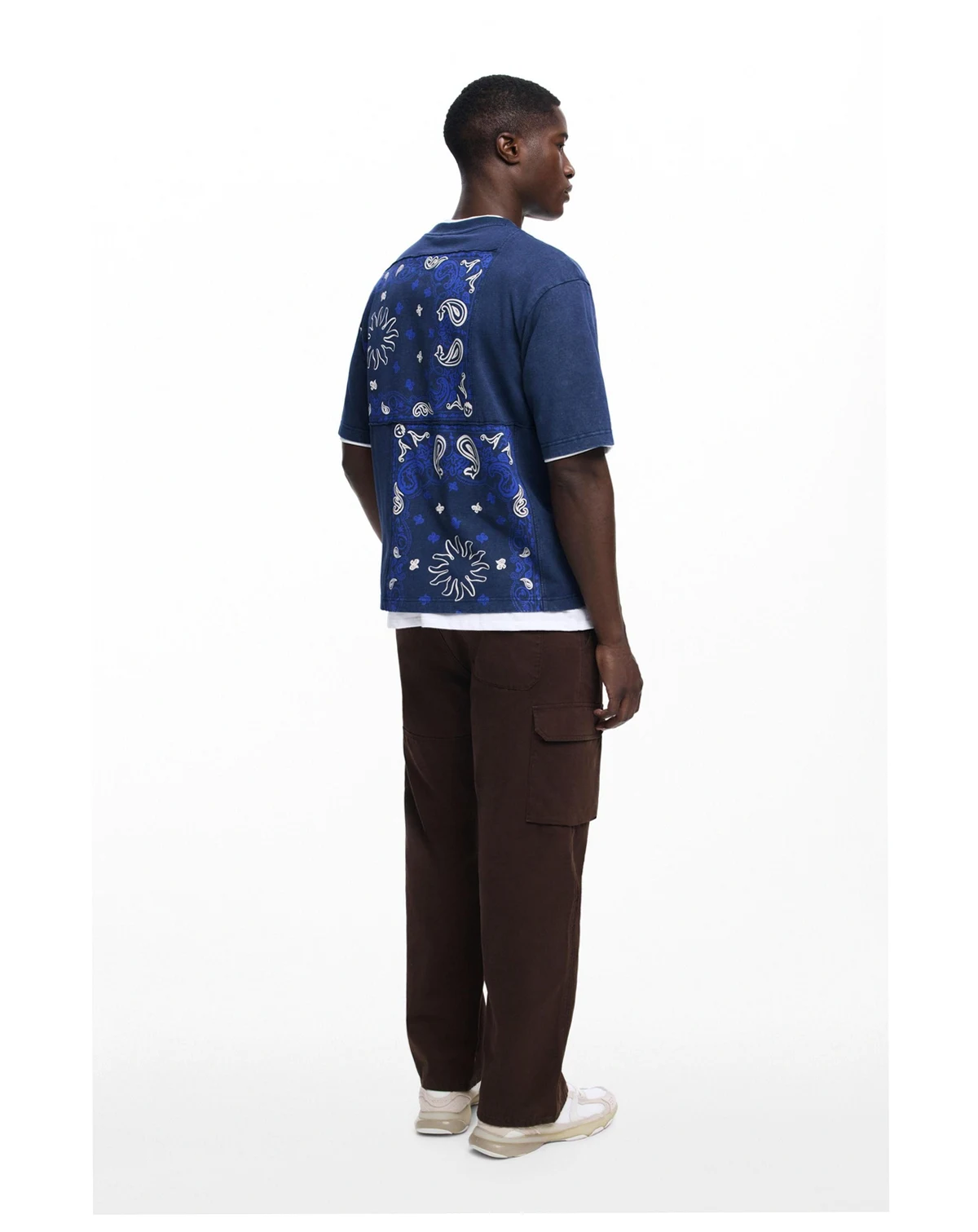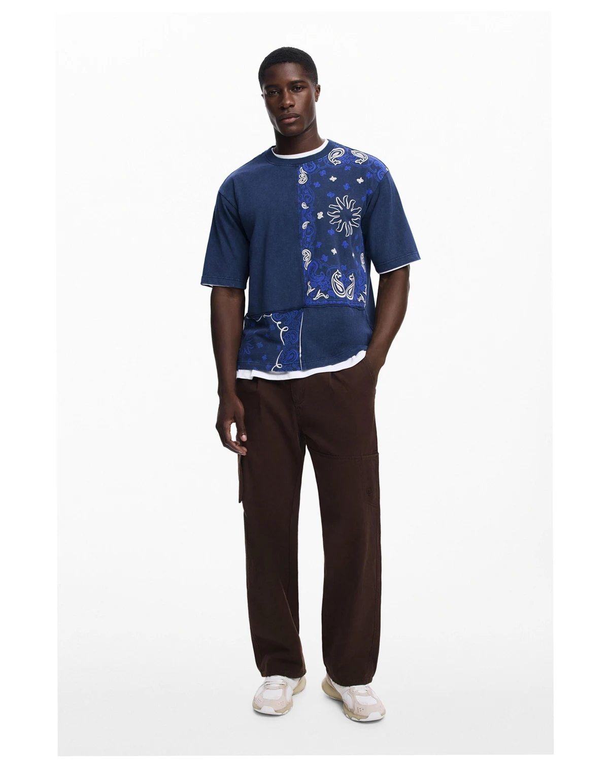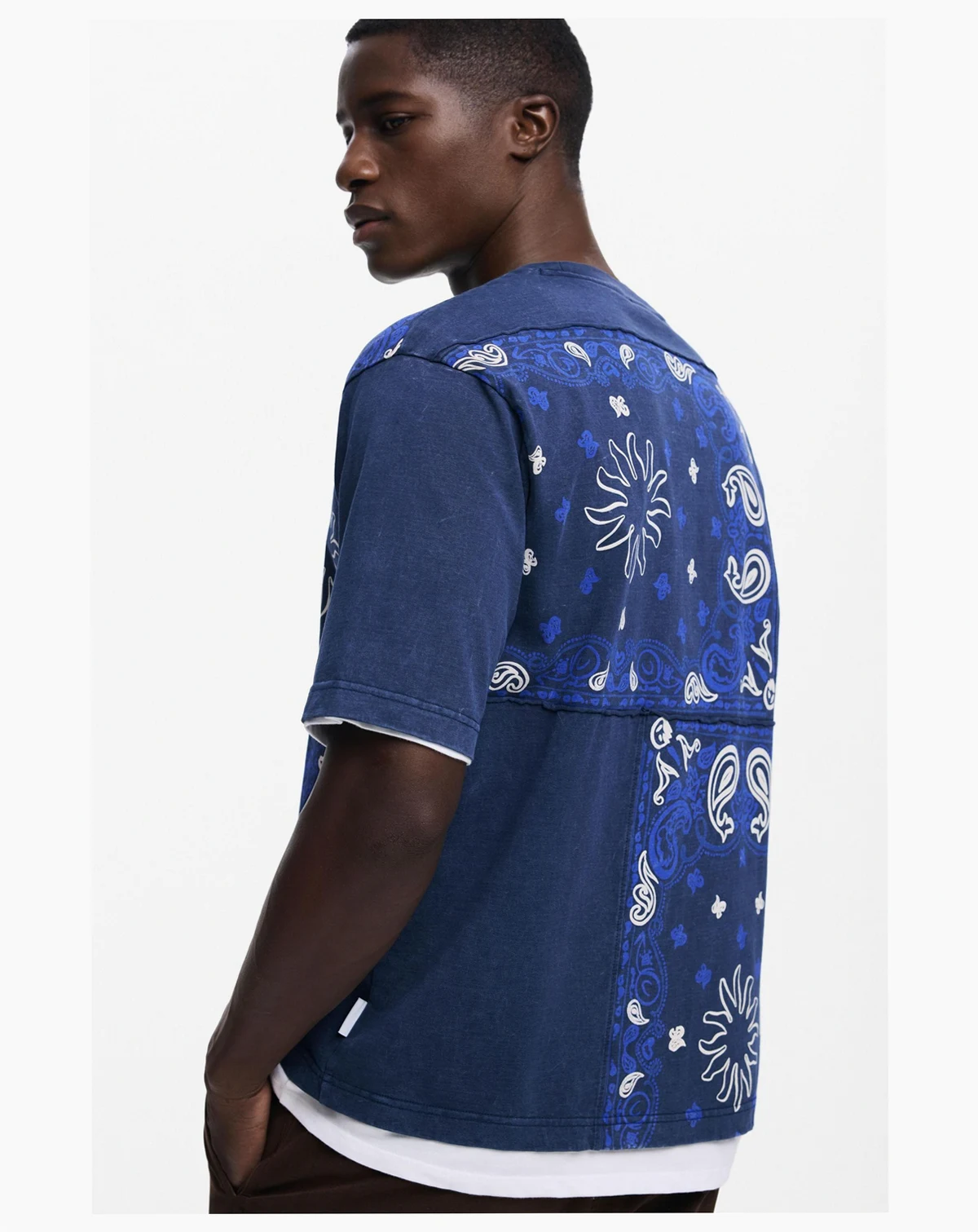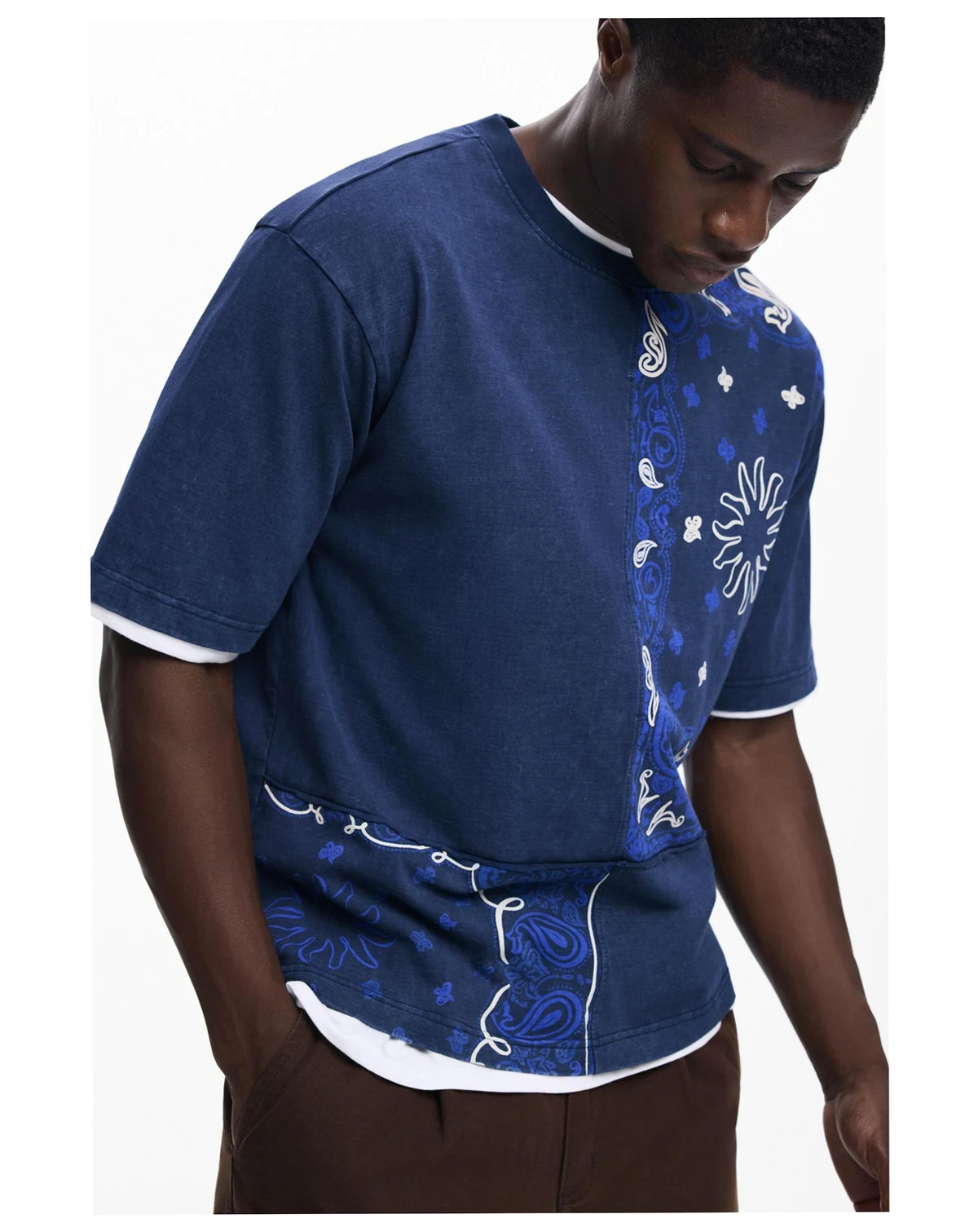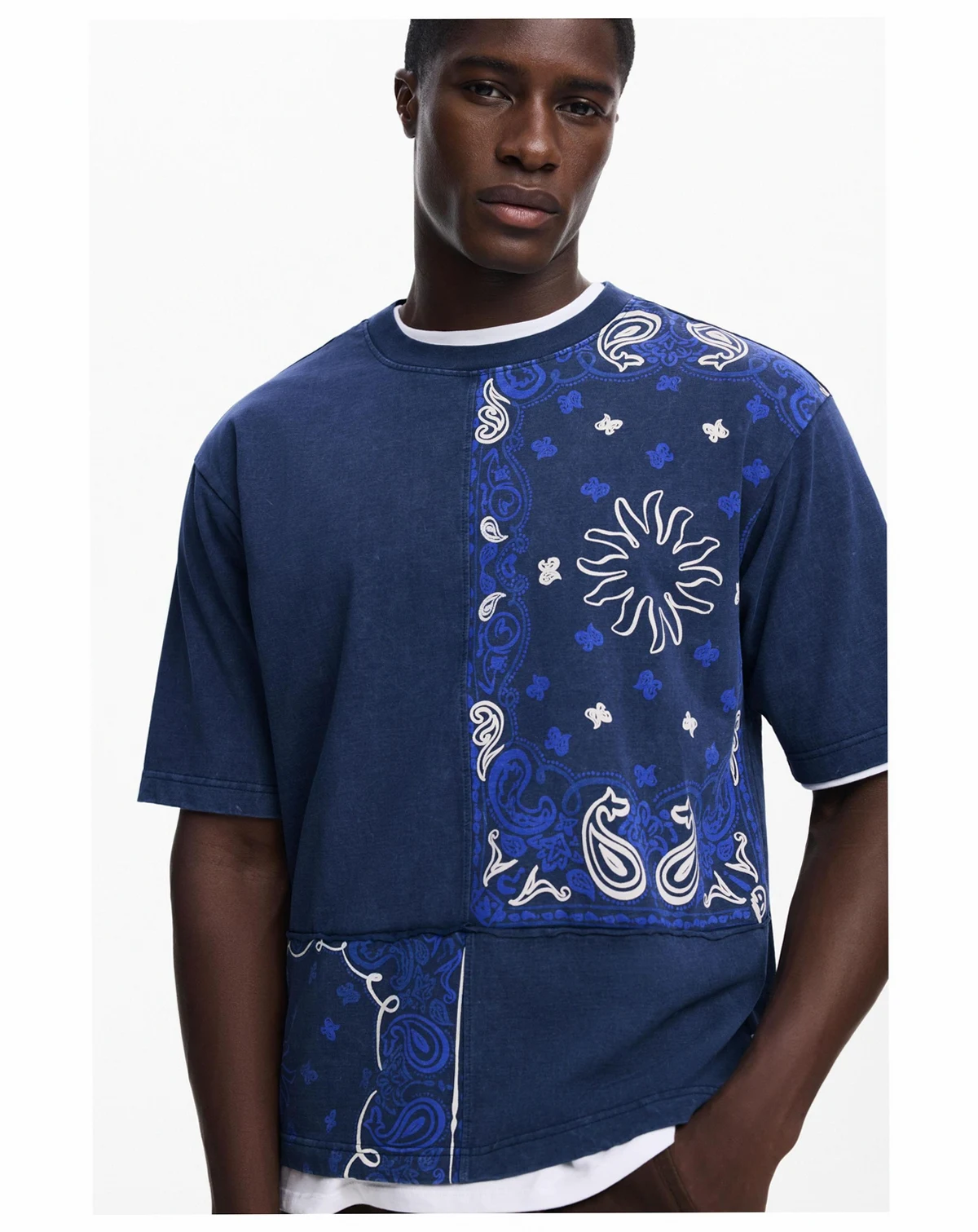 Short-sleeved regular-fit T-shirt made of cotton, with a patchwork-effect design in paisley style.
