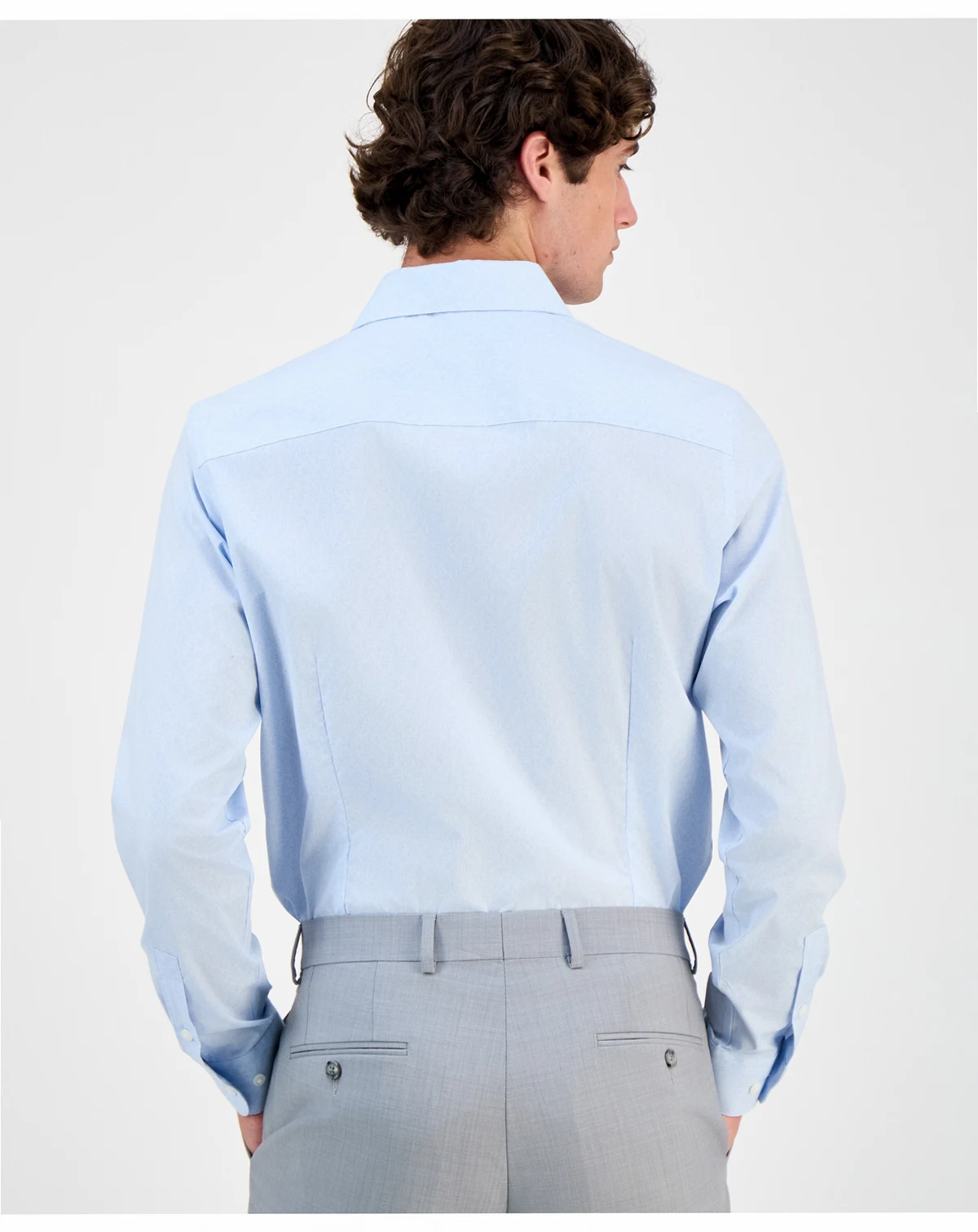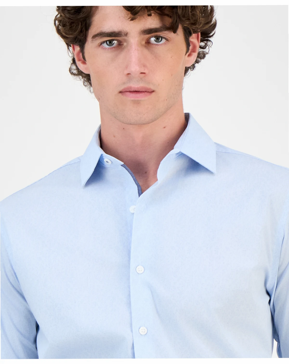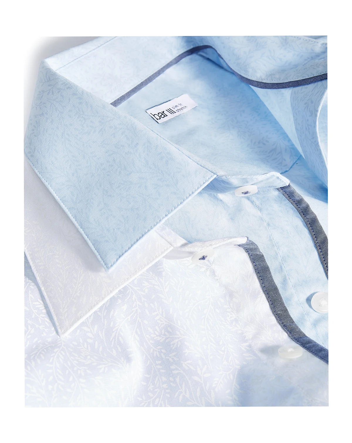Designed for a look that works untucked or tucked, this slim-fit dress shirt from Bar III comes complete with a subtle vine-print pattern that adds depth and sophistication to your button-down.