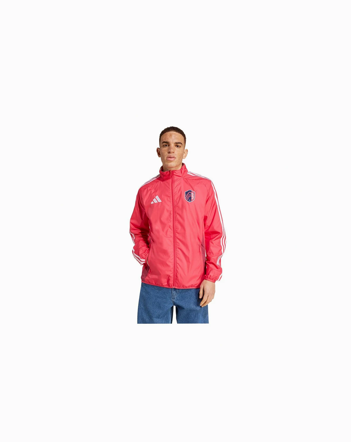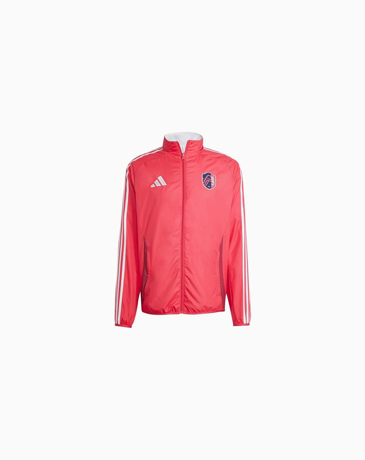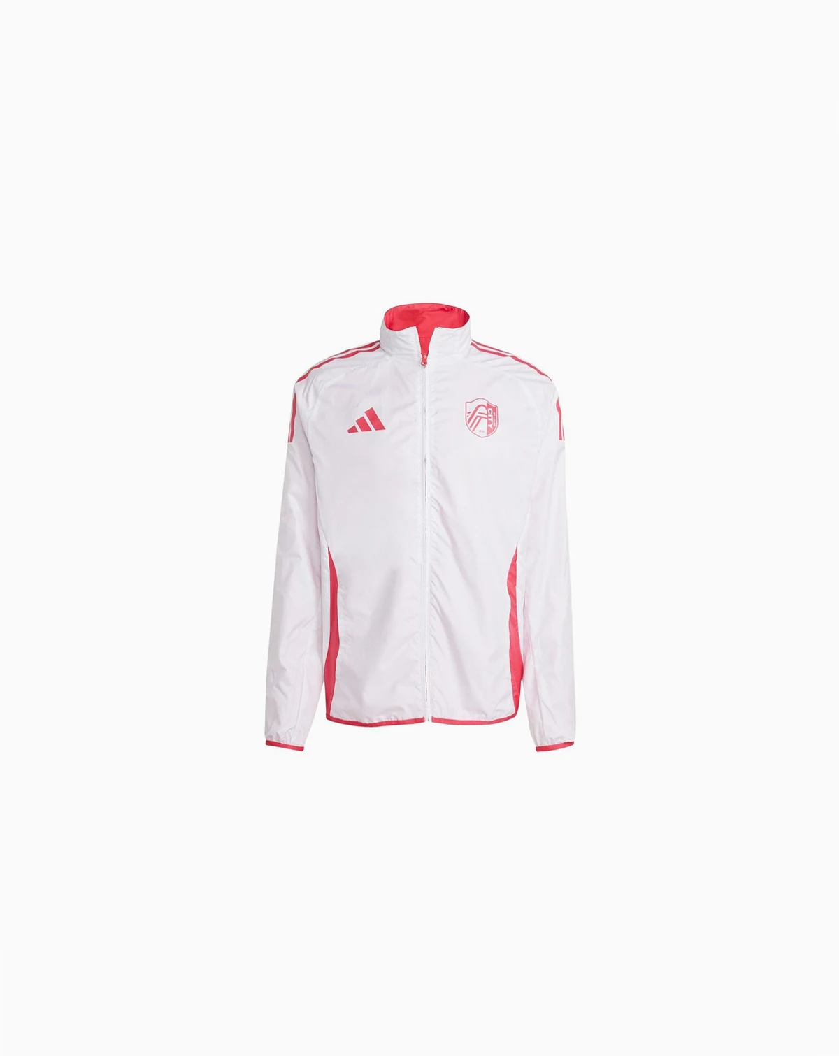Embrace your St. Louis City SC pride with this 2025 Anthem Reversible Full zip Jacket from Adidas. This reversible jacket offers two distinct looks in one, featuring screen print graphics on one side and a sublimated design on the other. Made from materials, it boasts a comfortable midweight construction ideal for moderate temperatures, while elastic cuffs and a bottom hem offer a secure and personalized fit.