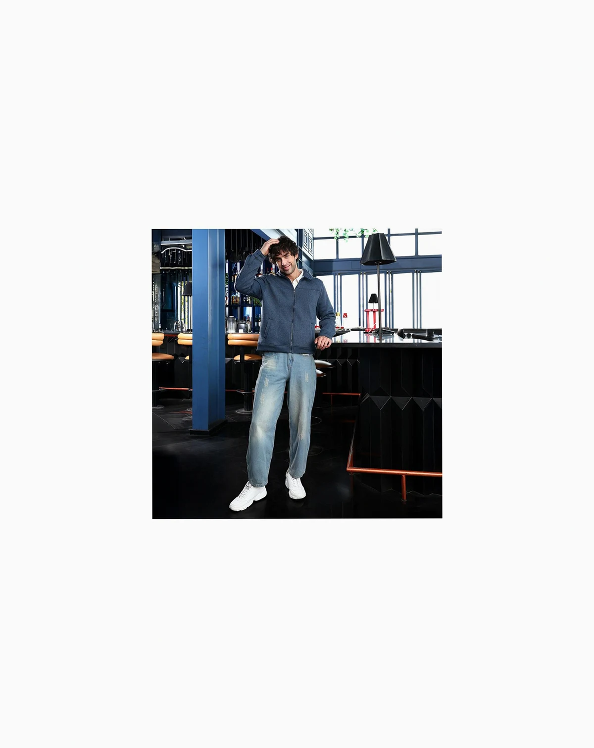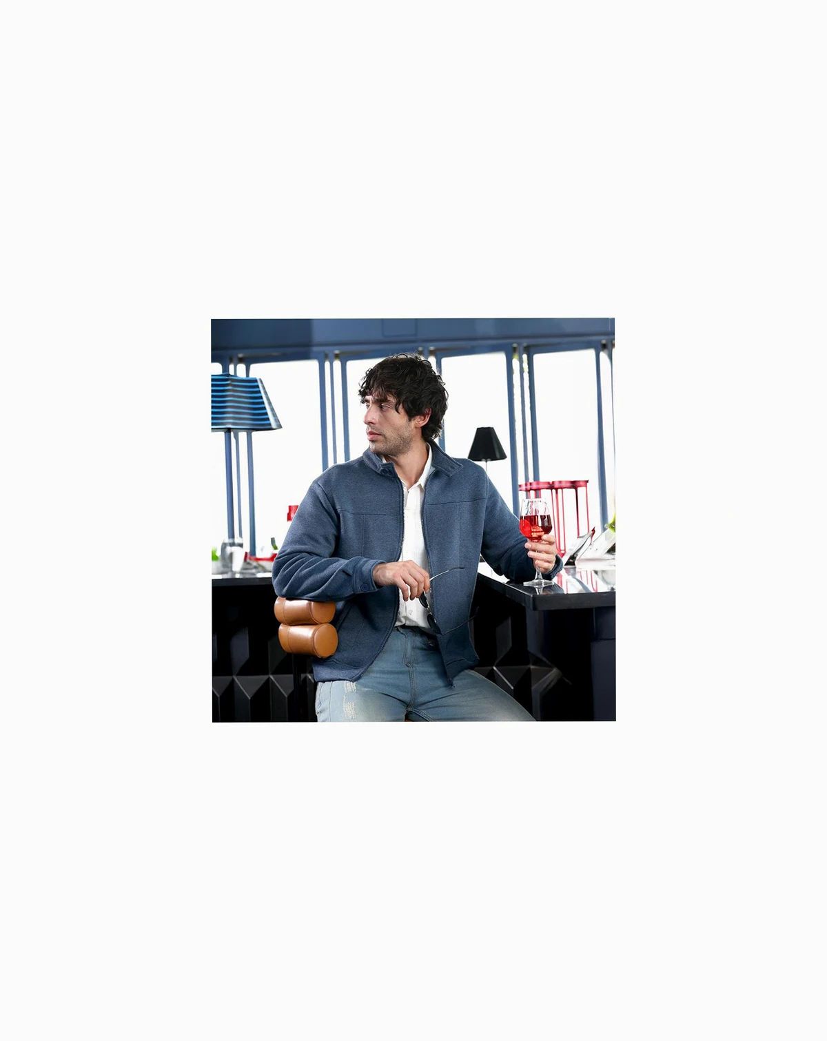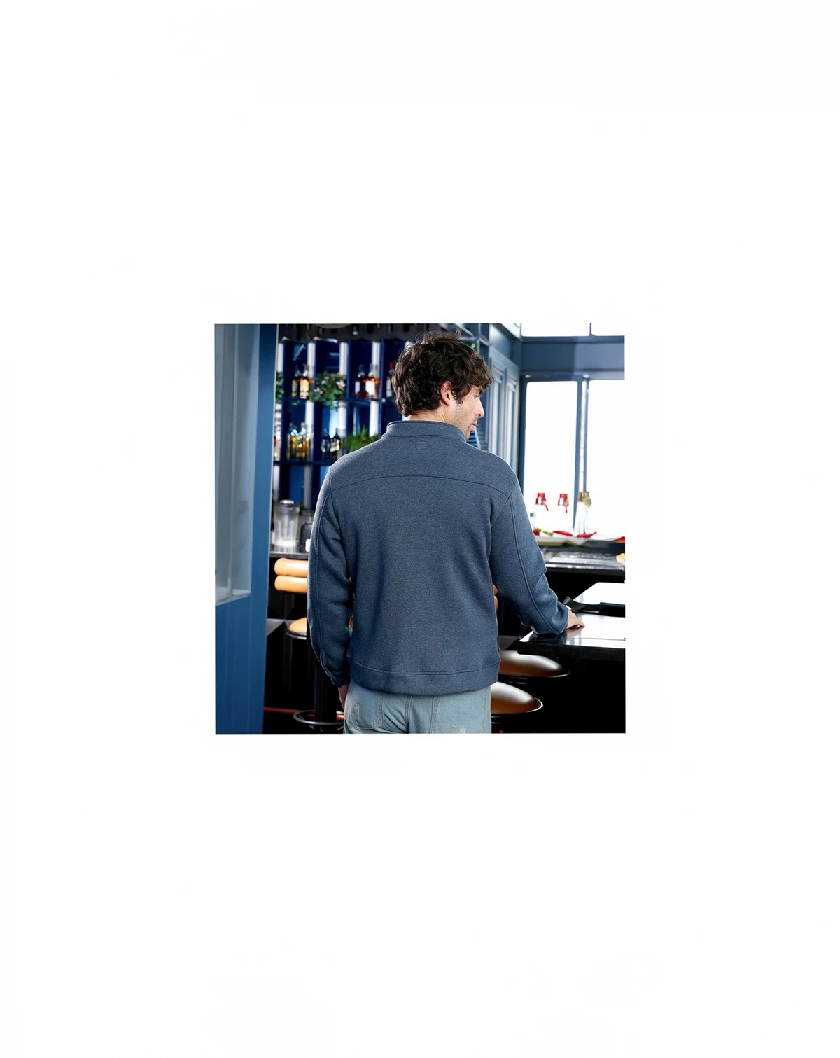 Men's Indigo Blue Panel-Stitch Knit Jacket