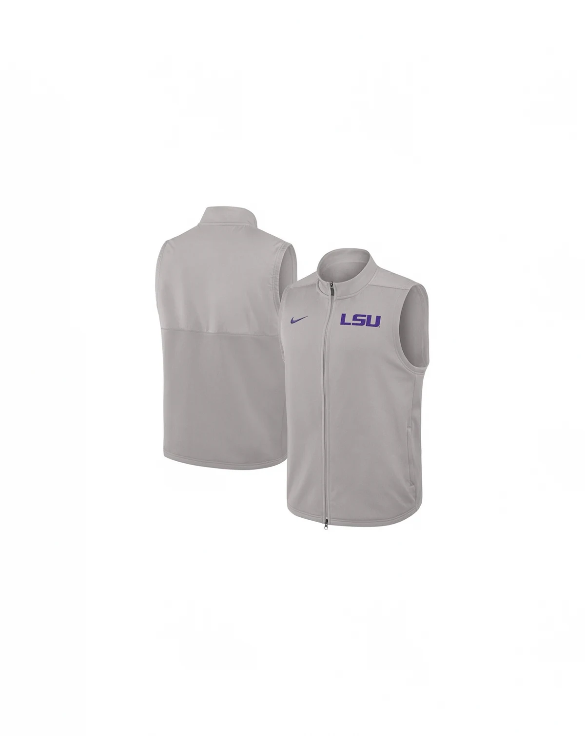 Prepare for rainy weather with this LSU Tigers Primetime Victory Performance Full-Zip Vest by Nike. It features the team logo printed on water-resistant taffeta fabric. Lightweight, breathable Therma-FIT technology makes this LSU Tigers vest a versatile option for active fans.