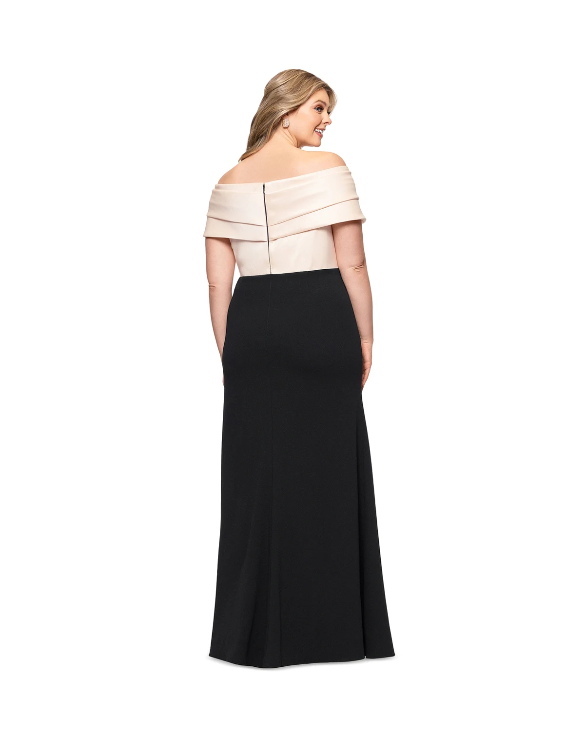 Plus Size Mixed-Material Off-The-Shoulder Gown