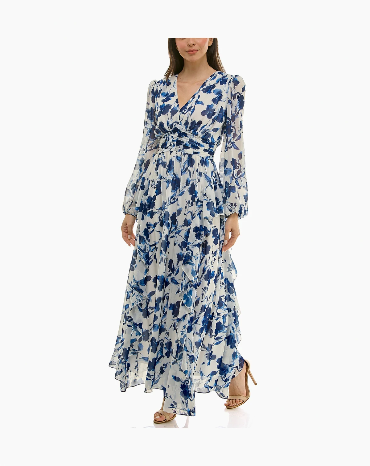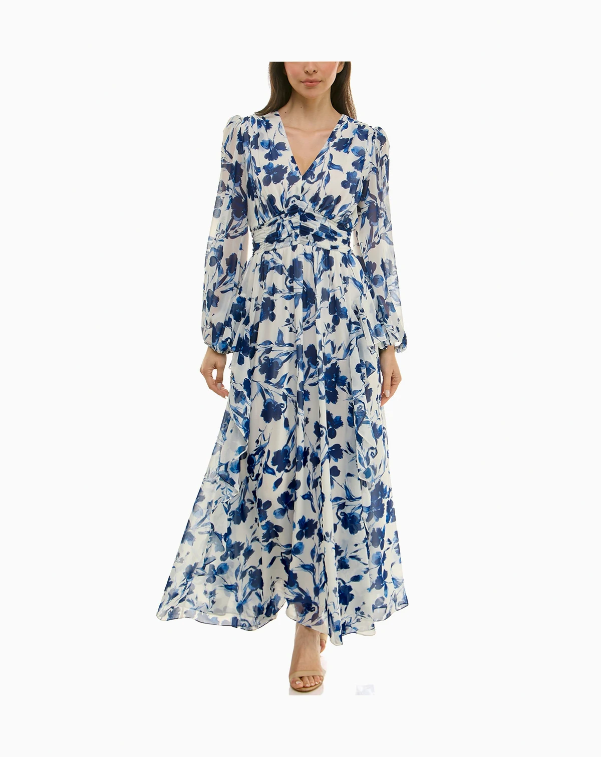 Achieve a flattering silhouette in this dress by Taylor, featuring a detailed shirred waist and V-neckline. The long, lined construction ensures a polished look for various occasions.