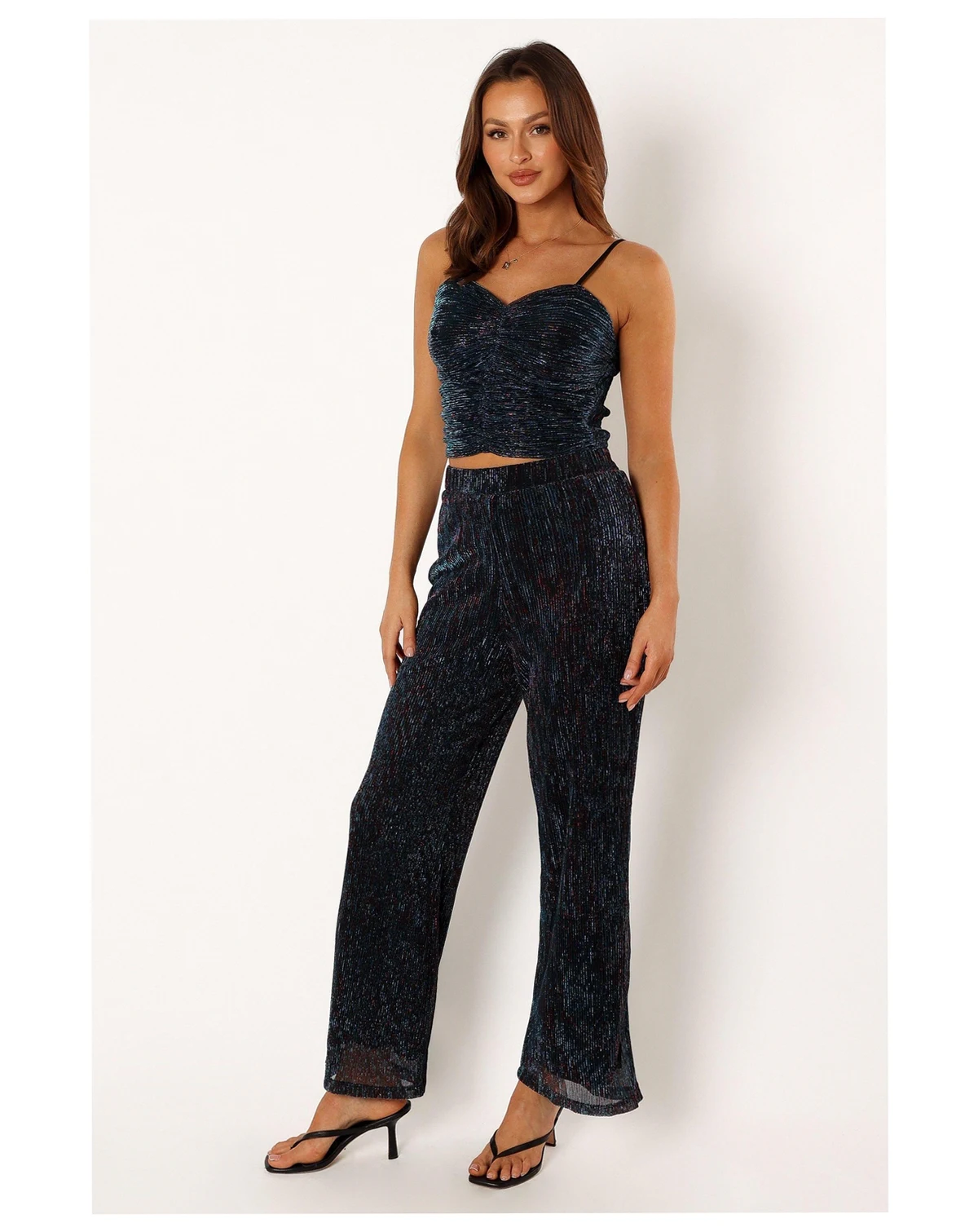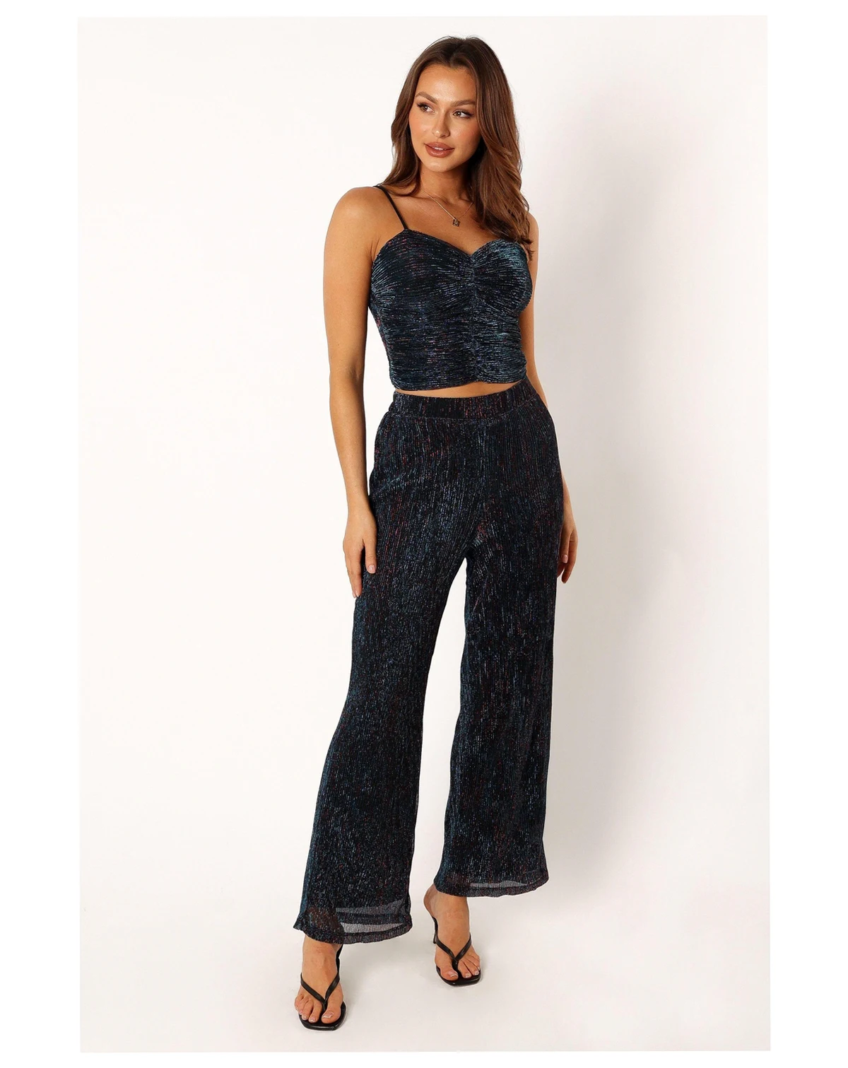 These pull on pants have an elasticized waist and feature plisse fabric detail, giving it a chic, contemporary feel. The wide leg silhouette gives you plenty of room for movement and creates a timeless look.