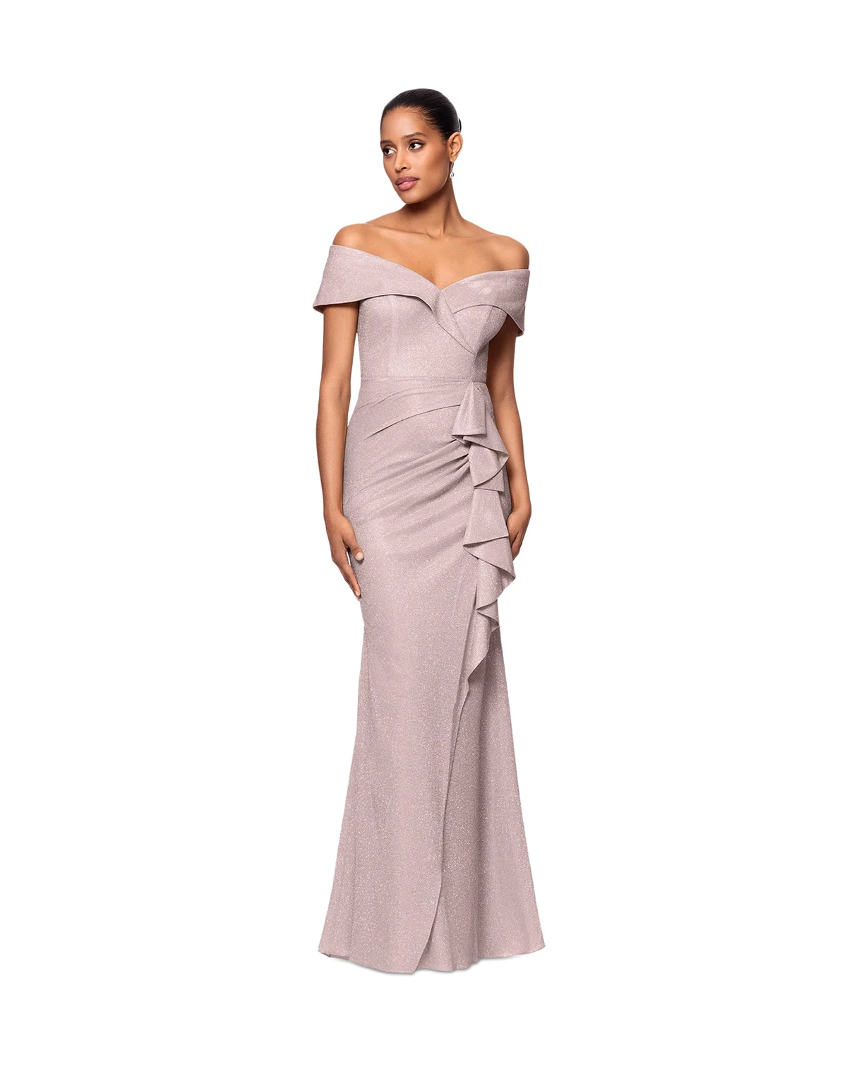 88% polyester, 12% metallic; lining: 100% polyester; IMPORTANT NOTE: This item arrives with a return tag attached and instructions for removal. Once the tag is removed from the dress, this item cannot be returned.