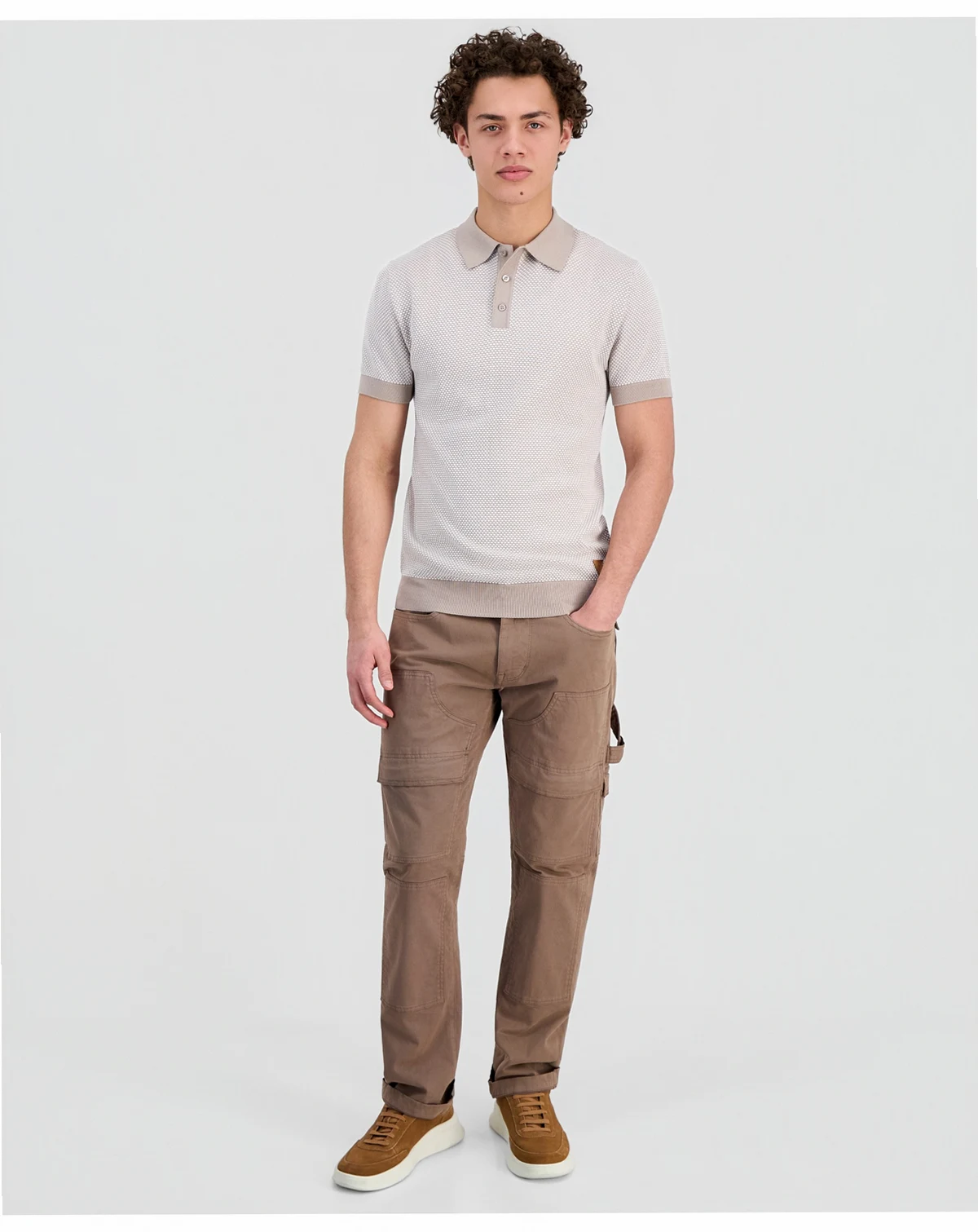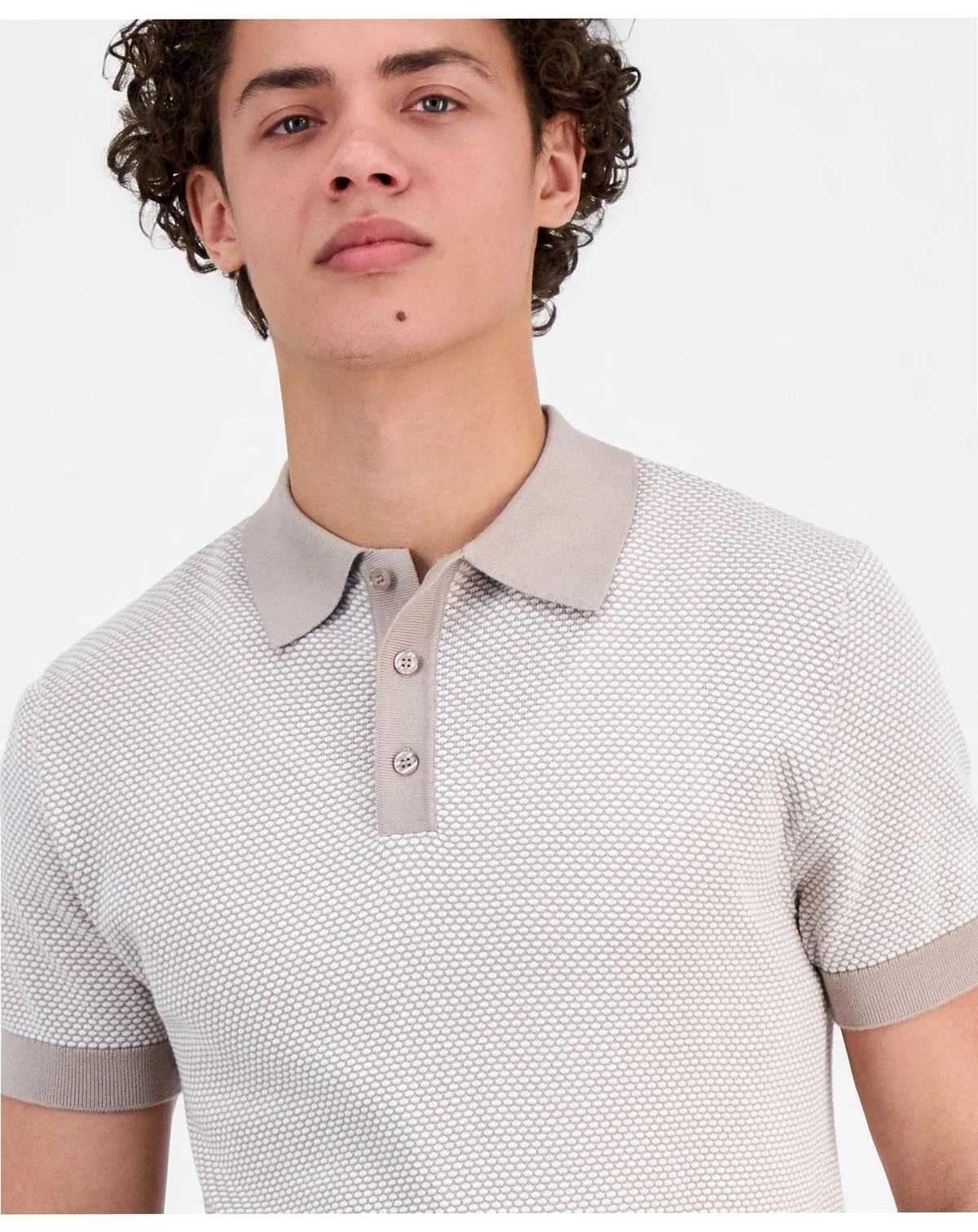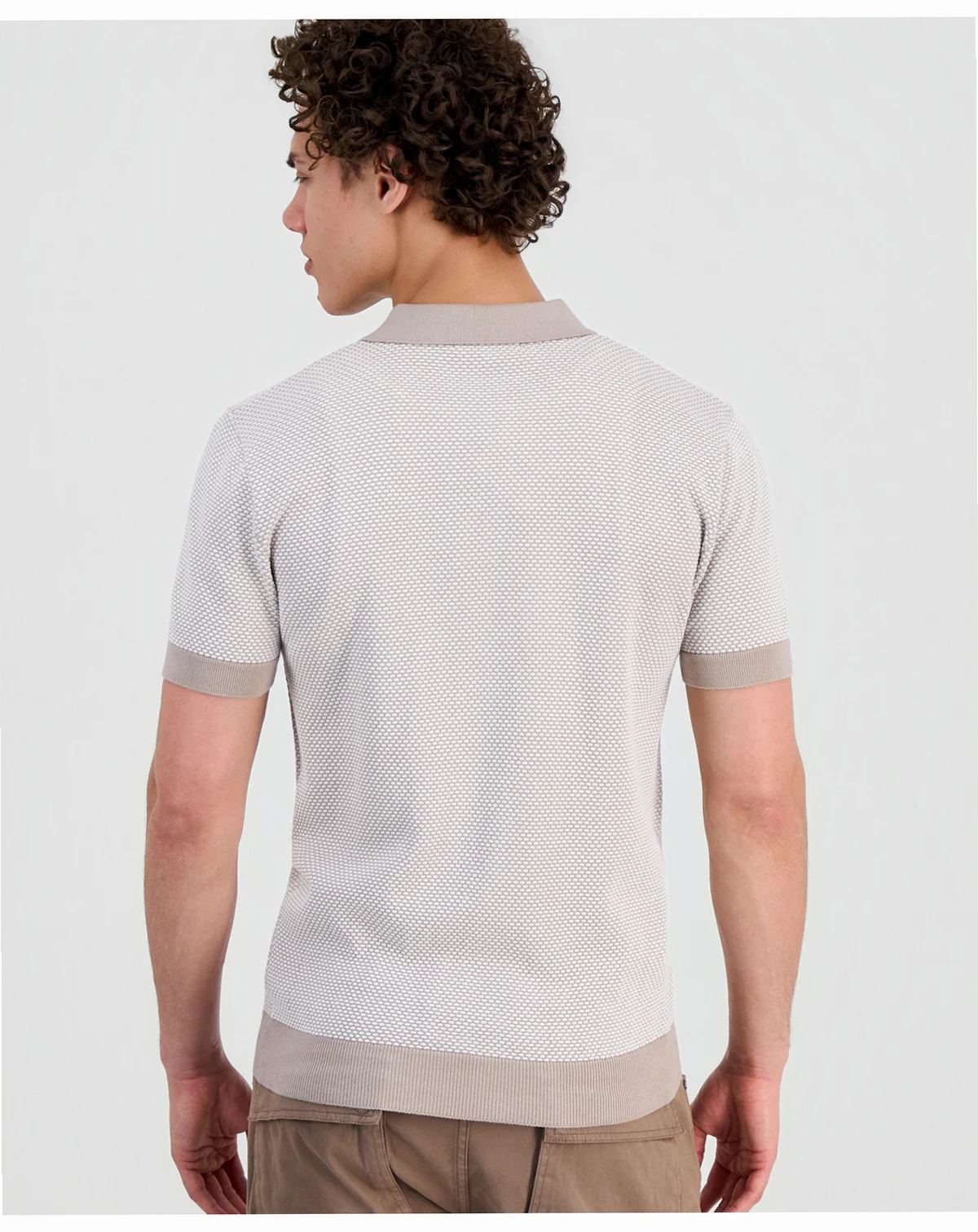 Level up your look with a textured knit polo from GUESS. The soft, breathable fabric features a subtle tonal pattern, ribbed cuffs, and a classic collar for a refined yet relaxed vibe.