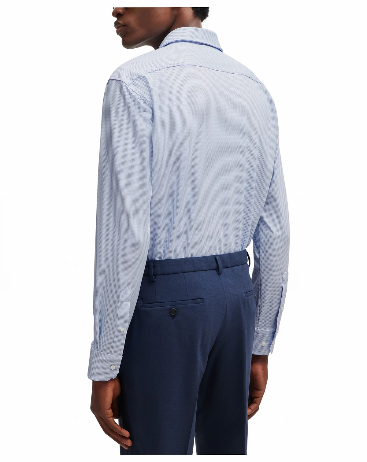 An advanced business shirt by BOSS Menswear combining a regular fit with performance-stretch fabric featuring a micro structure.