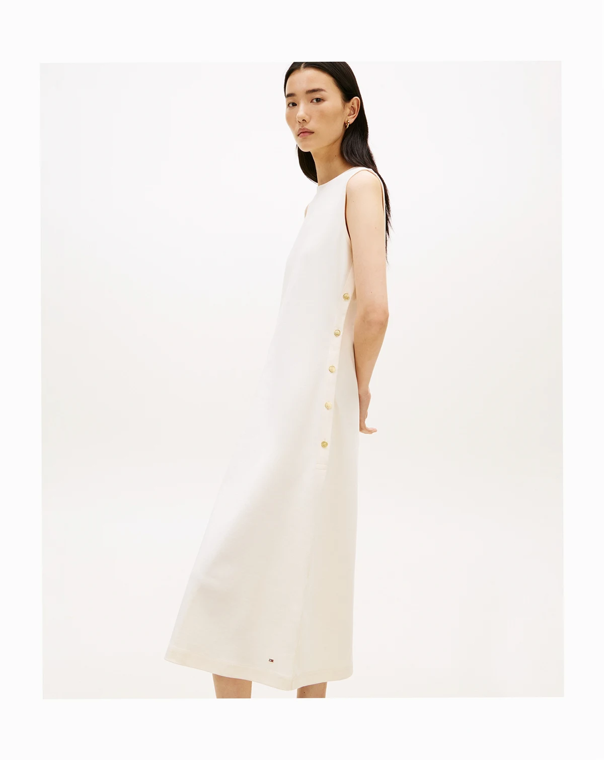 Present a polished look in this Tommy Hilfiger midi dress, blending timeless appeal with modern sophistication. Refined gold-tone buttons elevate the classic silhouette, adding an elegant touch to a flattering design.