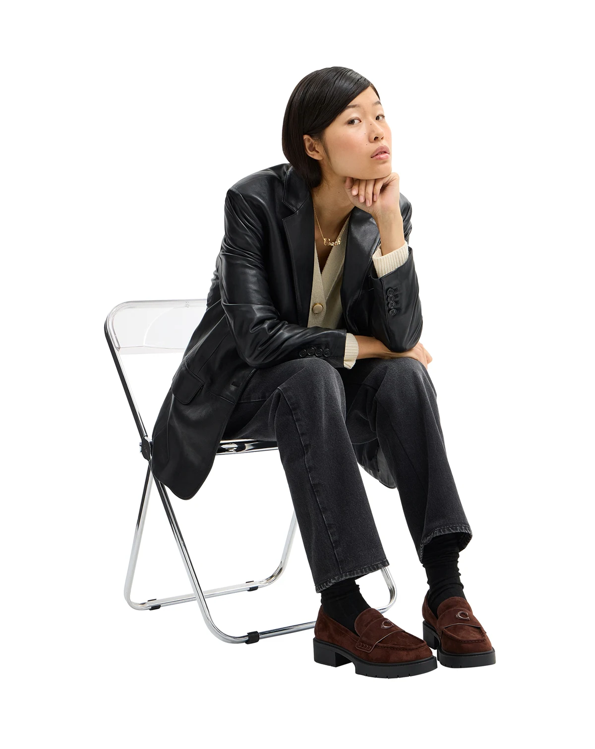 Make a stylish initial impression with the shiny C trim that sets apart the COACH Leah platform lug sole loafers. The Leah loafers by COACH blend classic appeal with updated details and versatile slip-on styling.