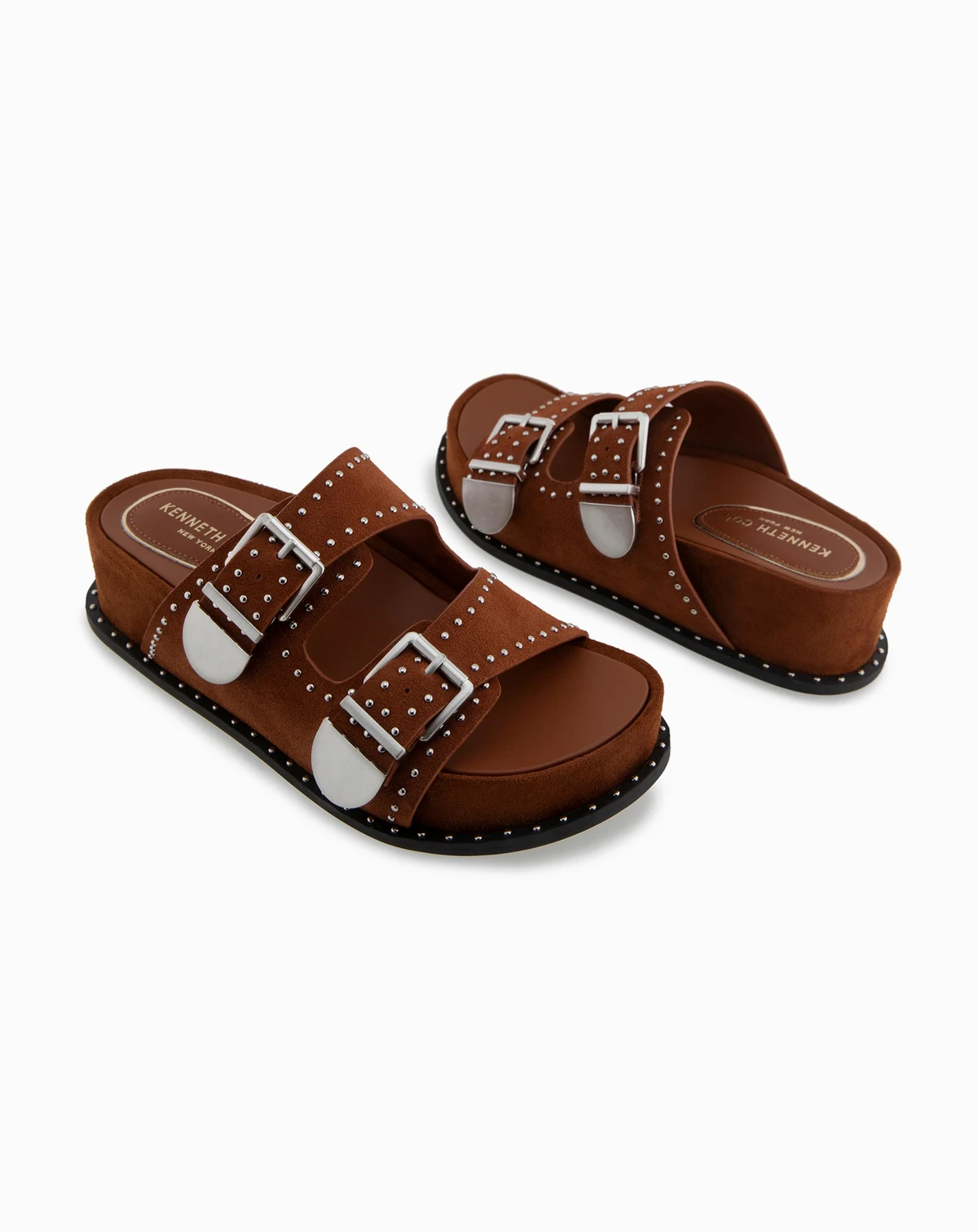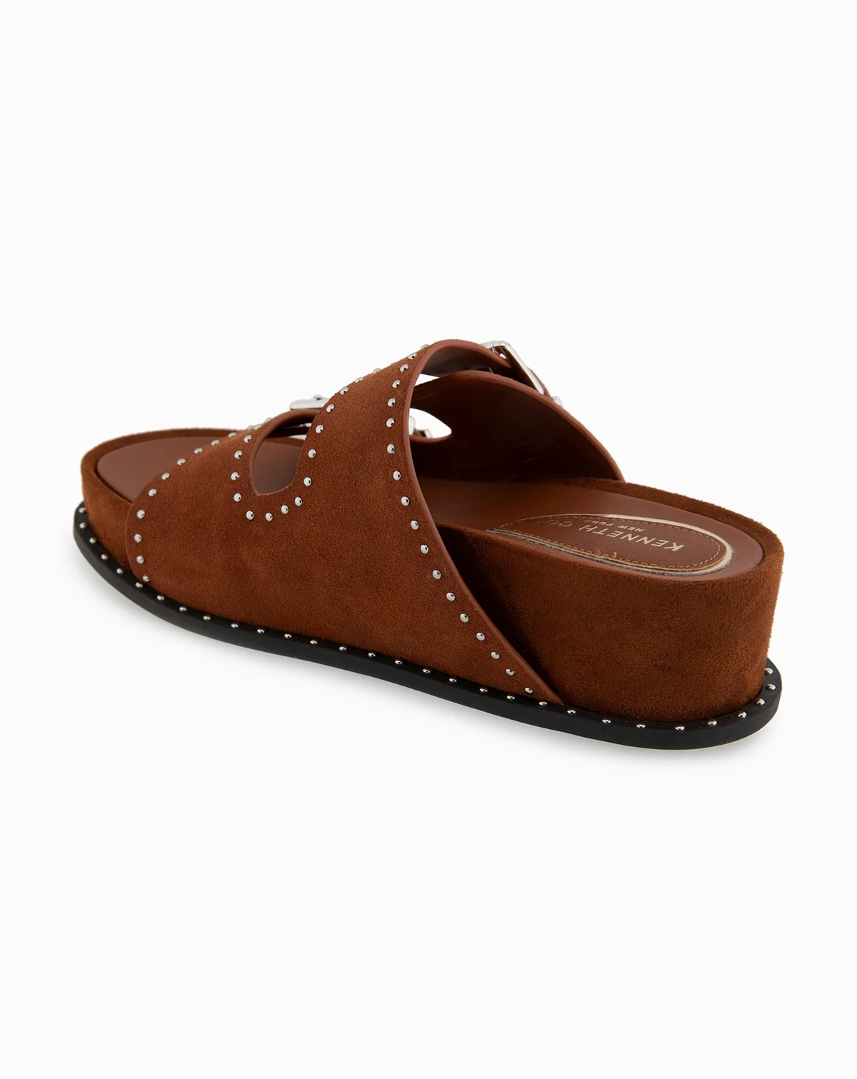If you have a passion for metal, you'll love the Kenneth Cole New York Gradie double buckle footbed wedge, which boasts an extended studded welt and elegant studded detailing. It's casual enough to wear shorts and denim yet sophisticated enough to pair beautifully with long skirts and dresses.
