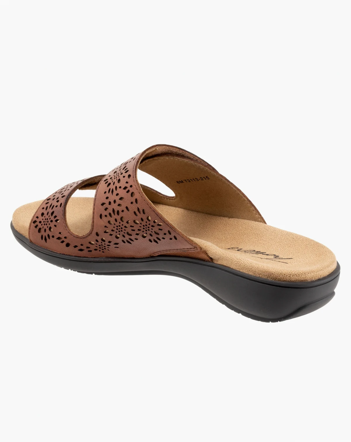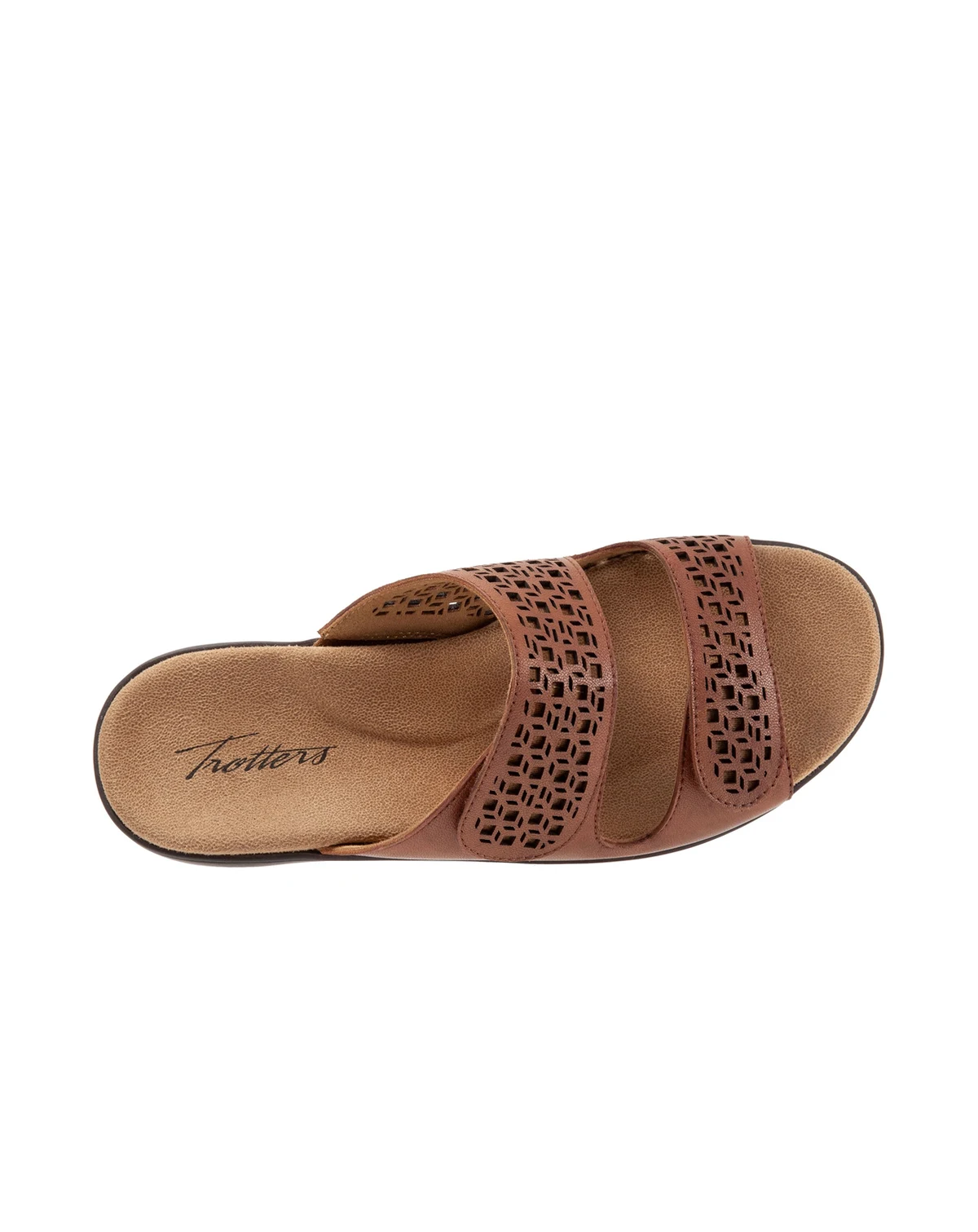 Geometric breezy perfs add visual interest to the comfort-focused Ruthie two-band slide. A cushioned footbed with molded support on a flexible sole maximize comfort.