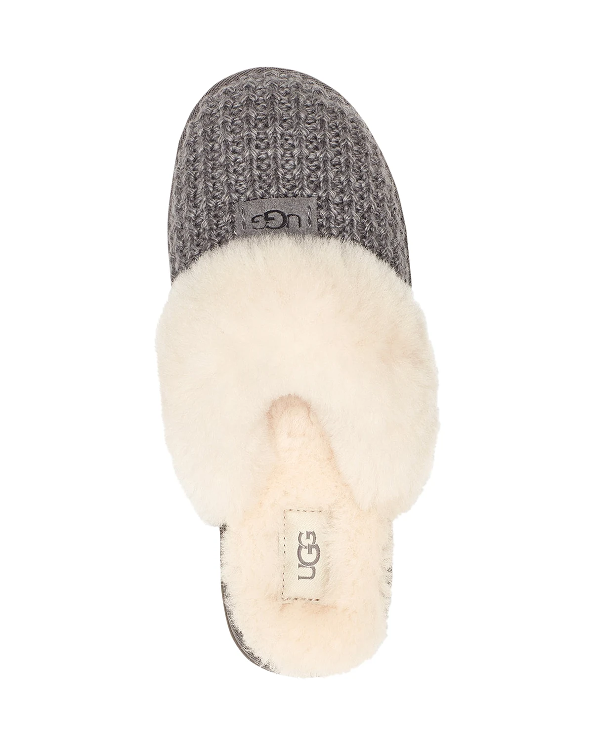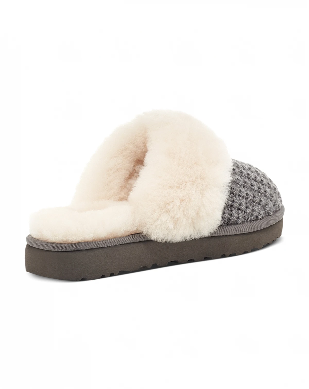 Perfect to snuggle up indoors or to step outside in sporty style, the UGG® Cozy sweater-knit slippers chase the chills with chic faux-sheepskin collars and linings.