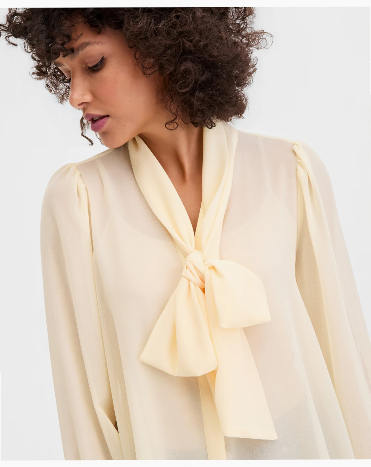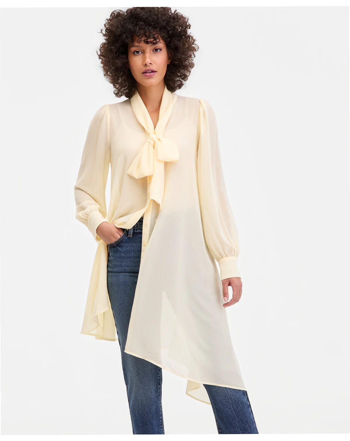 Women's Long Sleeve Bow-Neck Chiffon Tunic, Macy's Exclusive