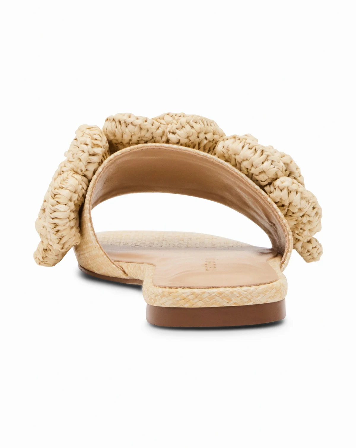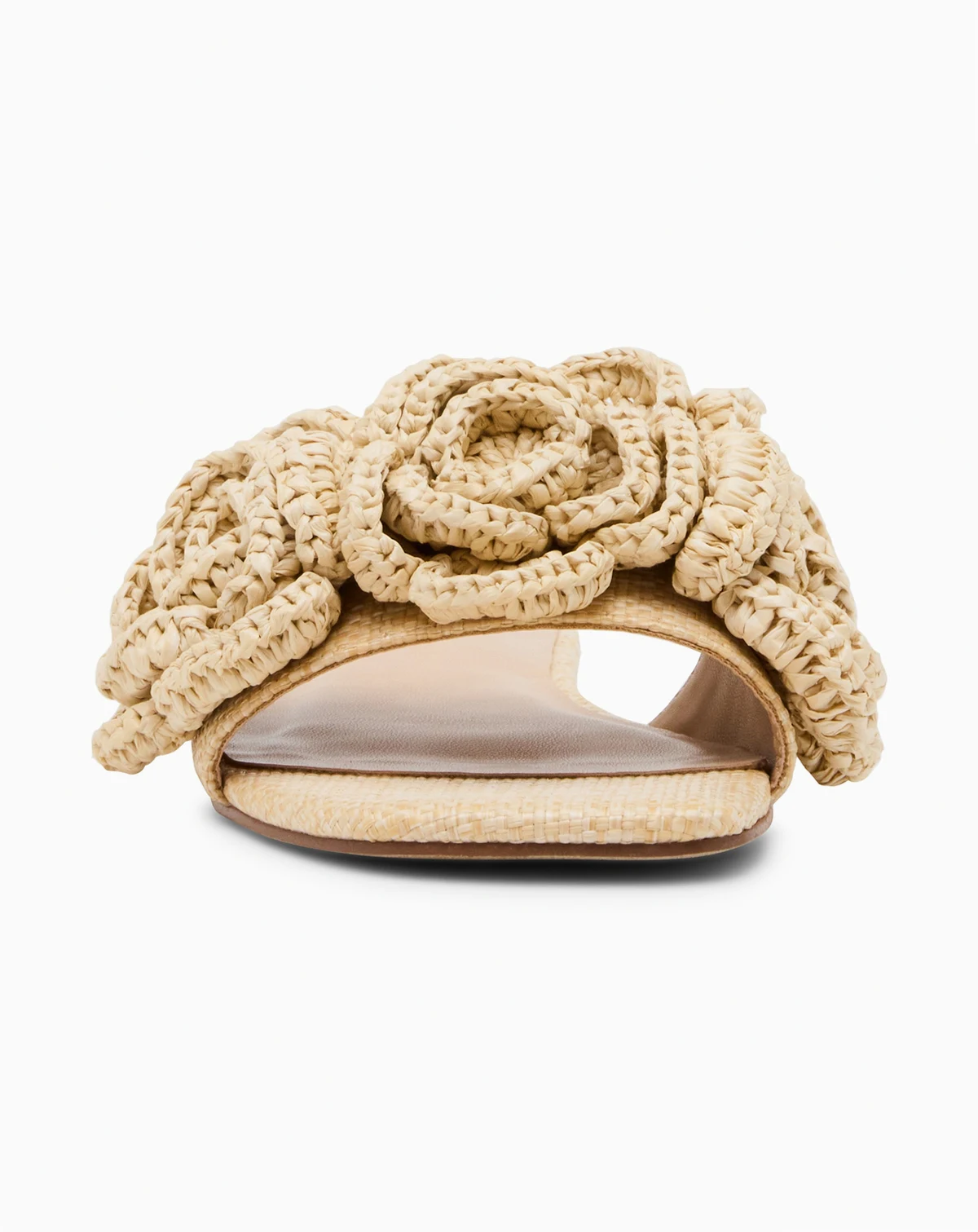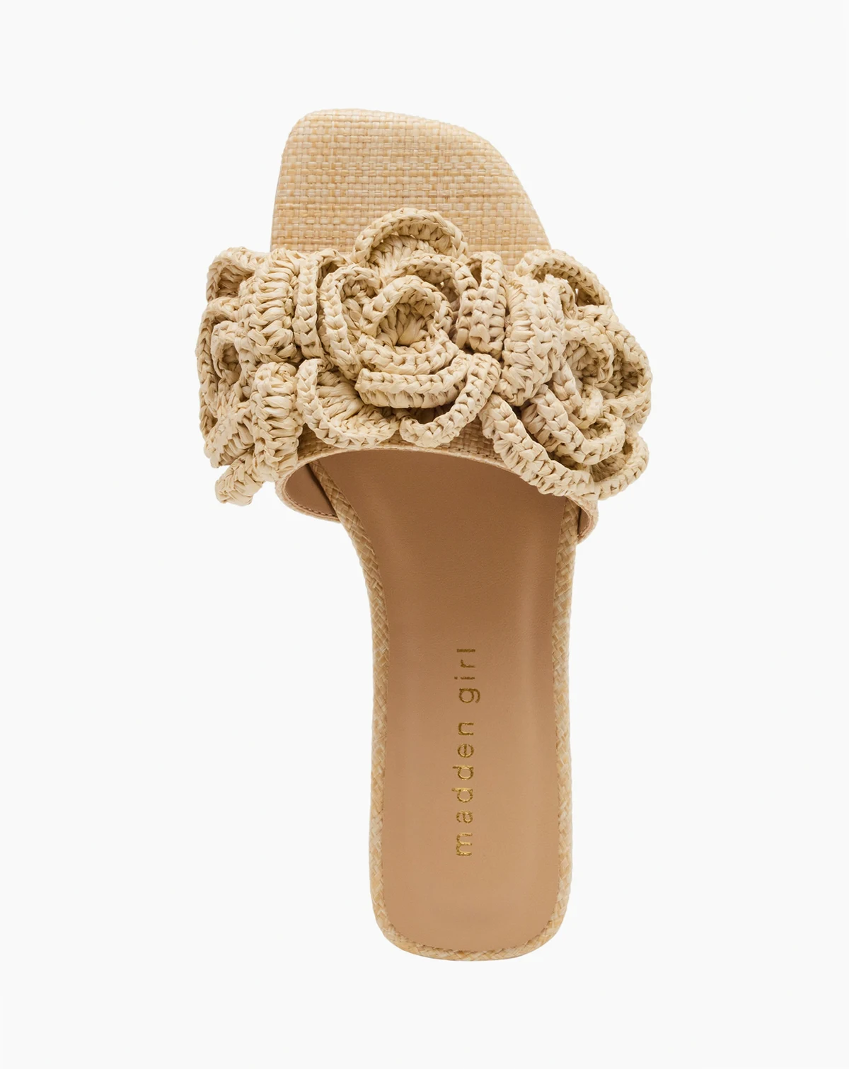 Embrace a breezy, casual style with these Madden Girl slide sandals, adorned with a triple floral raffia design. The square toes and flat profile provide all-day comfort and ease.