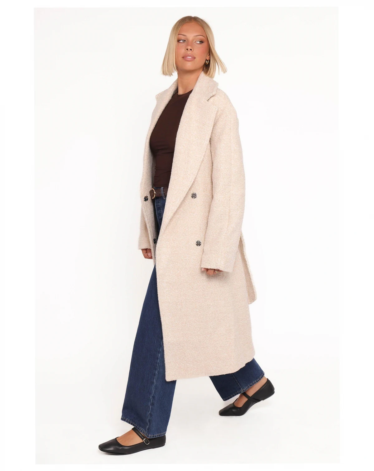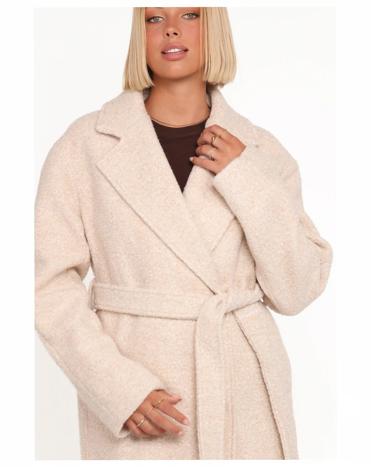 Wrap yourself in luxurious warmth with the Goodie Shearling Coat in rich chocolate brown. This stunning statement piece transforms any outfit with its plush shearling texture and sophisticated spread collar featuring elegant notch lapels.