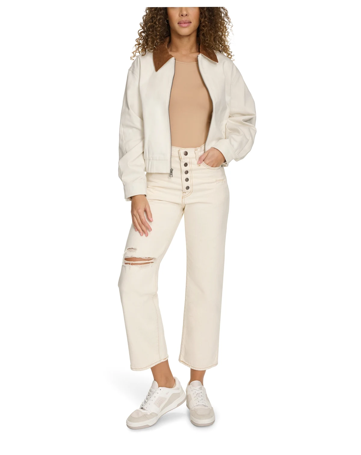 Embrace effortless style and comfort with our short-length cotton jacket, designed to keep you cozy and fashionable. This jacket offers a perfect blend of classic charm and contemporary flair. The jacket ensures a snug fit, while the two lower welt pockets add both functionality and style. An elastic hem provides a comfortable, flexible fit, and adjustable snaps at the cuffs allow for a customizable look. Ideal for casual outings or layering, this jacket brings a touch of sophistication to any wardrobe.