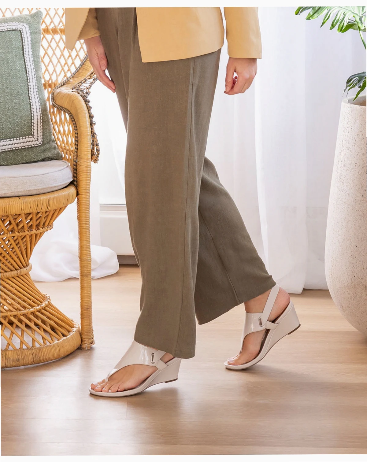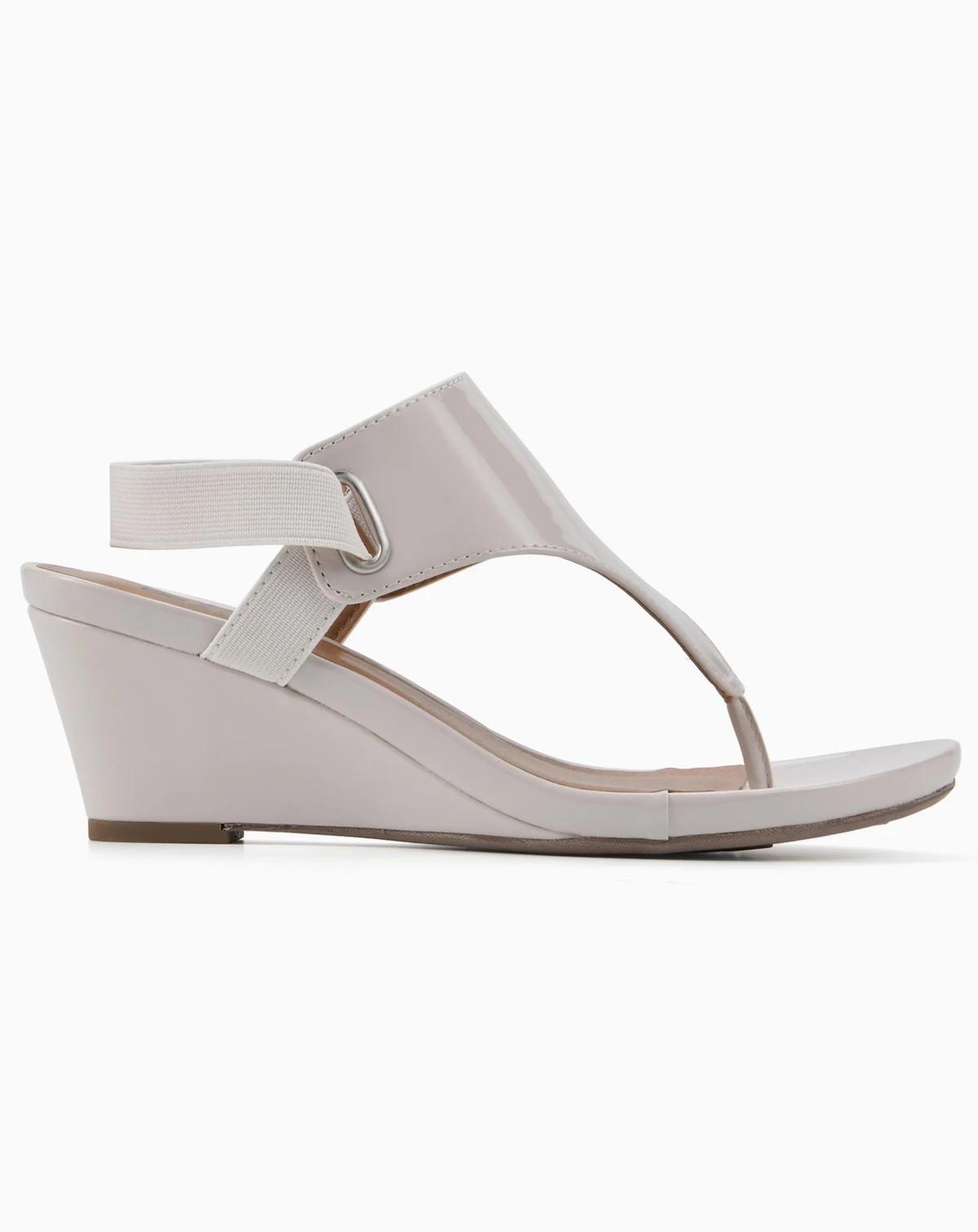 Feel good in the All Dres thong wedge sandal by White Mountain shoes. This sleek and sophisticated wrapped wedge with elastic strap is a gorgeous addition to any outfit.