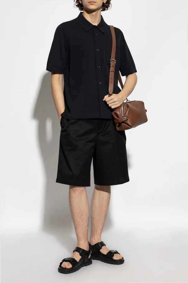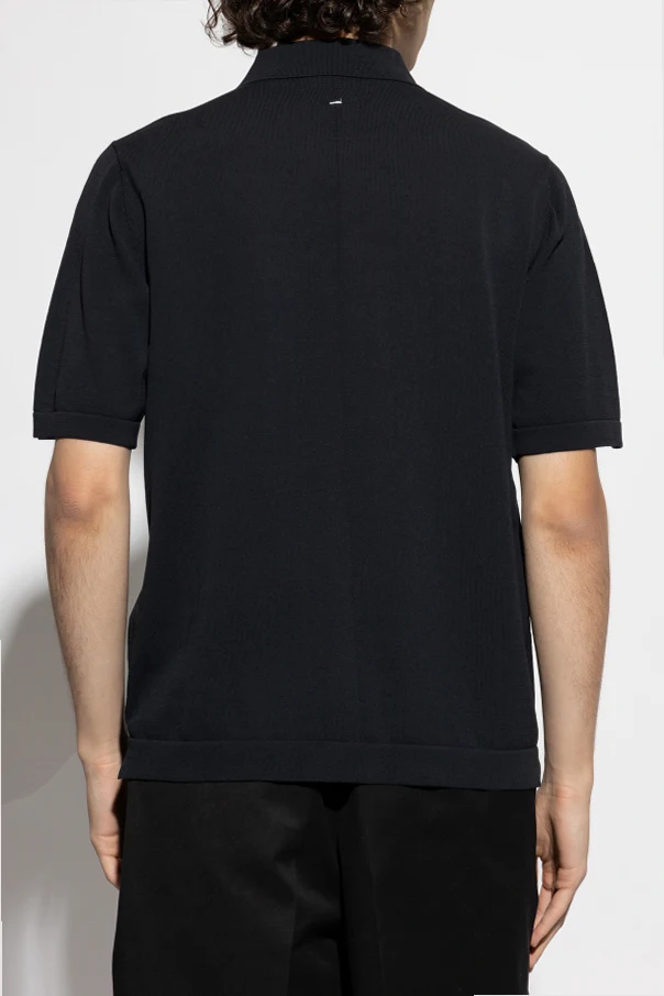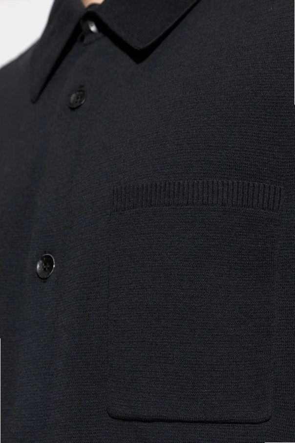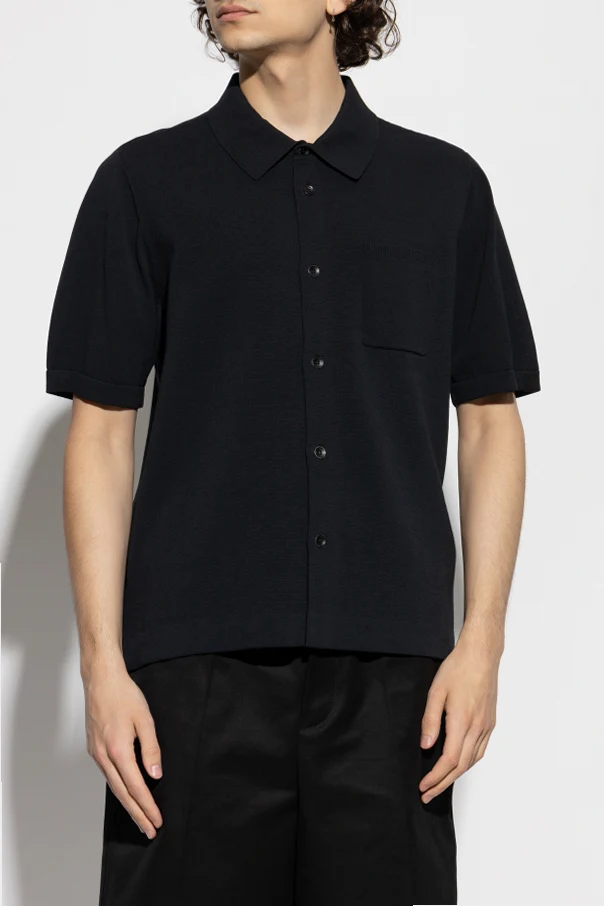 Its classic, regular silhouette is rendered in pure black for understated elegance, enhanced by a minimalist short-sleeve cut for modern versatility. The delicately ribbed pocket on the left chest adds a discreet yet intentional detail, while an impeccably tailored button placket with custom black buttons exudes exclusivity.