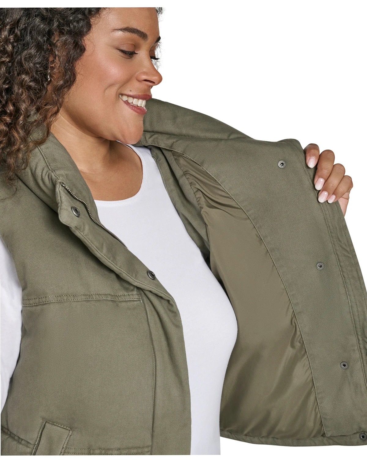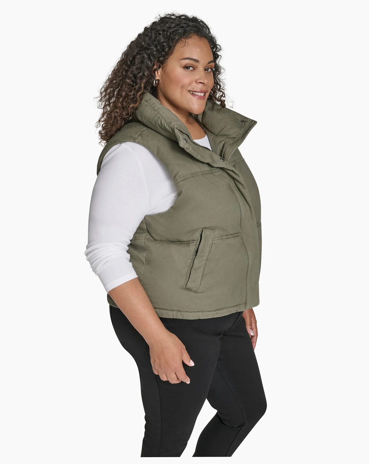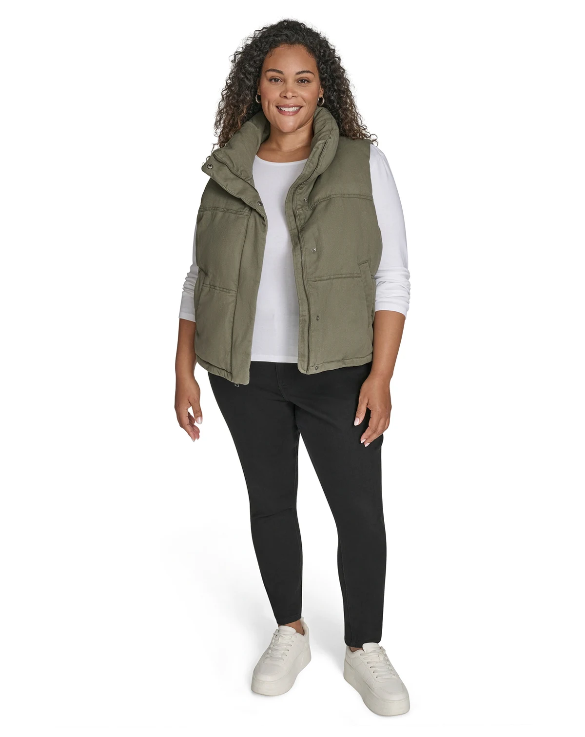 Stay warm and versatile with this Levi's puffer vest, featuring a stand collar and snap-zip closure for easy wear. It includes two lower snap pockets, perfect for keeping hands cozy or storing essentials.