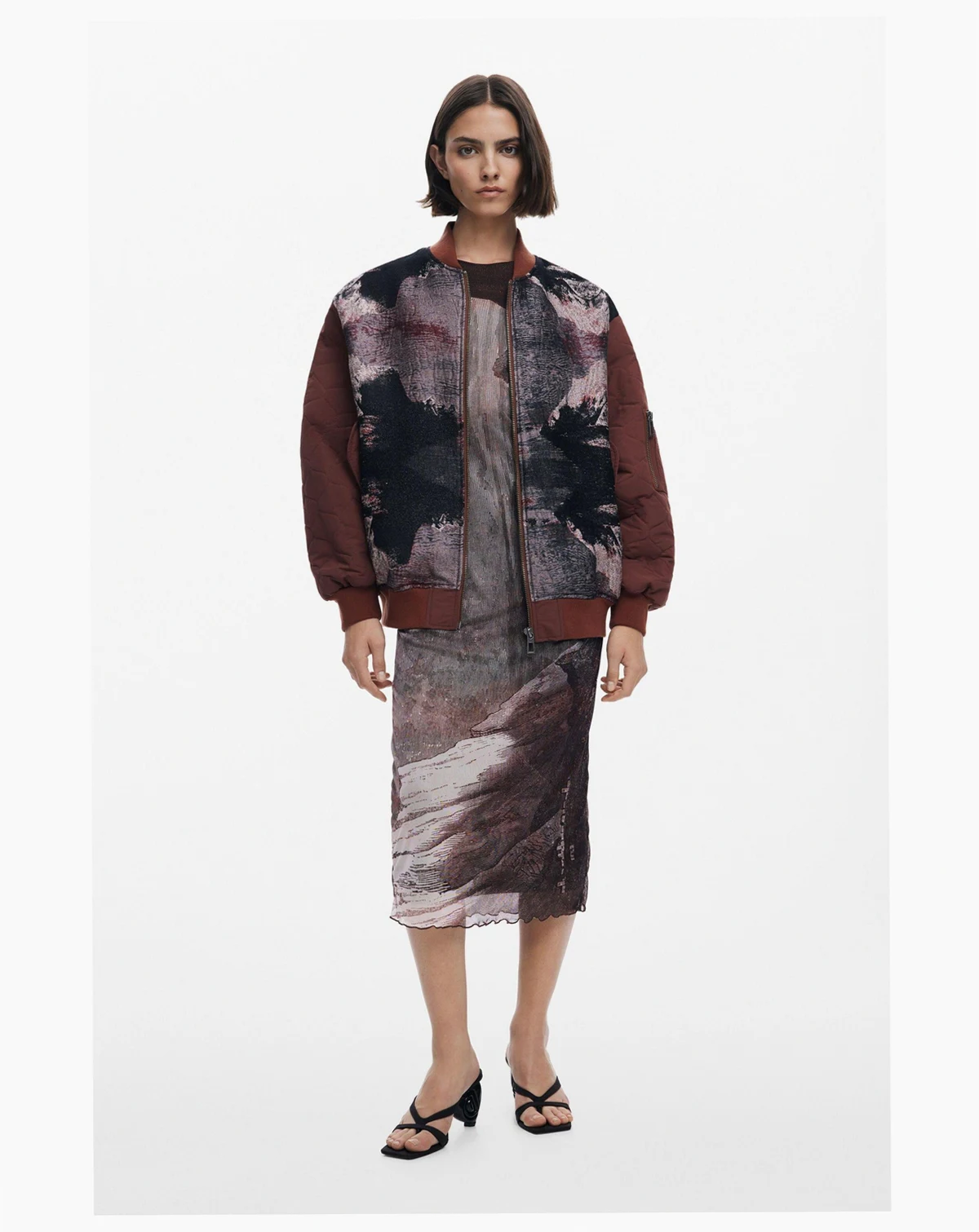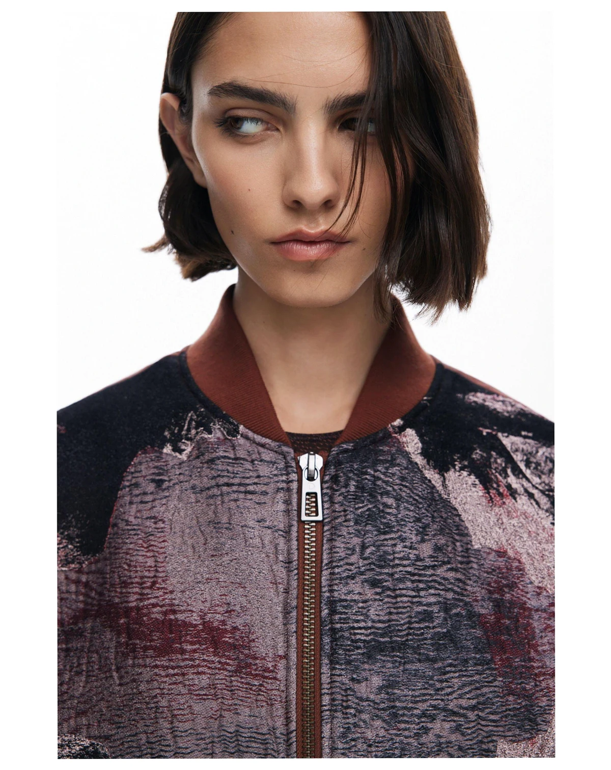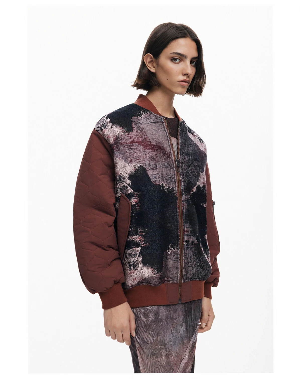 Short bomber-style jacket with a combination of quilted and mottled fabrics, designed by Monsieur Christian Lacroix.