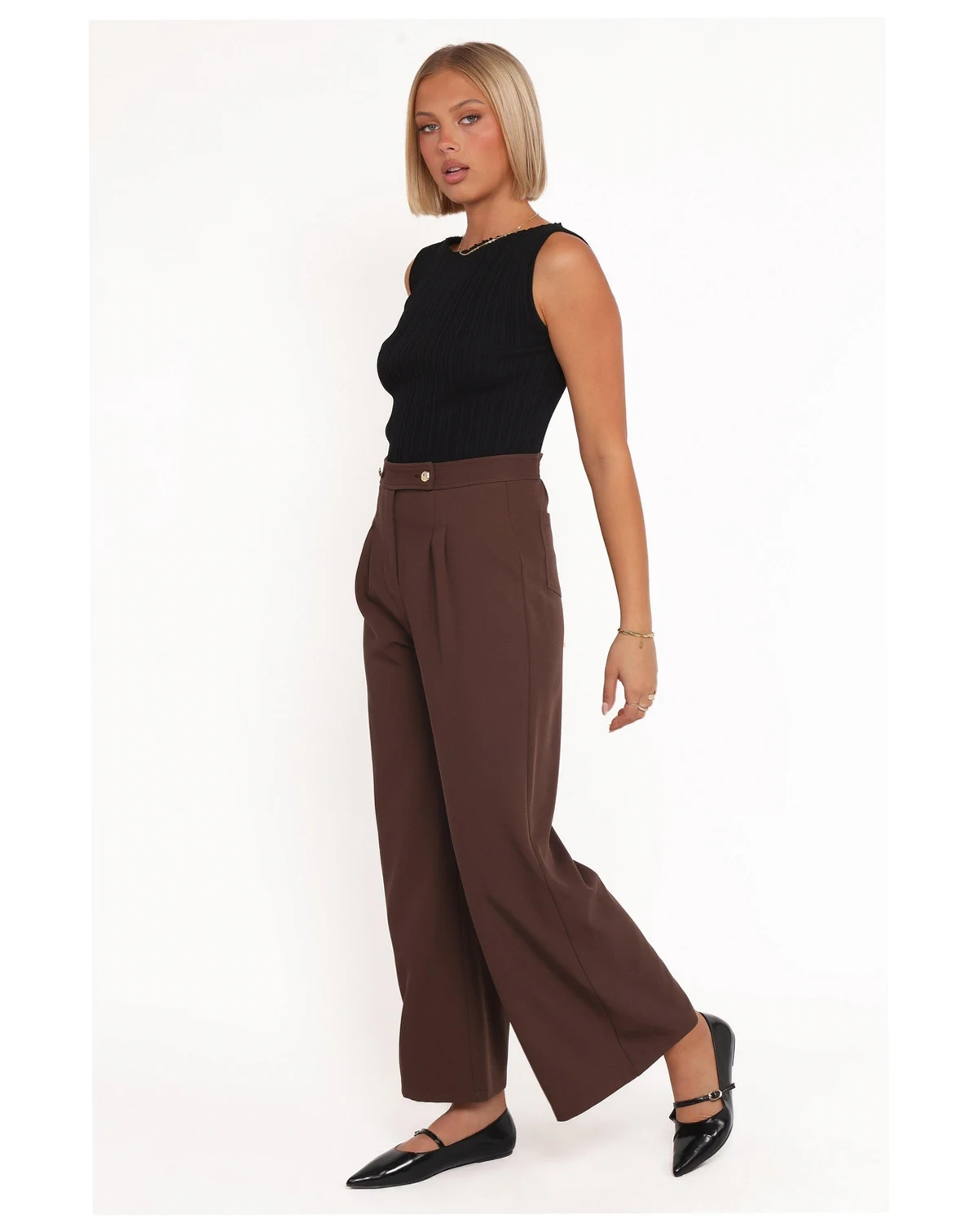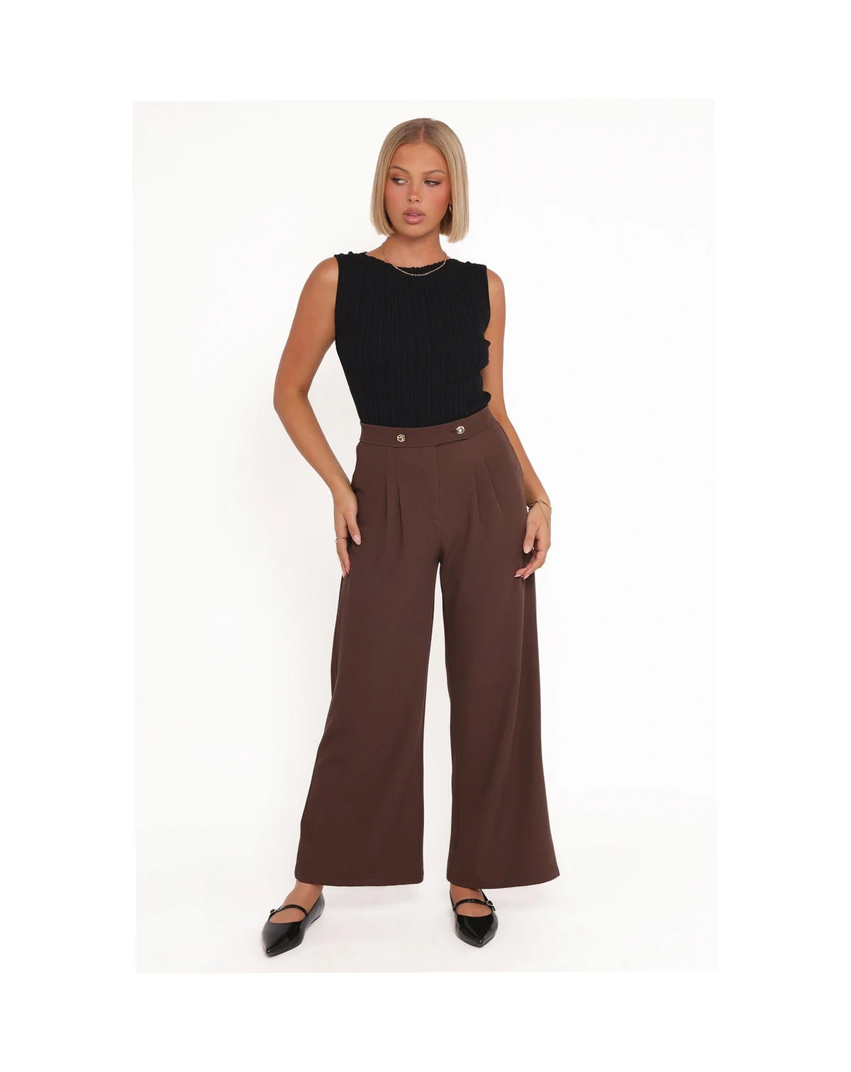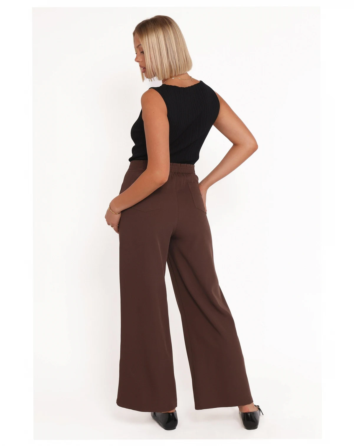 Elevate your wardrobe with the chic and versatile Corfu Pants - Brown . Featuring a high-rise fit and a soft elasticized waistband in the back, these wide-leg pants are designed to combine effortless style and all-day comfort.