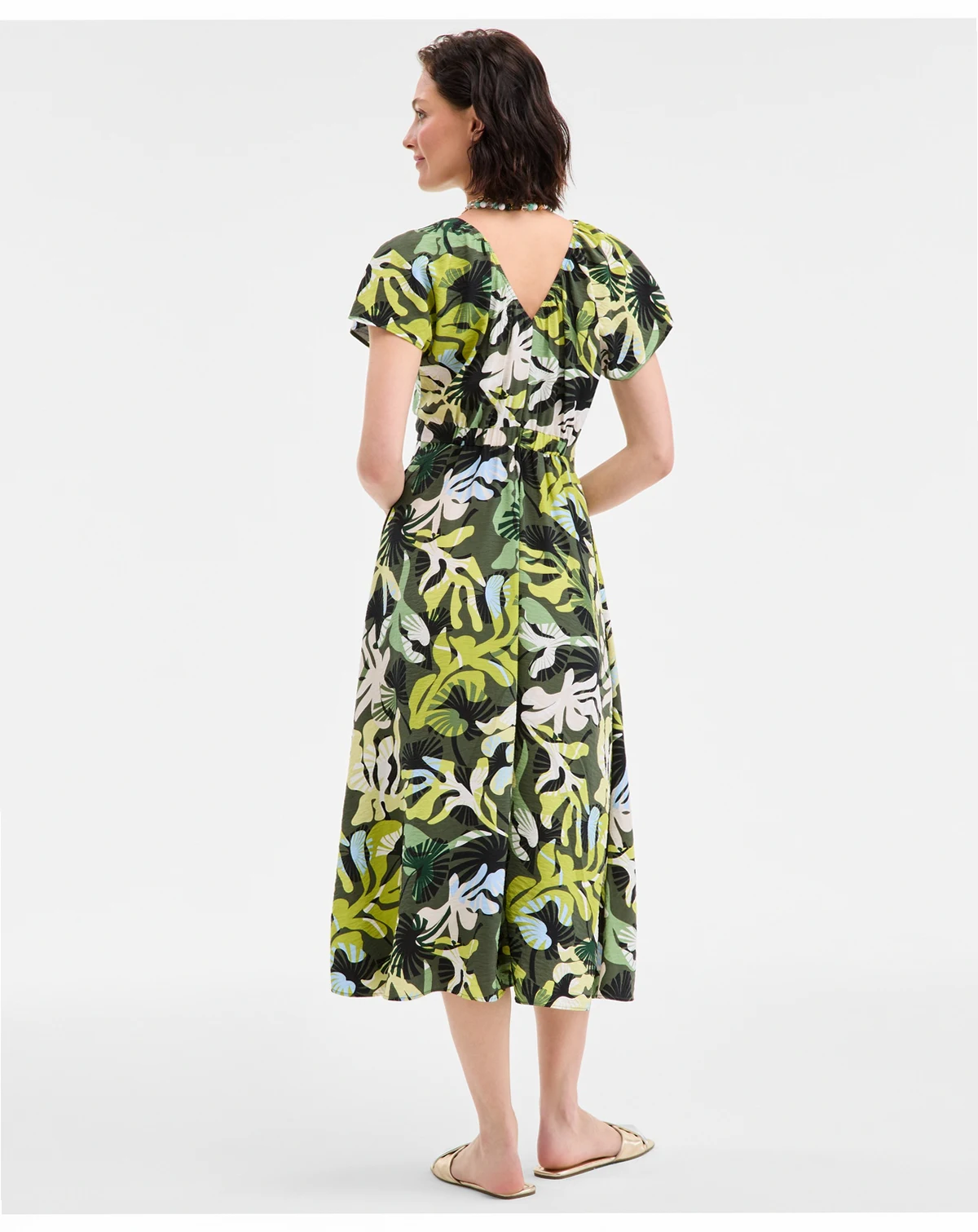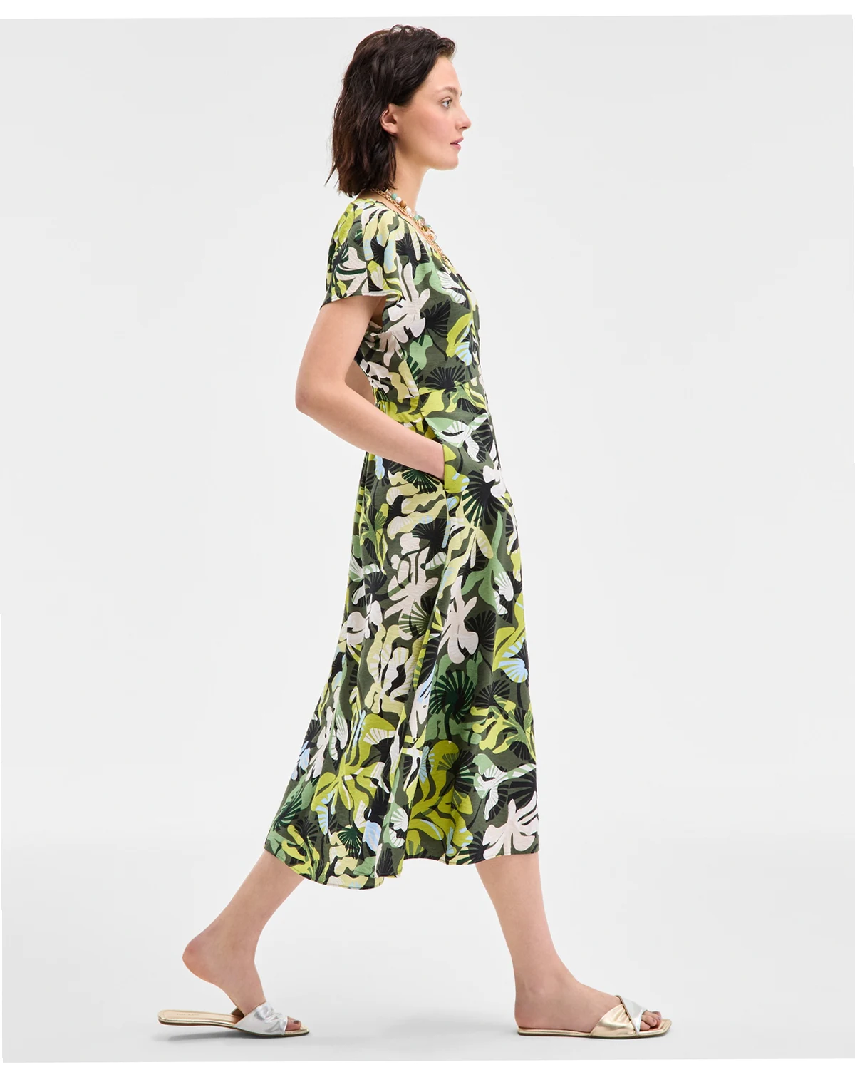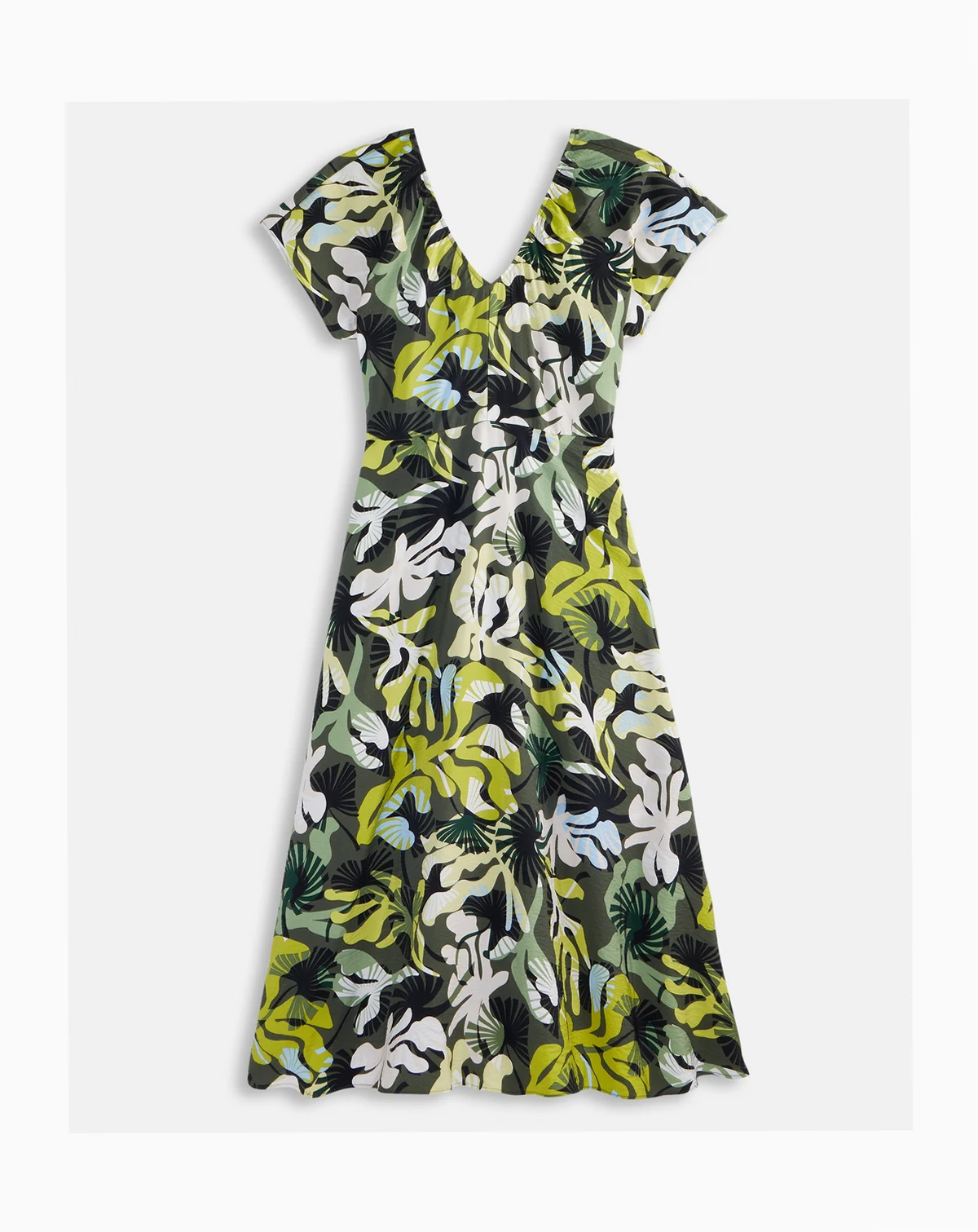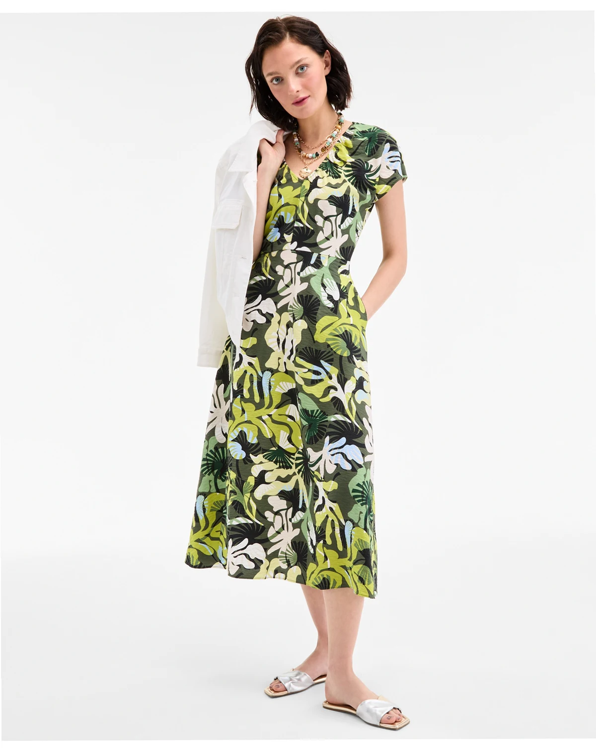 Printed, textured satin upgrades our feminine midi dress, designed with a V-neck in front and back and hidden pockets for convenience. ABOUT THE BRAND: Our brand was designed for, and with women like you. Made for your body, your style, and your truth. As your wardrobe's best friend, these mix-and-match pieces work with everything in your closet.