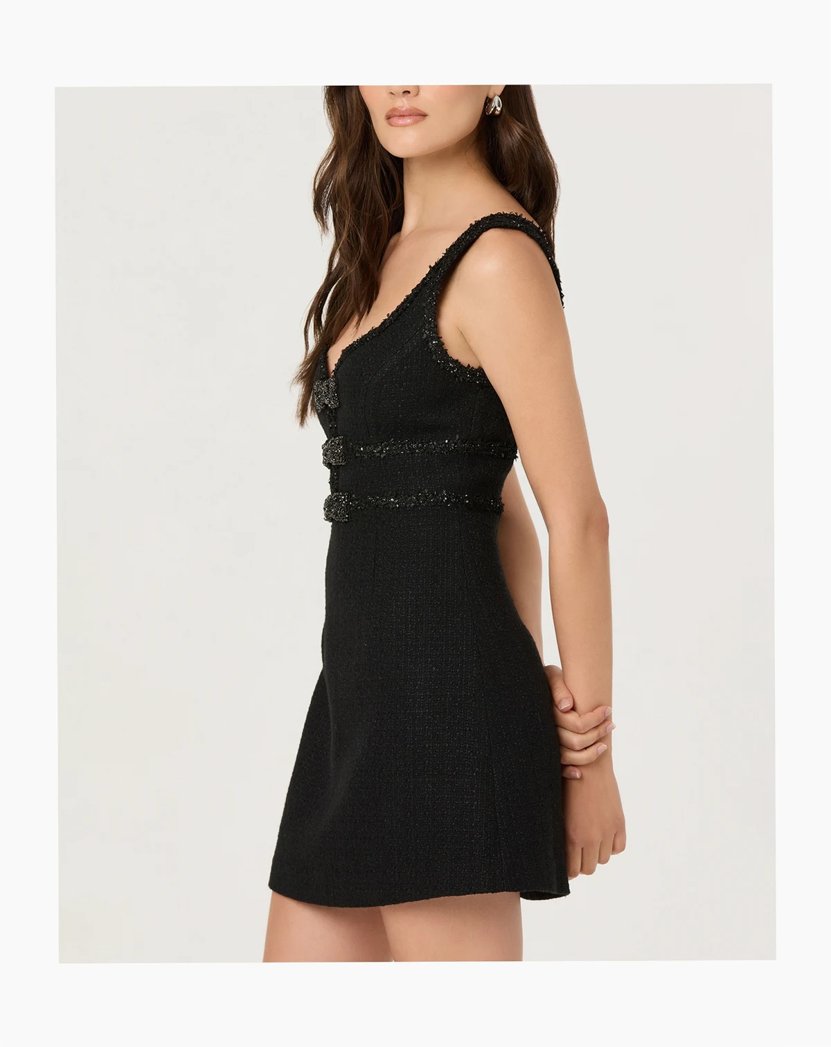 Featuring a sleek scoop neckline and sleeveless design, this ASTR the Label dress offers a graceful A-line silhouette. Tweed tape accents at the neck and armholes provide a refined, polished finish to the overall look.